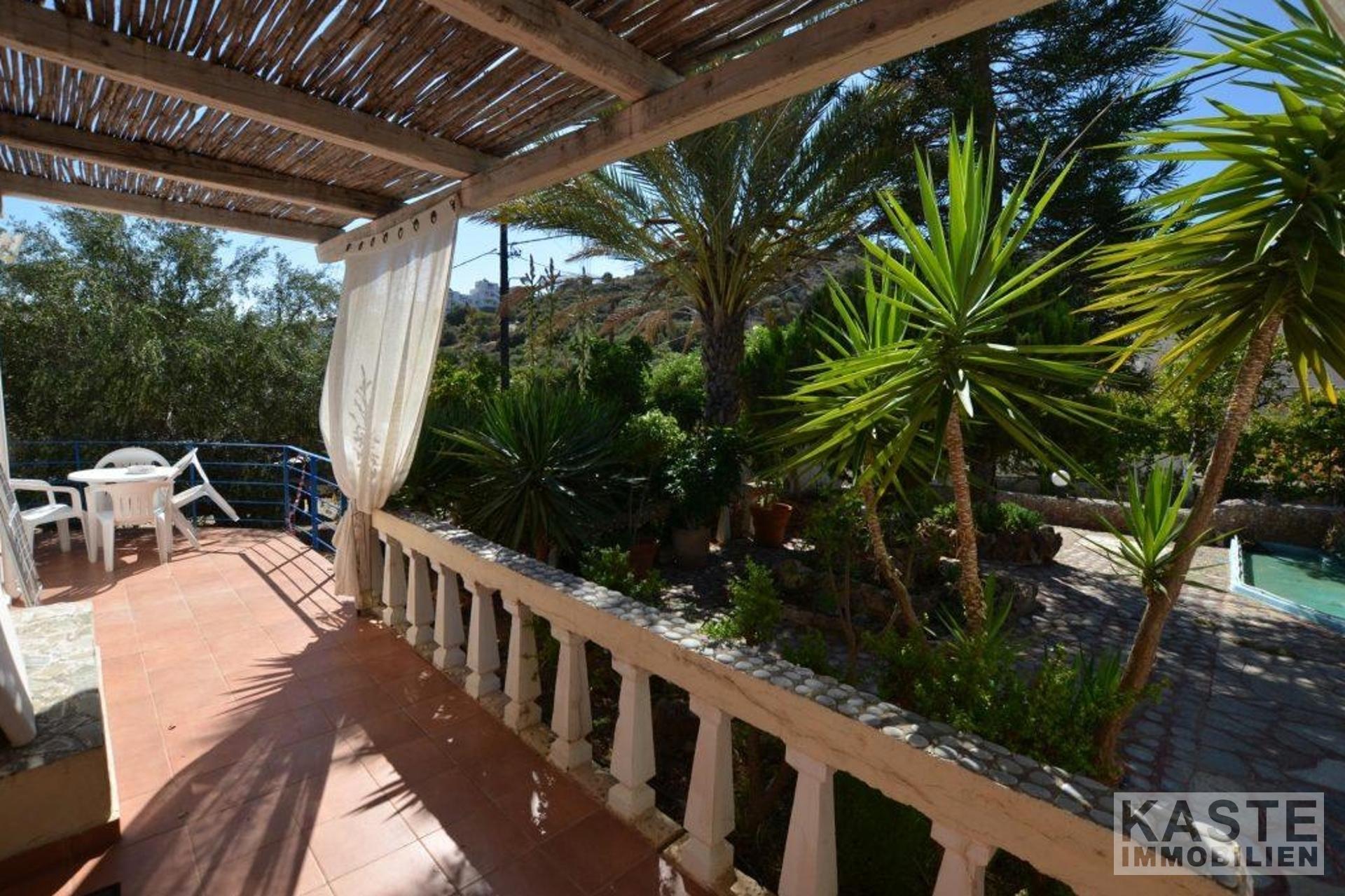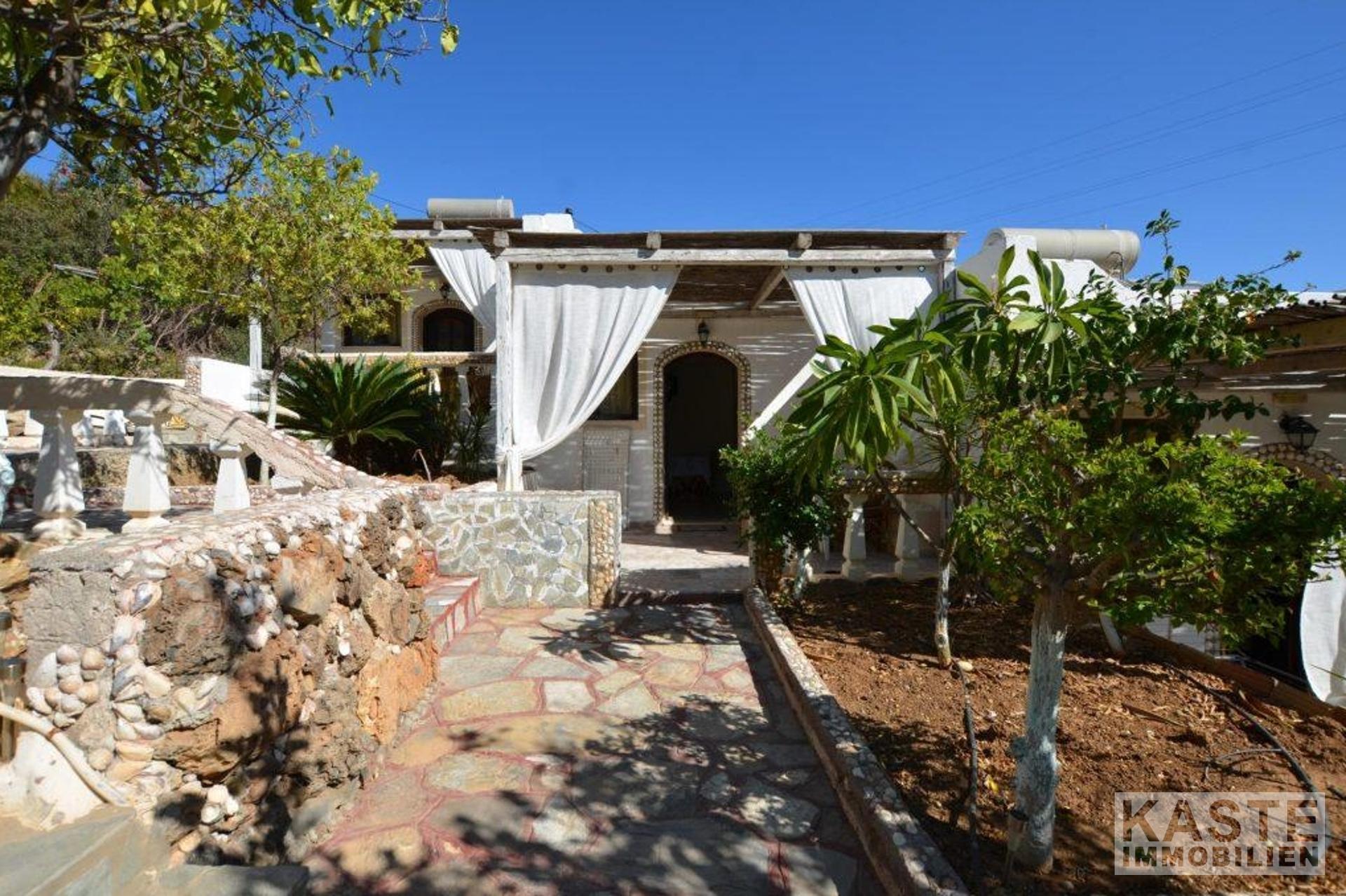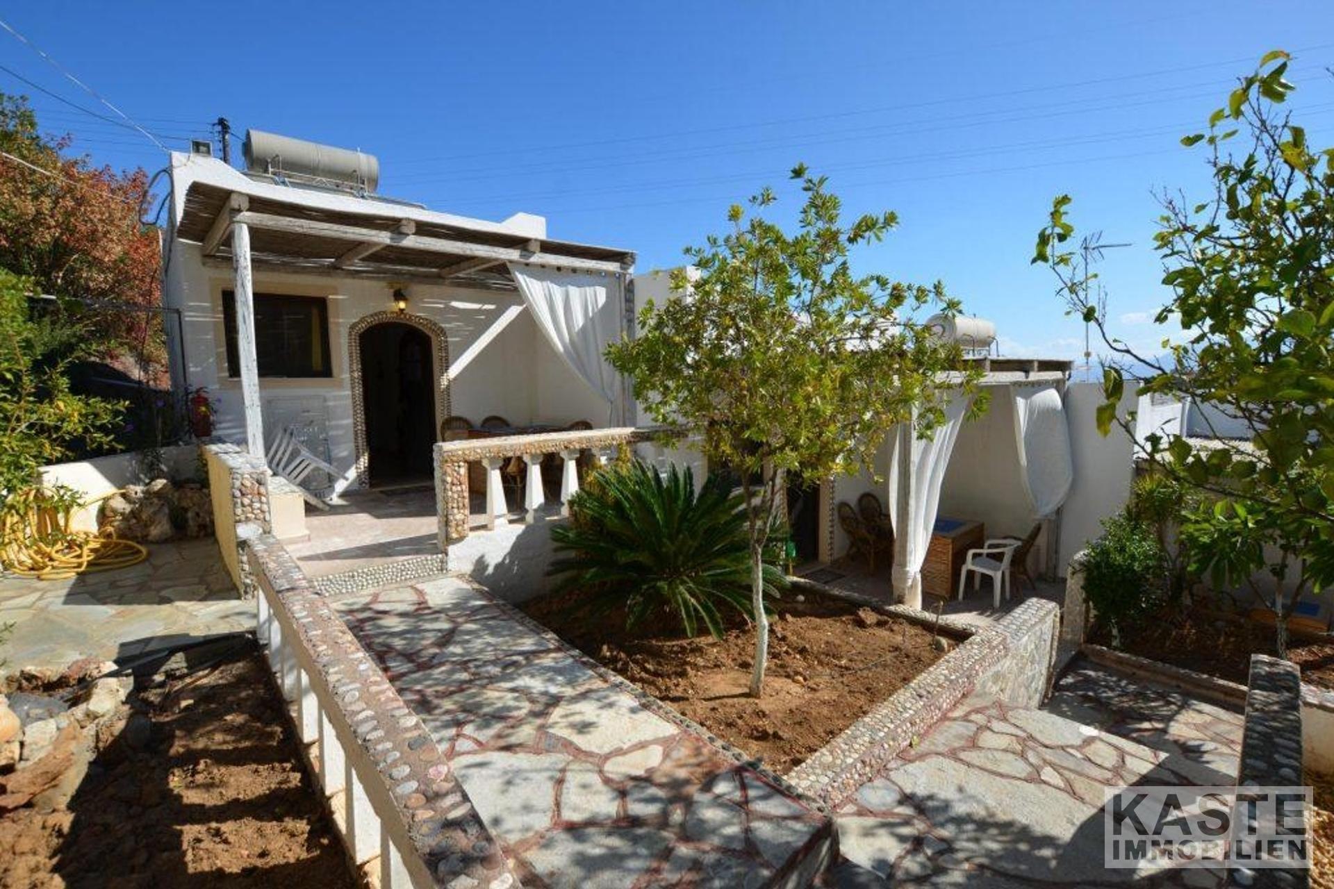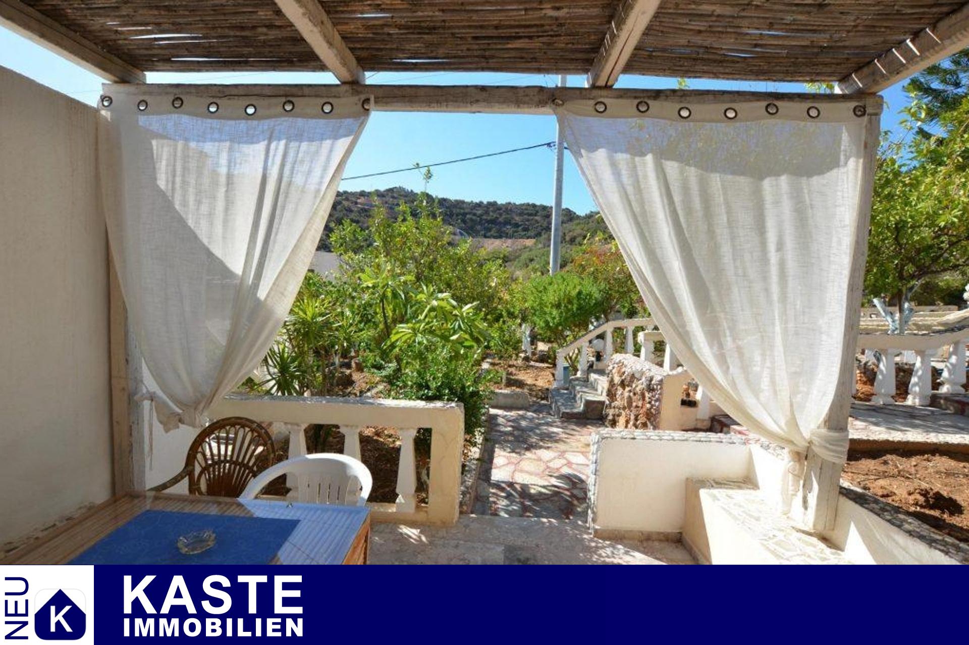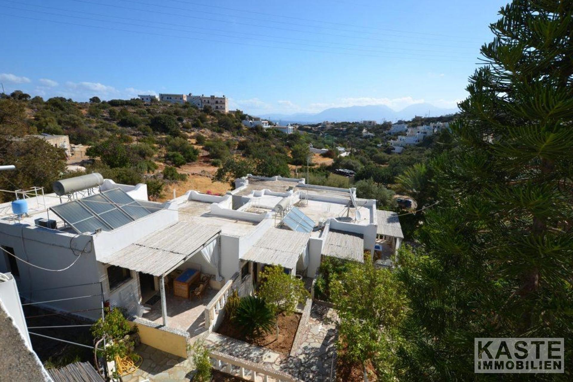 Zum Verkauf steht ein Ferienhauskomplex, bestehend aus einer Villa mit 3 Schlafzimmern und 4 separaten Bungalows, umgeben von charmanten Gärten auf einem großzügigen, 1300 Quadratmeter großen Privatgrundstück in der begehrten Gegend von Ammoudara, Agios Nikolaos.