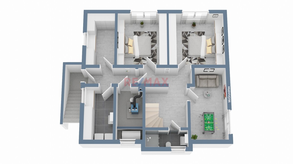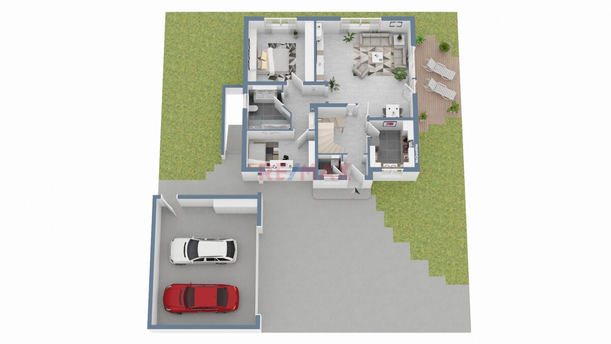 Im Erdgeschoss befinden sich 2 Schlafzimmer, ein Wohnzimmer, eine Küche, ein Tageslichtbad mit Dusche und Wanne, ein Gäste-WC sowie eine Terrasse.