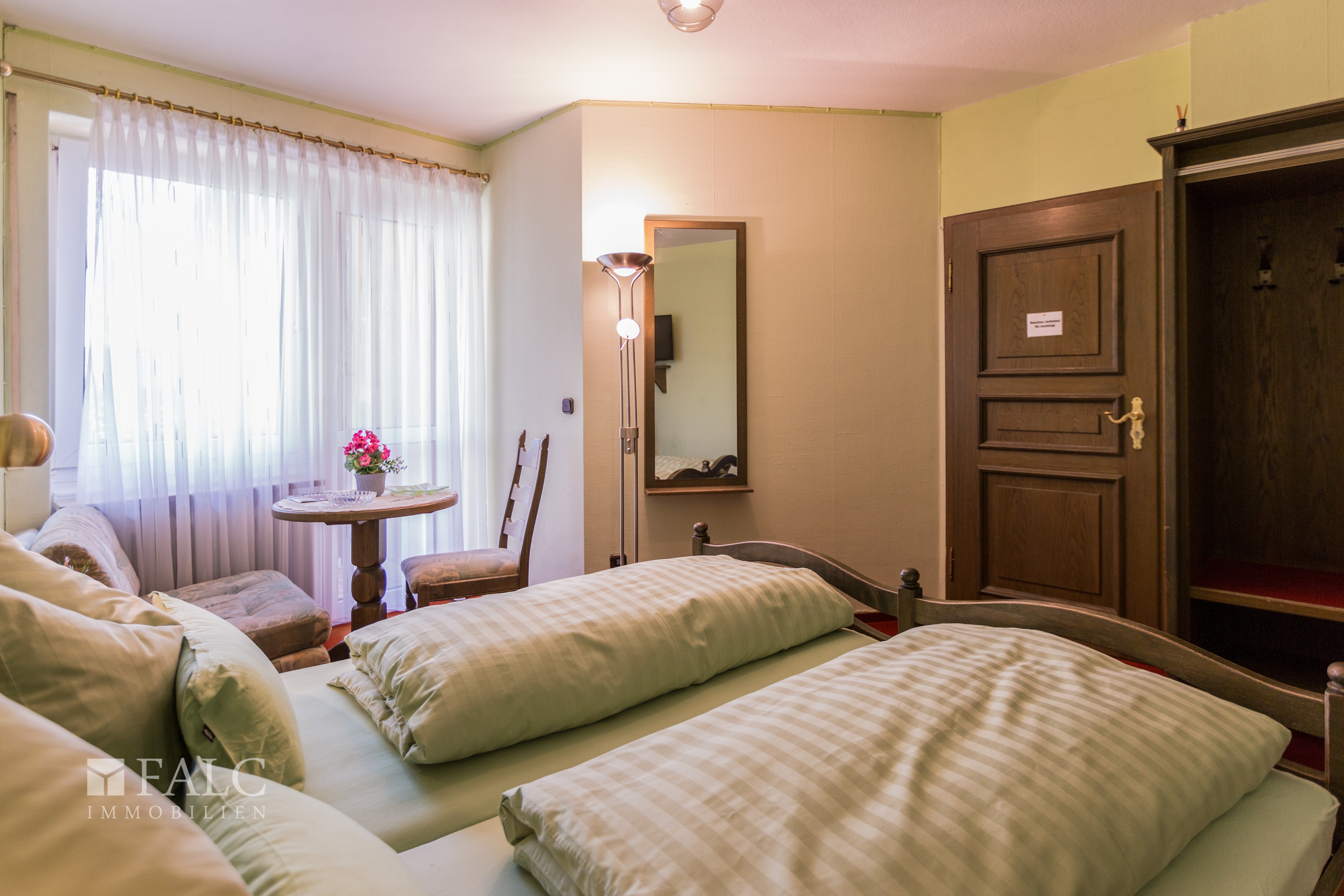- Baujahr: 1981 massiv gebaut, mit Keller - Energieeffizienzklasse: D (neuer Energieausweis in Arbeit) - Immobilientyp: Hotel Garni - Nutzungsart: Gewerbe, Gastronomie - 10 Hotelzimmer (4 Einzel-/ 6 Doppelzimmer) - 1 Gewerbeeinheit von ca. 45 m² mit Schaufenster - 1 ca. 90 m² Wohnung im DG + ausgebauter Spitzboden