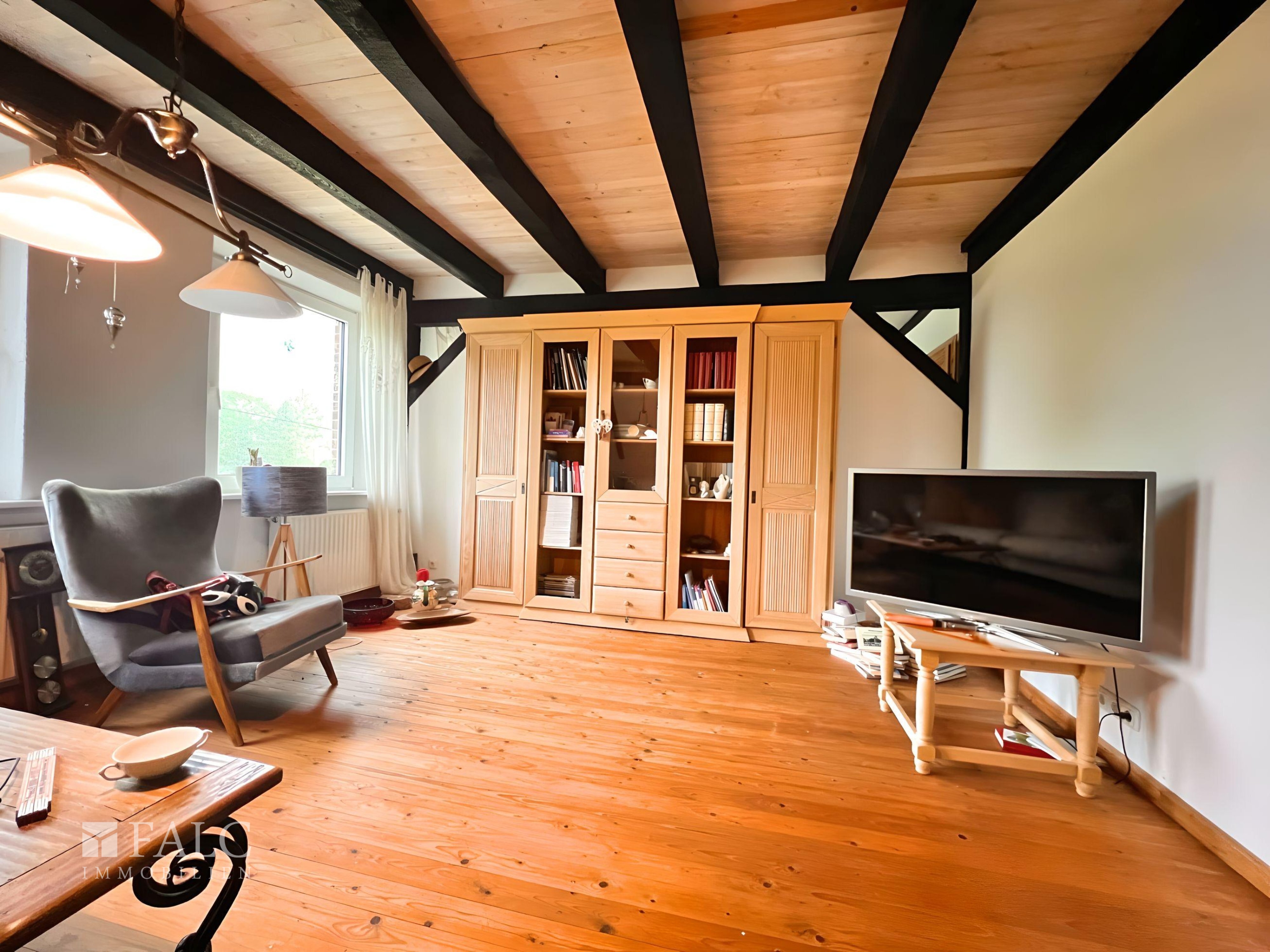 - Bauernhaus von 1938 mit historischem Charme und viel Gestaltungsspielraum - Ca. 210 m² Wohnfläche auf großem Grundstück (5.798 m²) in ruhiger Lage - 7 Zimmer auf zwei Etagen – flexibel nutzbar (Wohnen, Arbeiten, Familie) - Gemütliches Wohnzimmer mit Kamin, Essbereich und Homeoffice möglich - 2 moderne Badezimmer mit Dusche und Badewanne - Große Scheune vielseitig nutzbar (Werkstatt, Atelier, Hobbyraum) - Überdachtes Holzlager und Garage mit zusätzlichem Stauraum - Weitläufiges Grundstück – ideal für Garten, Selbstversorgung oder Erholung - Perfekt für Naturliebhaber, Ruhe und individuelles Wohnen im Grünen
