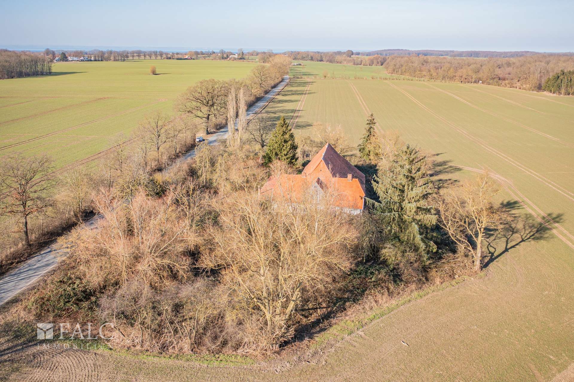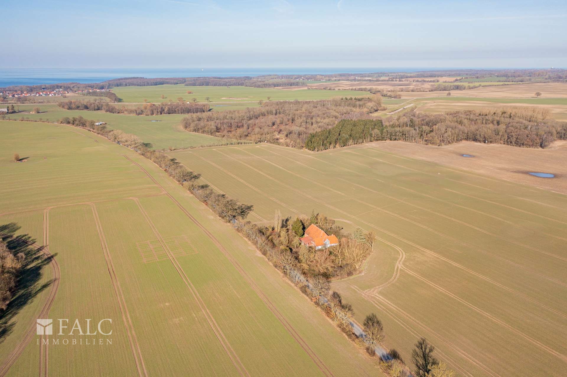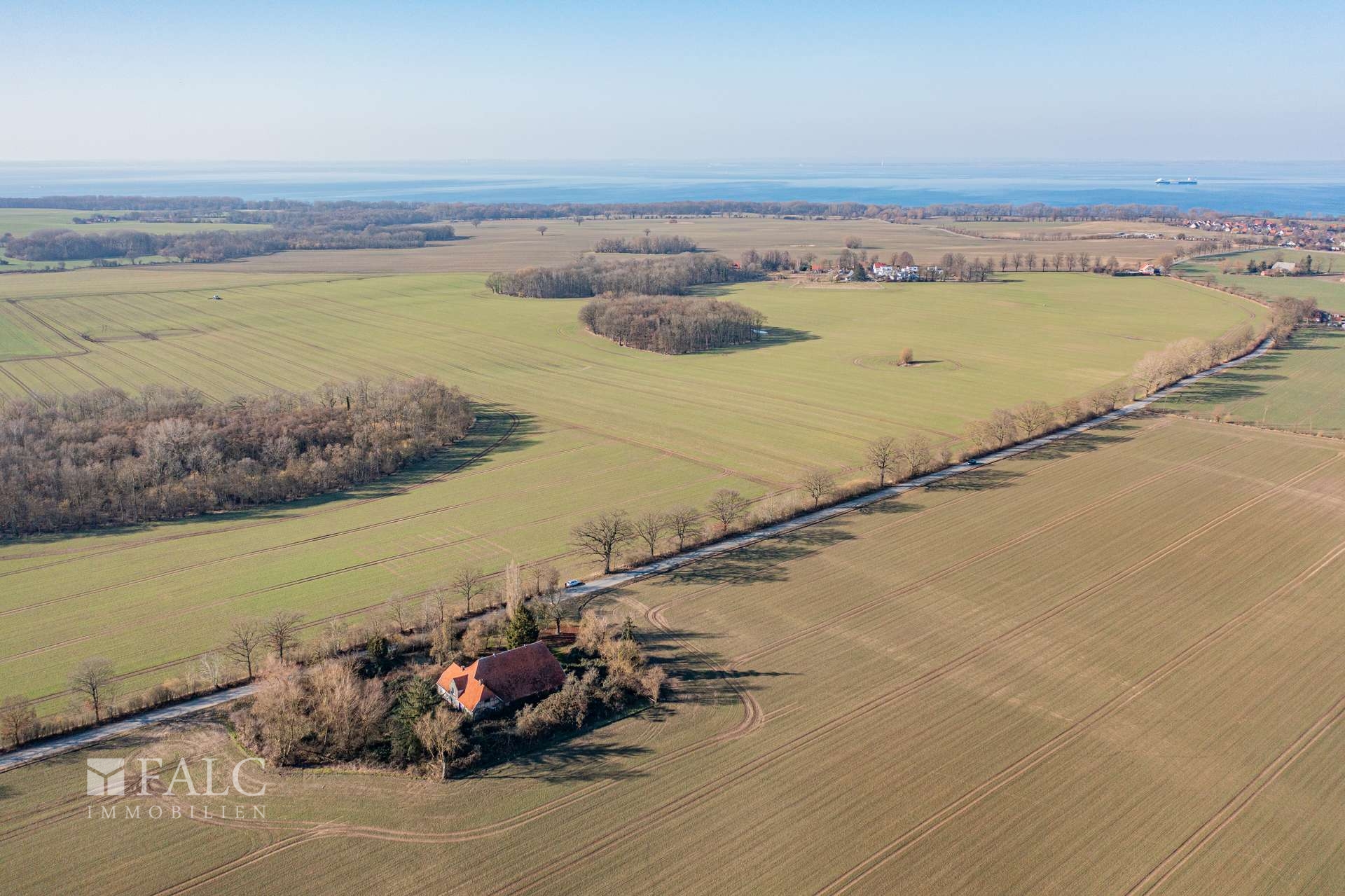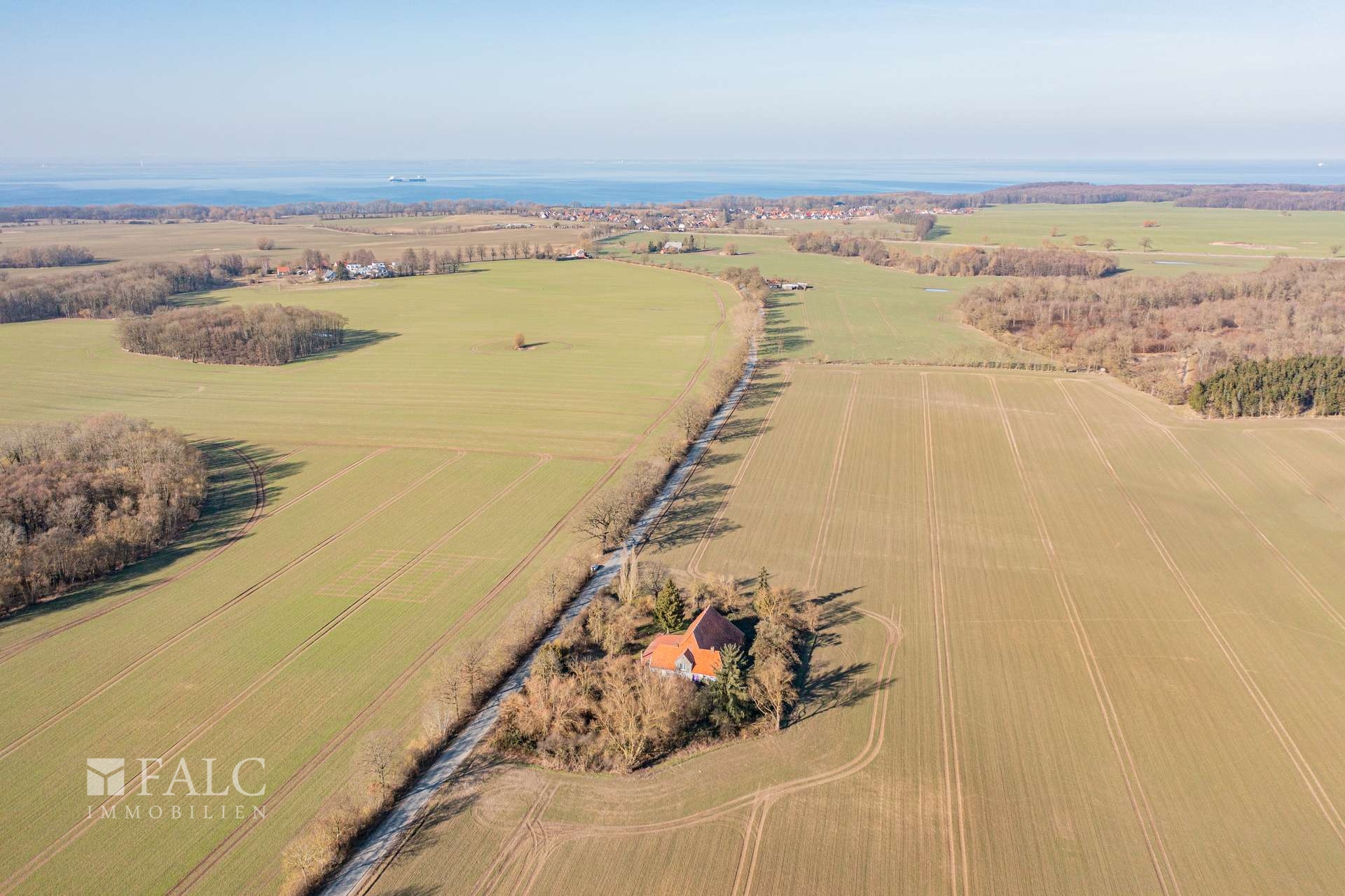 Dort, wo der Horizont weit wird und die Ostsee in greifbarer Nähe liegt, befindet sich diese exklusive Immobilie. Inmitten der unberührten Natur des Klützer Winkels, unweit der Gemeinde Kalkhorst, erwartet Sie eine Lage, die Seltenheitswert hat: Absolute Alleinlage, umgeben von den sanften Hügeln der mecklenburgischen Küstenlandschaft. Hier leben Sie in vollkommener Privatsphäre. Die Immobilie ist eingebettet in ein Landschaftsschutzgebiet, das durch weite Felder, alte Alleen und die typische Ruhe der Küste geprägt ist. Wer Abgeschiedenheit sucht, ohne auf die Vorzüge einer erstklassigen Infrastruktur verzichten zu wollen, wird hier sein Paradies finden. Maritimes Flair und dörfliche Idylle Die Lage besticht durch die perfekte Balance zwischen Rückzug und Erreichbarkeit: * Ostseenähe: In nur wenigen Minuten mit dem Fahrrad erreichen Sie die naturbelassenen Strände (z.B. den Strandabschnitt Brook oder Steinbeck). Das lebendige Ostseebad Boltenhagen mit seiner Seebrücke und Marina ist nur einen Katzensprung entfernt. * Kultur & Kulinarik: Das nahegelegene Schloss Bothmer in Klütz sowie die charmanten Hofläden und Cafés der Umgebung bieten Lebensqualität auf höchstem Niveau. * Anbindung: Trotz der idyllischen Isolation sind die Hansestädte Wismar und Lübeck über die A20 zügig erreichbar – ideal für Pendler oder als Zweitwohnsitz.
