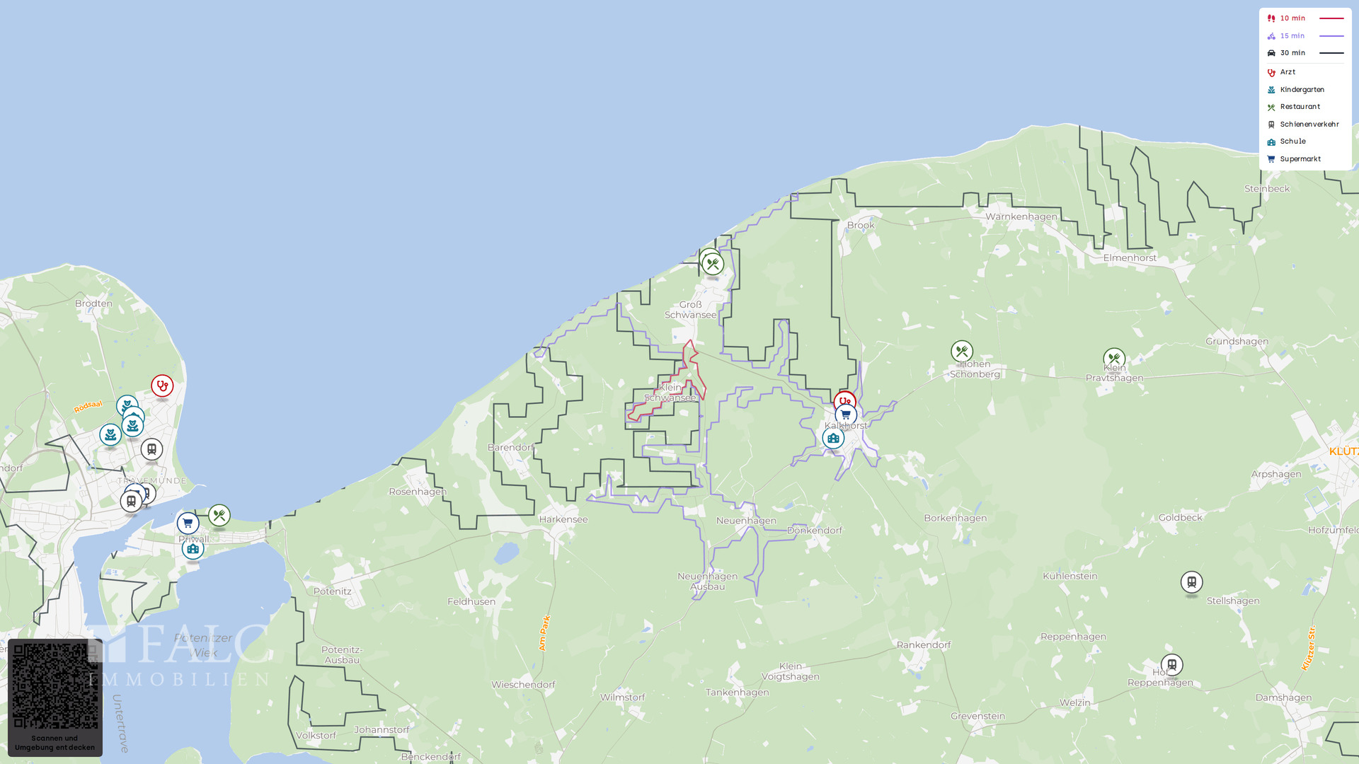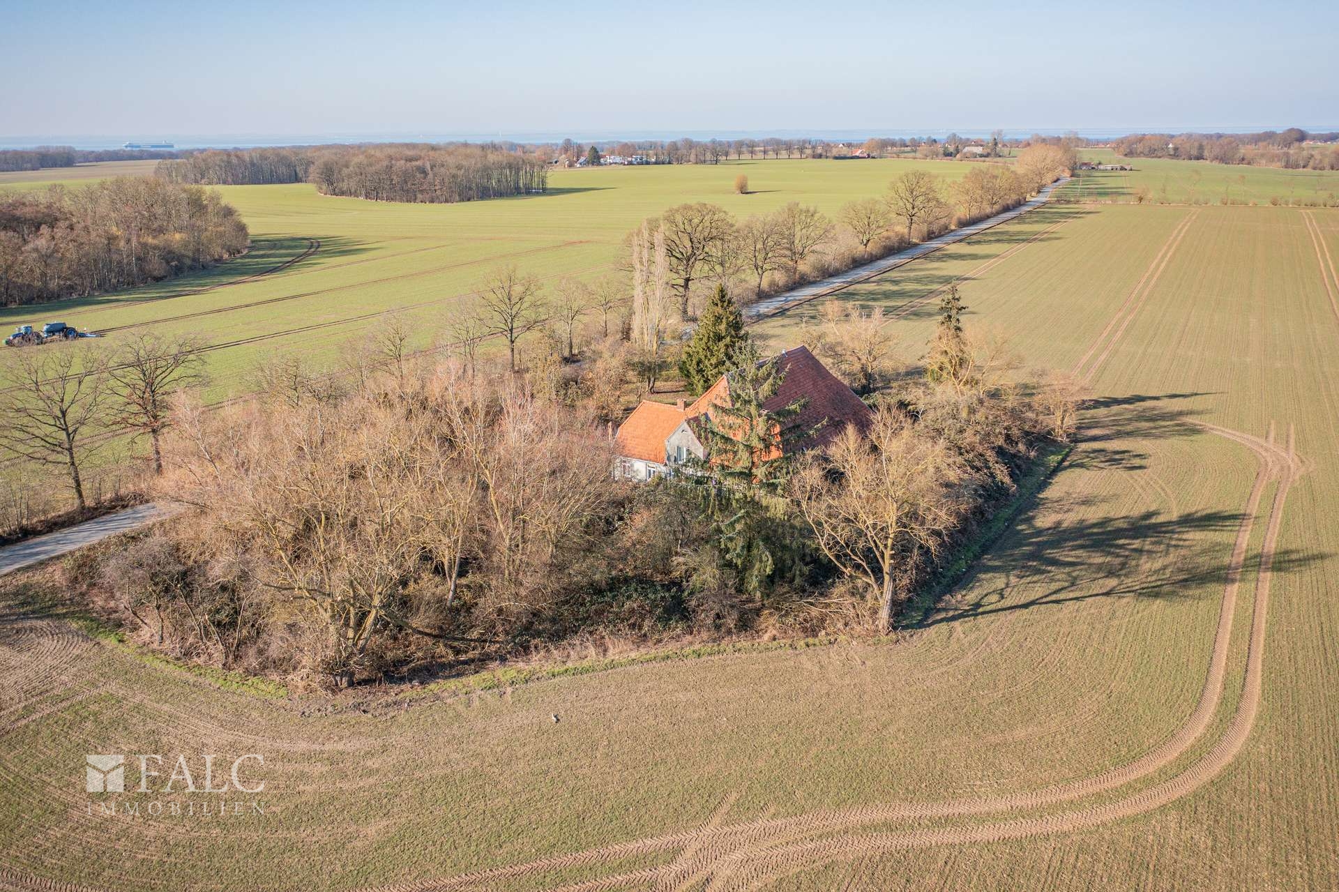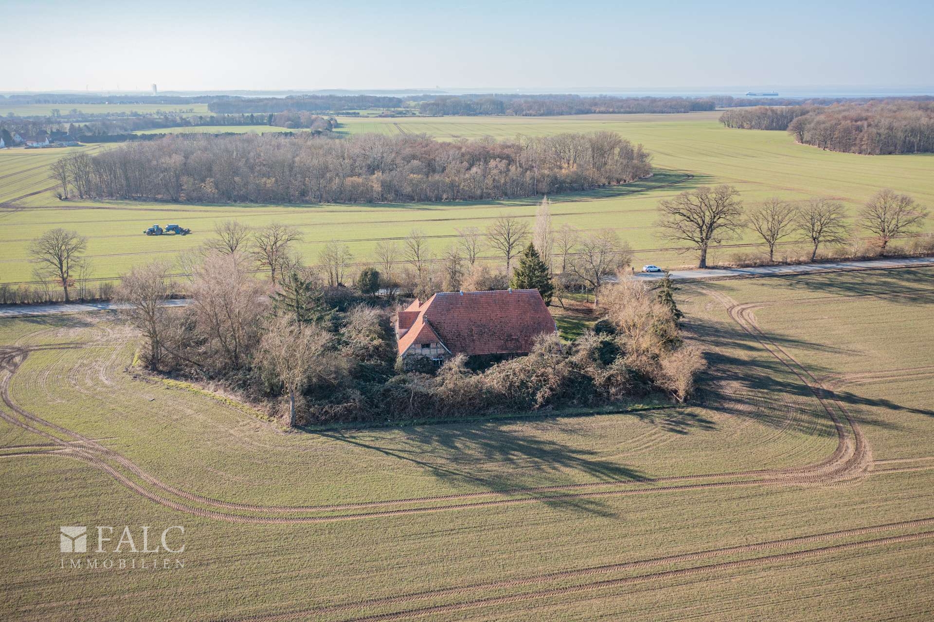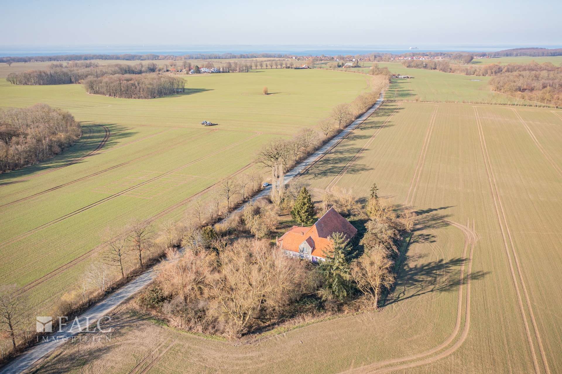 Dort, wo der Horizont weit wird und die Ostsee in greifbarer Nähe liegt, befindet sich diese exklusive Immobilie. Inmitten der unberührten Natur des Klützer Winkels, unweit der Gemeinde Kalkhorst, erwartet Sie eine Lage, die Seltenheitswert hat: Absolute Alleinlage, umgeben von den sanften Hügeln der mecklenburgischen Küstenlandschaft. Hier leben Sie in vollkommener Privatsphäre. Die Immobilie ist eingebettet in ein Landschaftsschutzgebiet, das durch weite Felder, alte Alleen und die typische Ruhe der Küste geprägt ist. Wer Abgeschiedenheit sucht, ohne auf die Vorzüge einer erstklassigen Infrastruktur verzichten zu wollen, wird hier sein Paradies finden. Maritimes Flair und dörfliche Idylle Die Lage besticht durch die perfekte Balance zwischen Rückzug und Erreichbarkeit: * Ostseenähe: In nur wenigen Minuten mit dem Fahrrad erreichen Sie die naturbelassenen Strände (z.B. den Strandabschnitt Brook oder Steinbeck). Das lebendige Ostseebad Boltenhagen mit seiner Seebrücke und Marina ist nur einen Katzensprung entfernt. * Kultur & Kulinarik: Das nahegelegene Schloss Bothmer in Klütz sowie die charmanten Hofläden und Cafés der Umgebung bieten Lebensqualität auf höchstem Niveau. * Anbindung: Trotz der idyllischen Isolation sind die Hansestädte Wismar und Lübeck über die A20 zügig erreichbar – ideal für Pendler oder als Zweitwohnsitz.