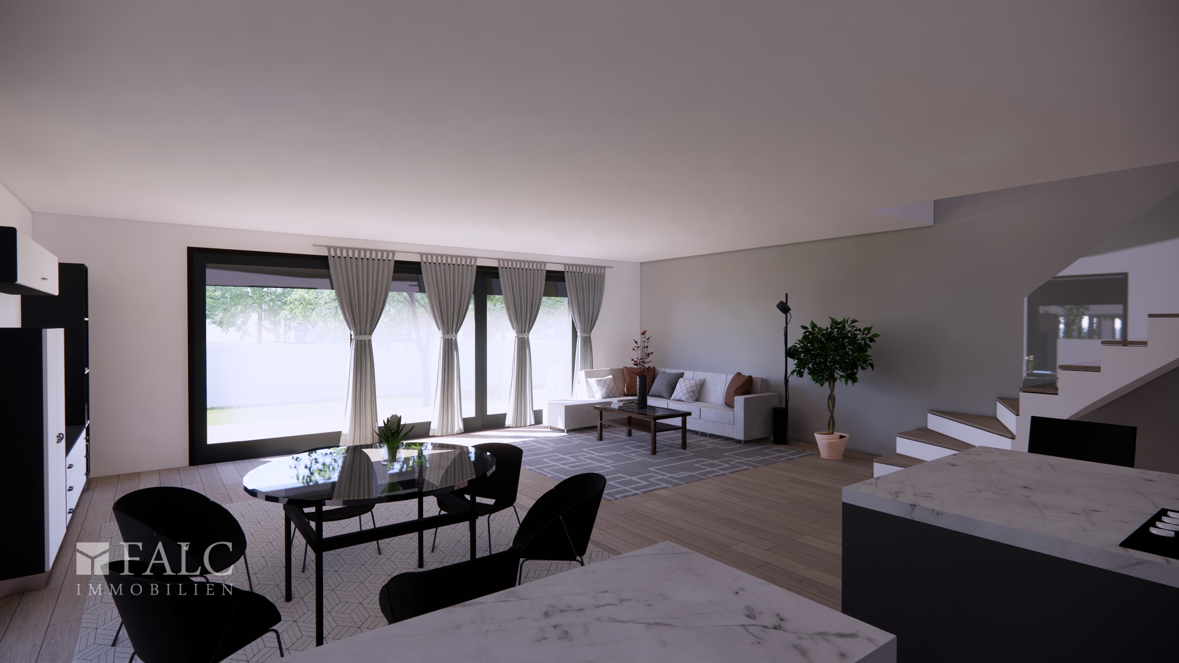 Im Erdgeschoss erwartet Sie ein offener Wohn- und Essbereich mit Zugang zur Terrasse und zum Garten – der ideale Treffpunkt für gemeinsame Familienzeit. Die moderne Luft-Wasser-Wärmepumpe, Fußbodenheizung in allen Wohnräumen und eine Photovoltaikanlage pro Haus gewährleisten umweltfreundliches und zukunftssicheres Wohnen.