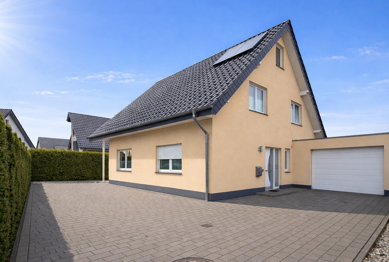 In einem gewachsenen, reinen Wohngebiet mit überwiegend Einfamilienhäusern präsentiert sich dieses gepflegte Einfamilienhaus aus dem Baujahr 2015 auf einem großzügigen 619 m² Grundstück.