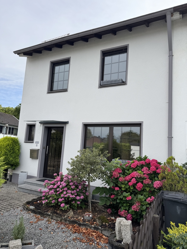 - Doppelverglaste, dunkel eloxierte Alu-Fenster mit innenliegenden Sprossen, Baujahr 1985 - Fassade in 2019 neu verputzt und gestrichen