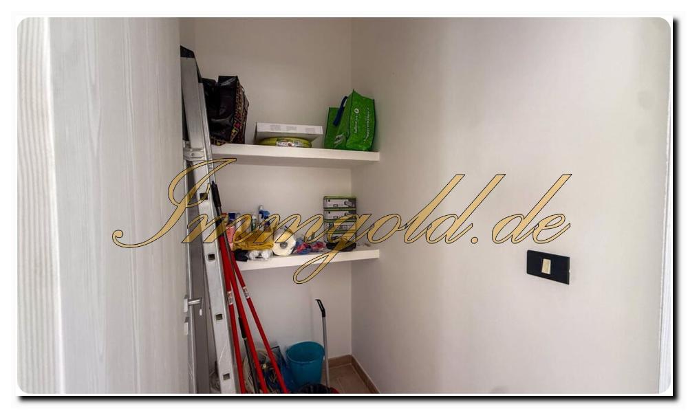 Das Badezimmer ist L-förmig und geräumig, fast vollständig mit weißen Fliesen ausgelegt und mit einer Badewanne mit Duschvorrichtung ausgestattet. Zwei Abstellräume bieten Ihnen reichlich Platz für Reinigungsgeräte und Dinge, die Sie außerhalb der Saison nicht benötigen. Wenn Sie das Haus an Touristen vermieten möchten, wenn Sie nicht hier sind, könnte der größere Raum für die Aufbewahrung persönlicher Gegenstände von unschätzbarem Wert sein.