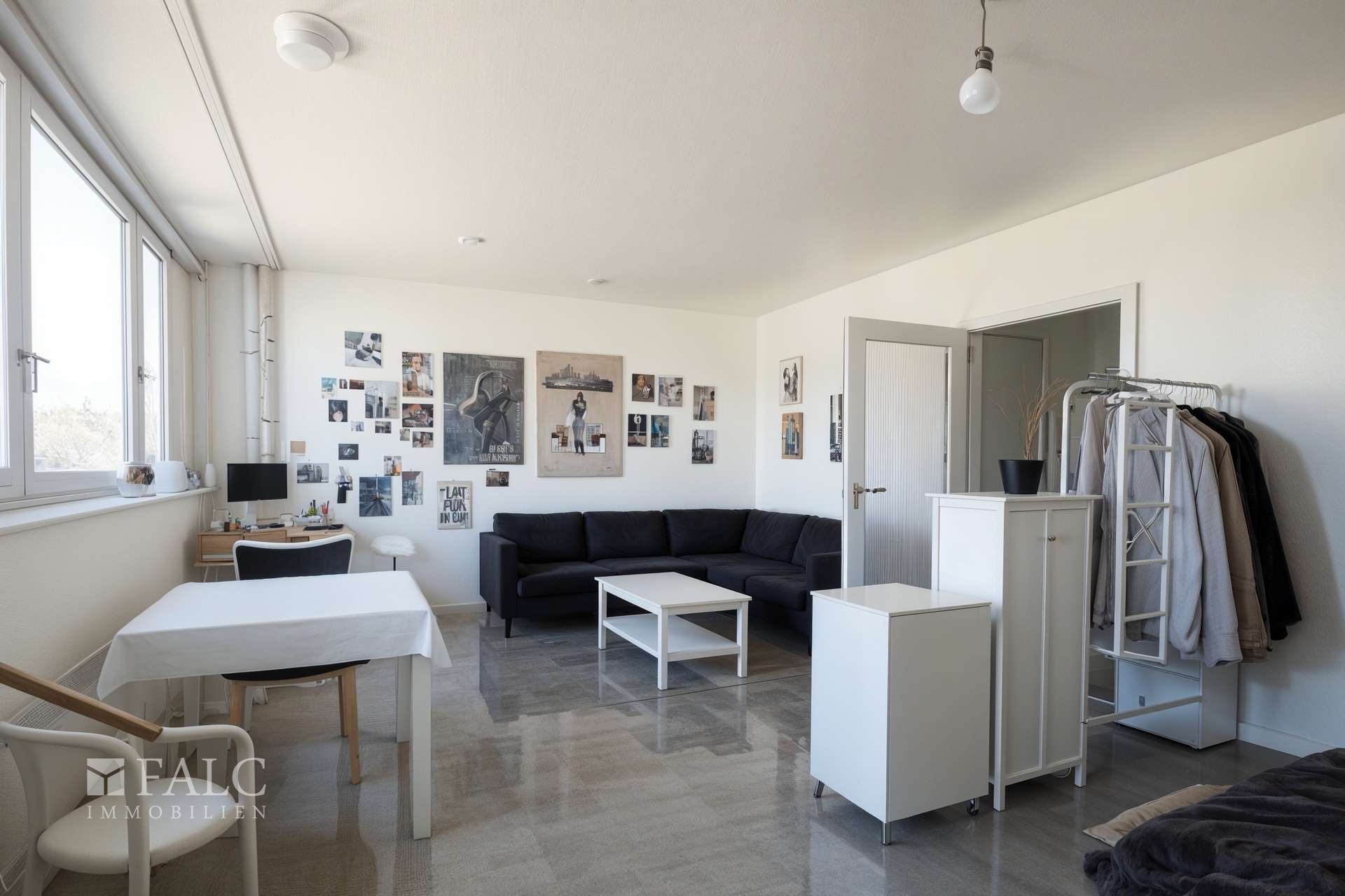 Die Wohnung liegt im 18. Stockwerk des weit über Köln hinaus bekannten Herkules-Hochhauses.