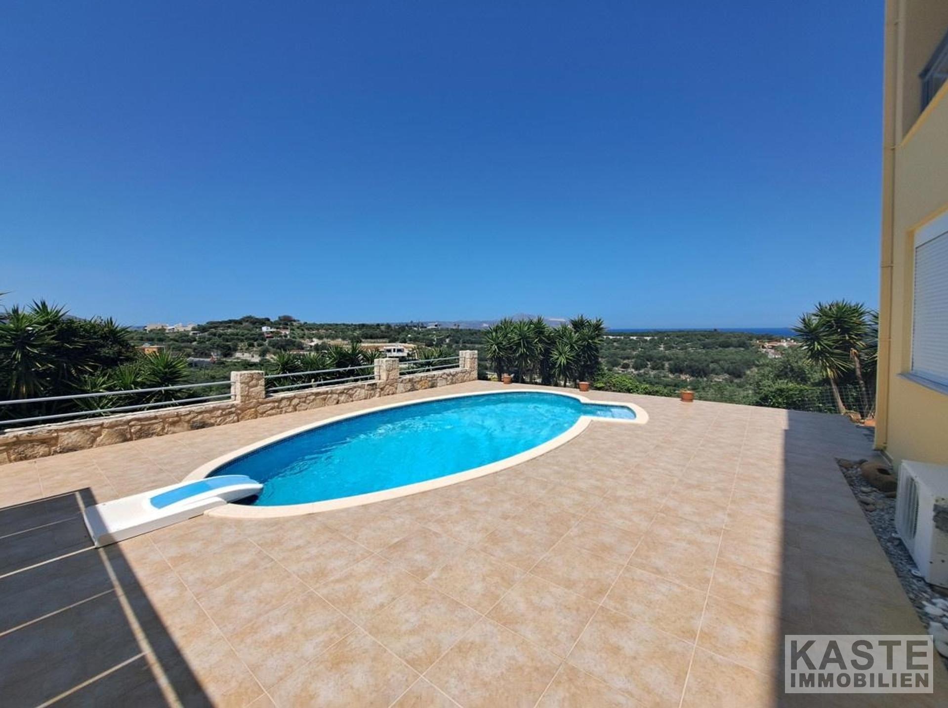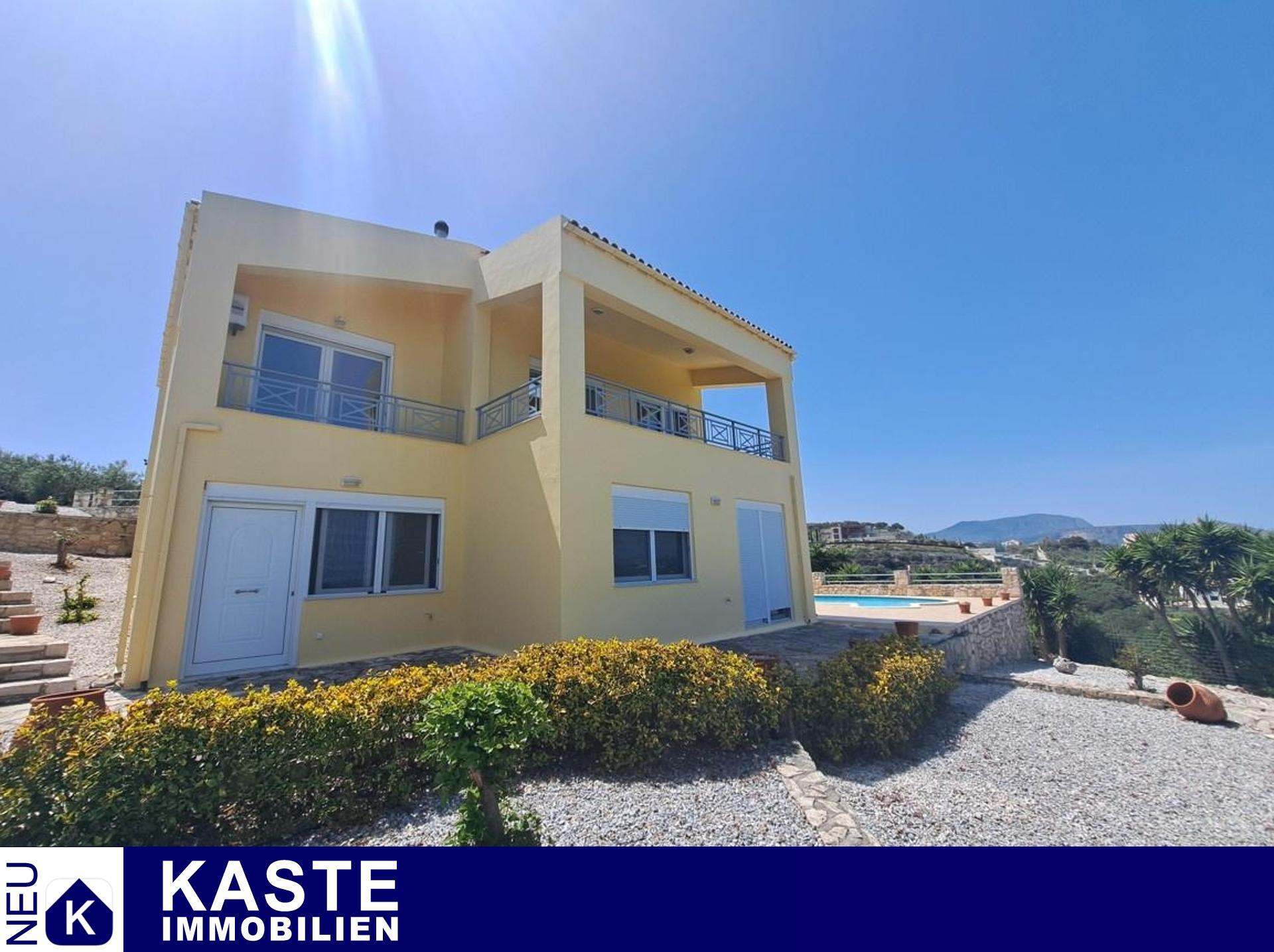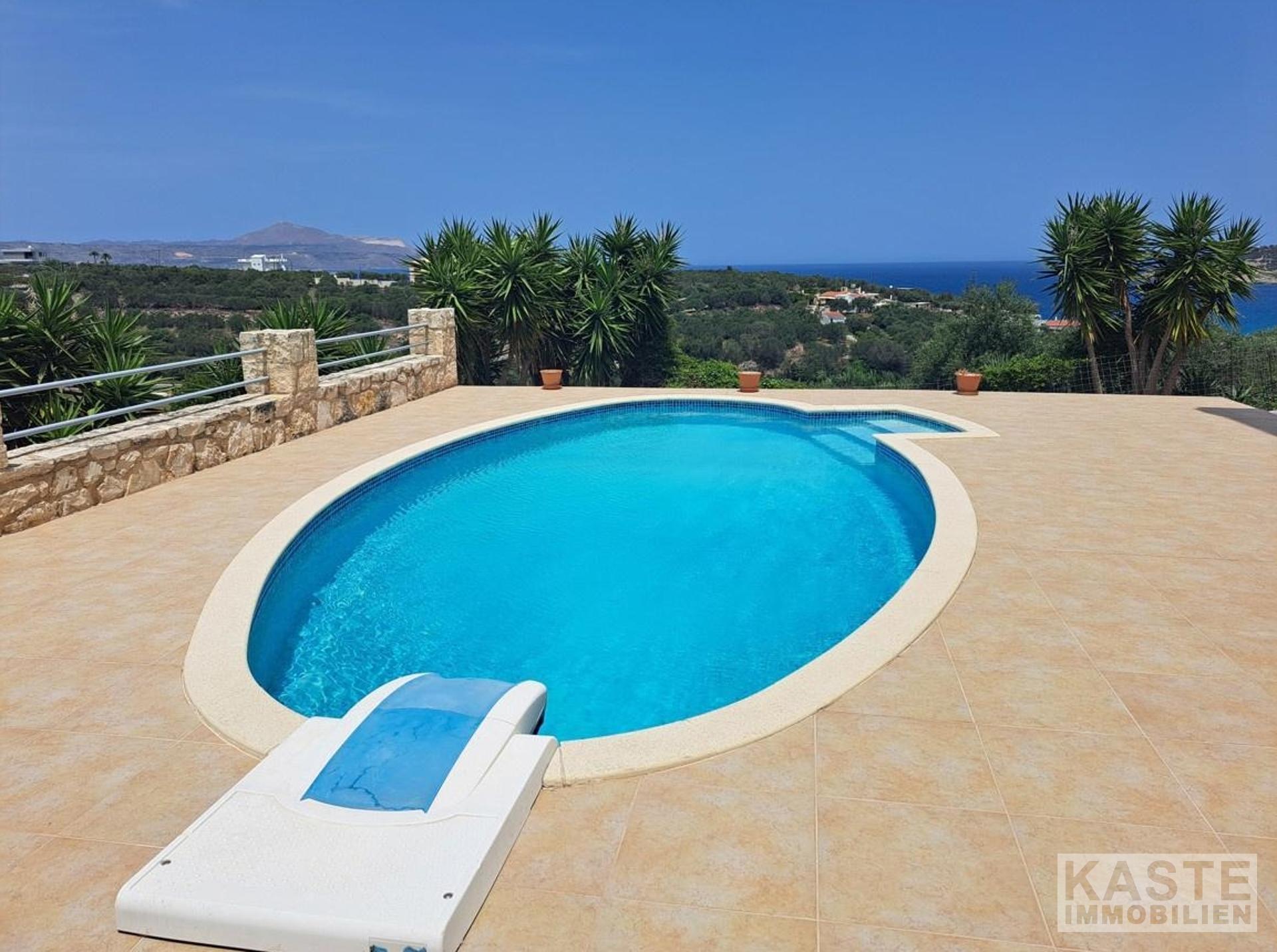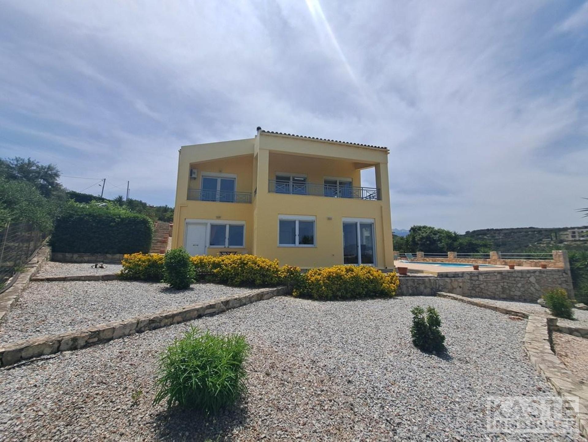 Die moderne 2004 erbaute Immobilie steht auf einem großzügigen 1.731 m² großen Grundstück, das durch liebevoll angelegte Gärten mit Olivenbäumen und einem privaten etwa 20 m² großen Swimmingpool besticht. Der großzügige Garten lädt zum Entspannen und Genießen des mediterranen Klimas ein und bietet zudem einen wirkungsvollen Rückzugsort inmitten der Natur. Das Haus passt perfekt zum kretischen Lebensstil mit seinen elegant gestalteten Holzdecken, einem offenen Kamin sowie einer ebenso charmanten wie modernen Architektur.