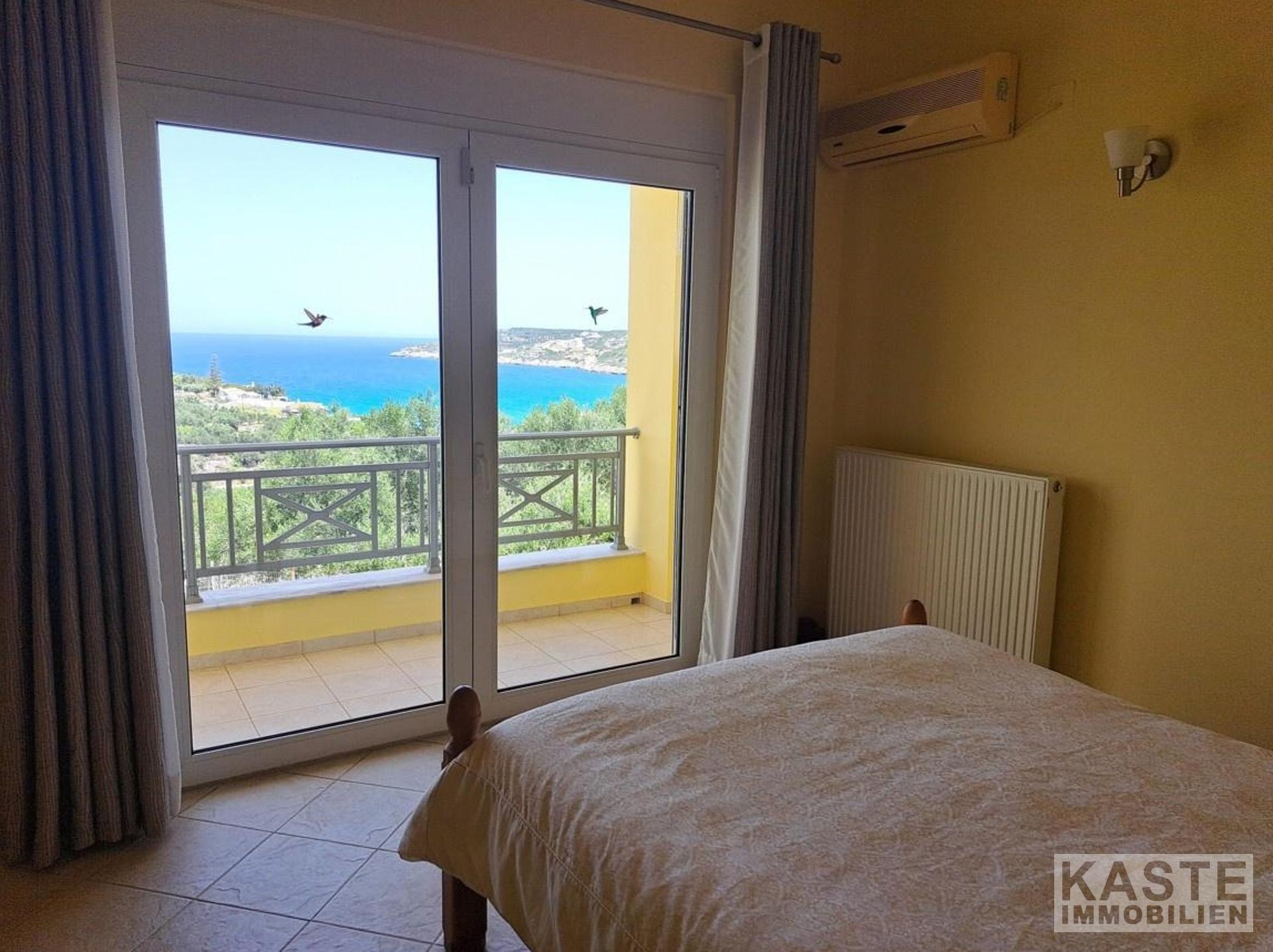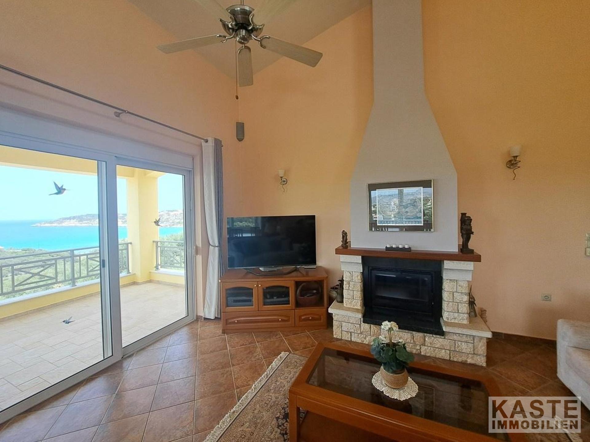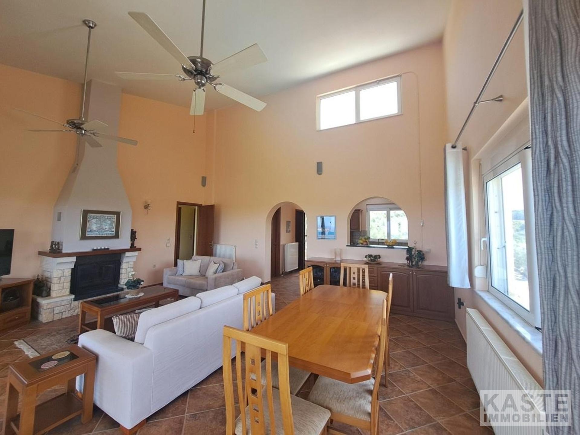 Innenausstattung & Komfort - Drei separate Apartments (für Familie, Gäste oder Vermietung) - Zentralheizung (Gas) kombiniert mit solarer Warmwasserbereitung - Klimatisierung in allen Wohneinheiten - Aluminium-Fenster mit Doppelverglasung - Offener Kamin im Hauptapartment - Holzdecken für natürliche Wohnatmosphäre - Großzügige Balkone und Terrassen mit Meer- und Bergblick
