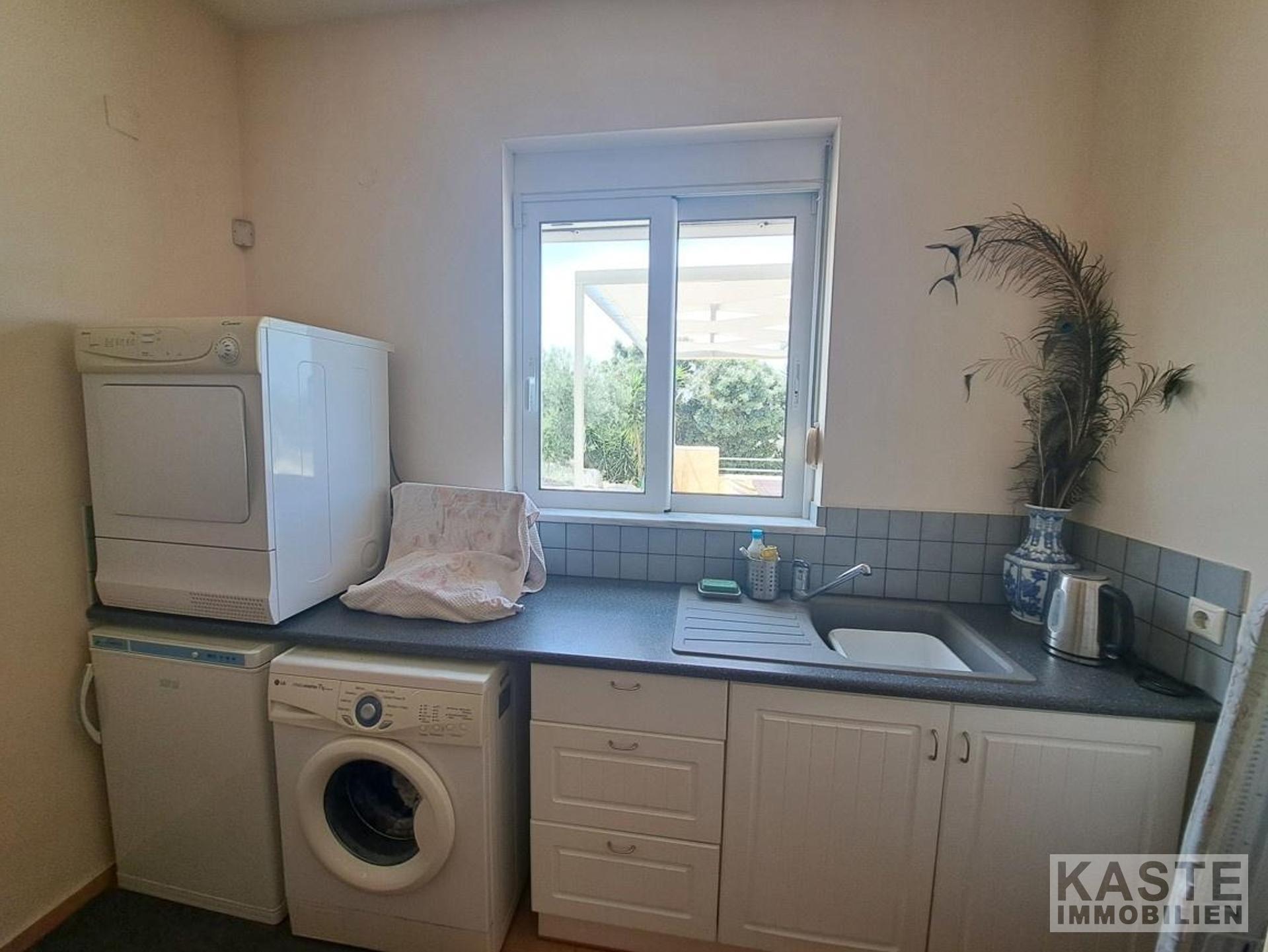 Neben der behaglichen Wohnatmosphäre punktet die Immobilie mit moderner Zentralheizung (Gas) kombiniert mit solargestützter Warmwasseraufbereitung, dopppelverglasten Aluminiumfenstern, Klimatisierung, elektrischem Tor, Garage sowie Fliegengittern – eine gelungene Verbindung von Komfort und vielseitigem Nutzen. Das zusätzliche 700 m² große Grundstück mit einem alten Olivenhain bietet ein Mehr an Privatsphäre sowie vielfältige Nutzungsmöglichkeiten, sei es als weiterer Garten oder naturnaher Rückzugsbereich.