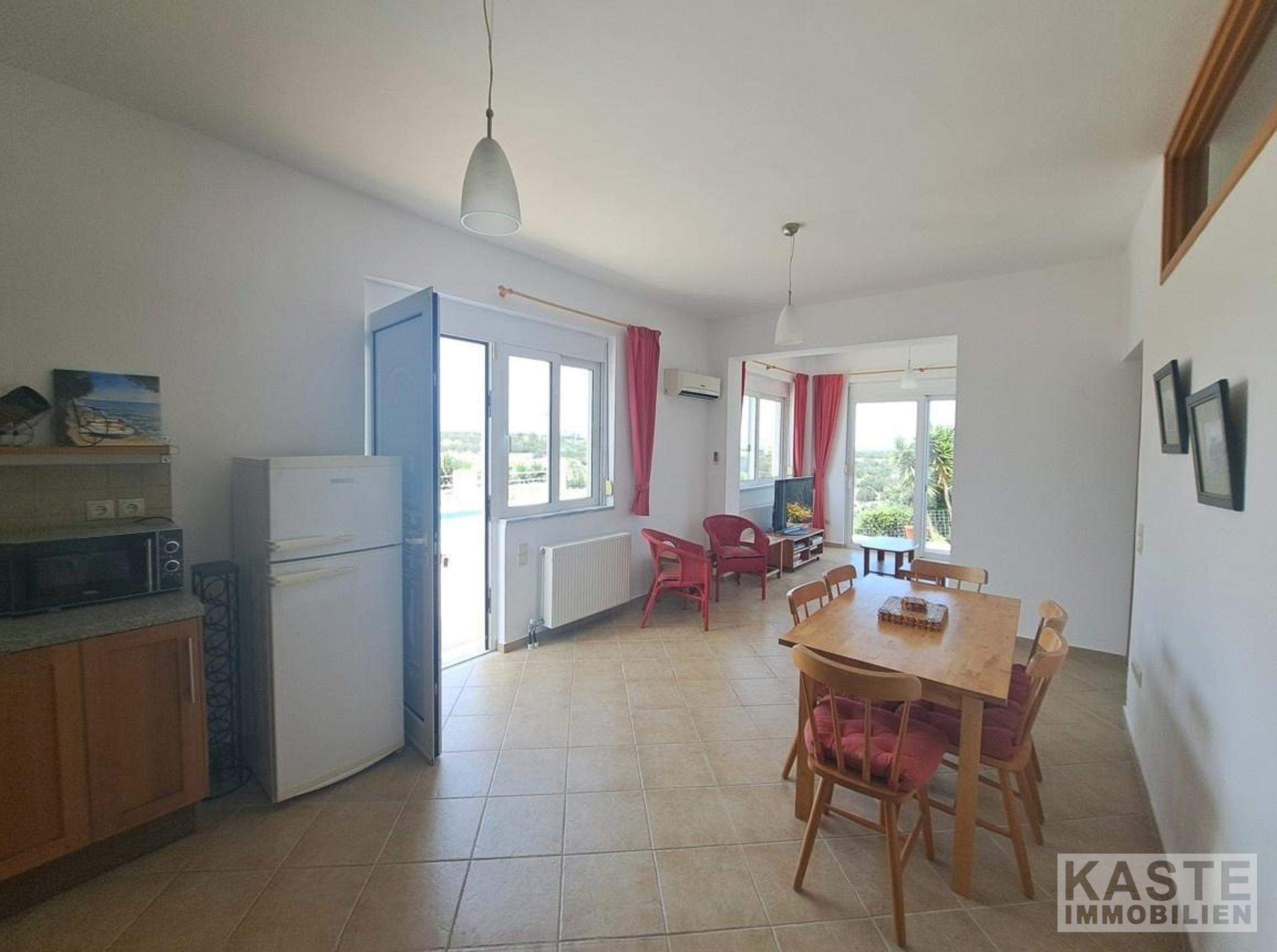 Dieses Anwesen in Almyrida bietet Ruhesuchenden und Küstenliebhabern ein einzigartiges Zuhause, das sowohl als Dauerwohnsitz als auch renditestarkes Ferienhaus hervorragend geeignet ist. Nur wenige Fahrminuten trennen Sie vom goldgelben Sandstrand und dem belebten Dorfzentrum, was hohen Wohnkomfort mit naturnaher Privatsphäre harmonisch verbindet.