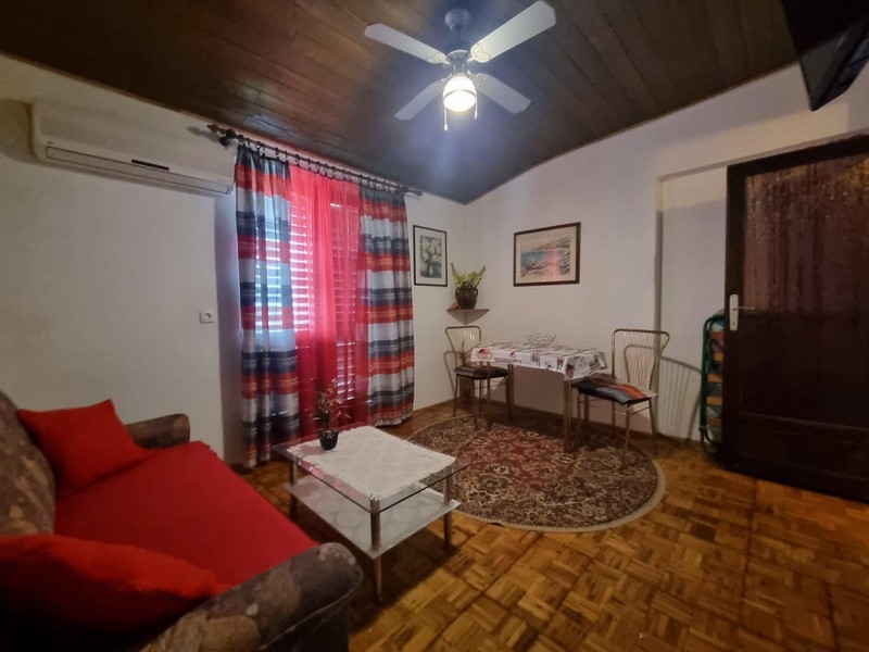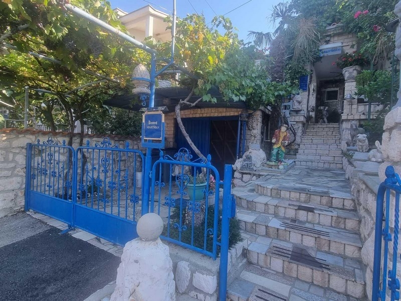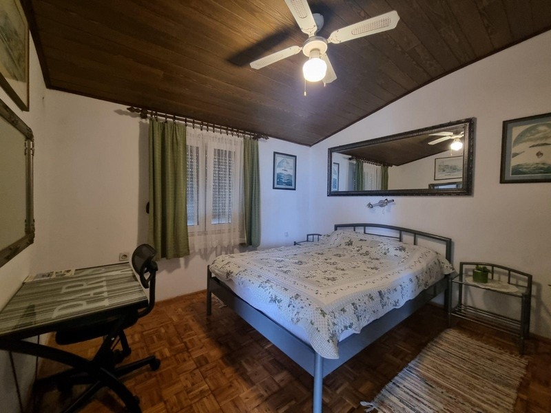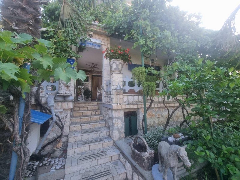 Im Erdgeschoss des Hauses befinden sich ein Ein-Zimmer-Apartment und ein Studio-Apartment. Die Außentreppe führt in den ersten Stock, wo sich ein weiteres Einzimmerapartment und ein Studioapartment befinden. Im Garten gibt es eine Taverne, eine Sauna, einen Abstellraum, eine Garage, einen Weinkeller und einen Parkplatz.
