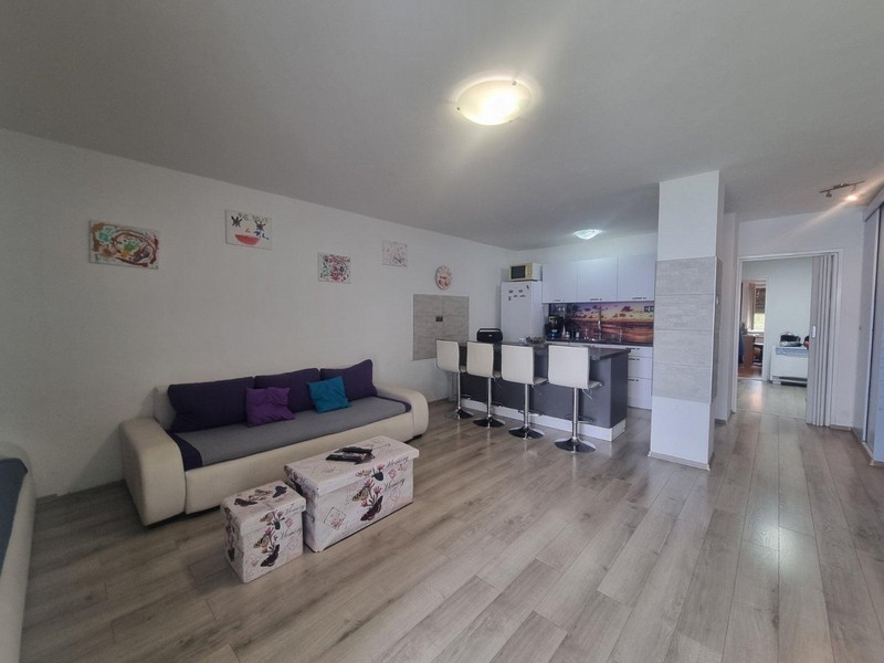 Das Appartement liegt im zweiten Obergeschoss und hat eine Wohnfläche von ca. 67 m², welche sich auf ein offenes Wohnzimmer mit Küche und Essbereich, 2 Schlafzimmer und ein Badezimmer verteilt.