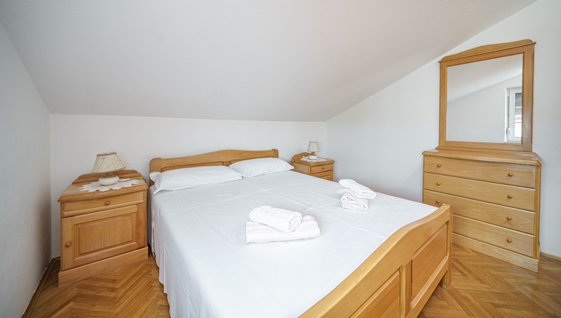 Dachgeschoss: Wohnung mit Schlafzimmer, Badezimmer, Wohnzimmer, zwei Terrassen