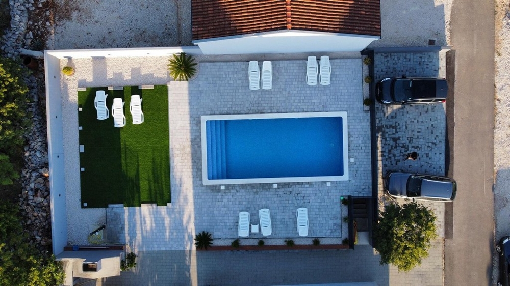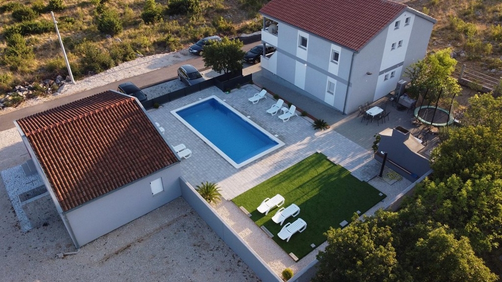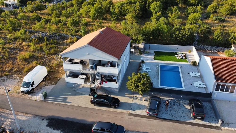 Das Gebäude wurde 2015 aus hochwertigen Materialien gebaut und bietet eine moderne Ausstattung. Die Lage ist verkehrsgünstig in der Nähe der Autobahn (7 km) und Zadar (35 km).