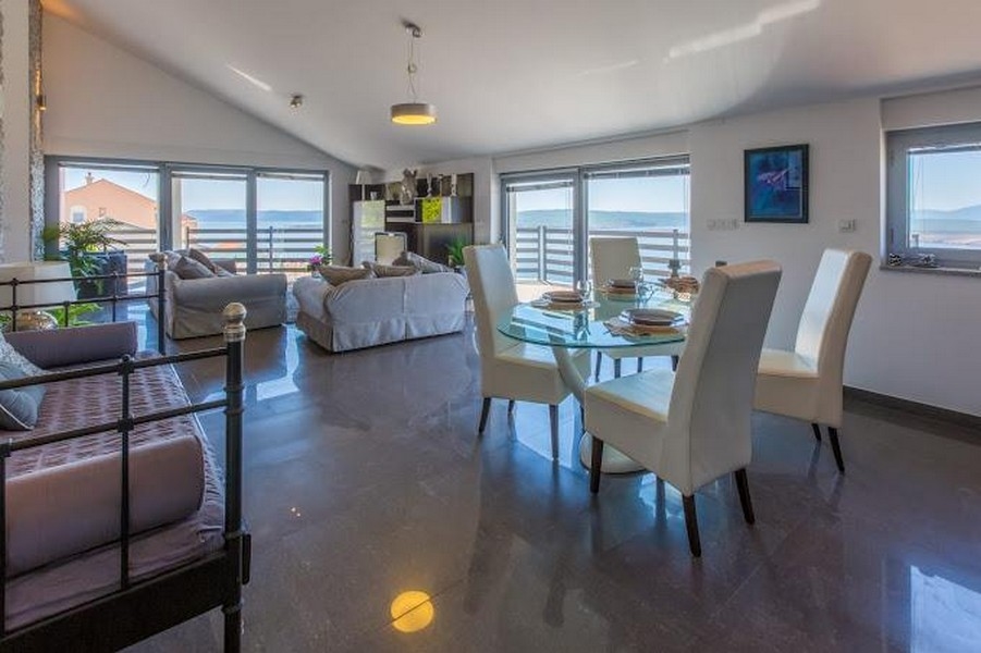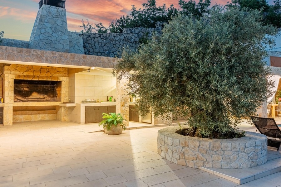 Es handelt sich um ein freistehendes Haus mit vier separaten Wohnungen, das sich auf einem erhöhten Teil von Dramalj befindet. Von hier aus genießt man einen spektakulären Blick auf das Meer und die Umgebung. Das Haus wurde auf einem großen Grundstück gebaut und befindet sich geschickt am unteren Ende des Grundstücks, um viel zusätzlichen Platz im großen Garten mit einem beheizten Pool, einem Whirlpool und einem Basketballplatz sowie einem überdachten Bereich neben dem Pool für gesellige Zusammenkünfte zu schaffen. Das gesamte Anwesen ist von einer Steinmauer umgeben, während die Grünflächen gepflegt und mit mediterranen Pflanzen geschmückt sind.