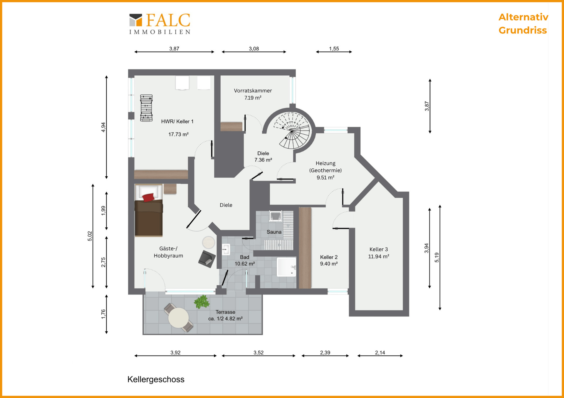 + Technikraum, Hauswirtschafts- und Vorratsräume