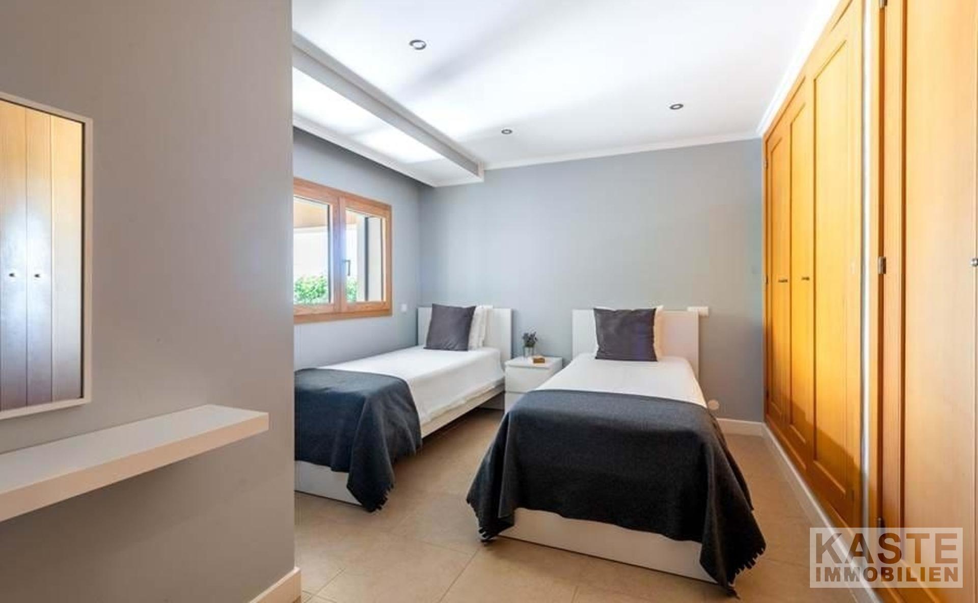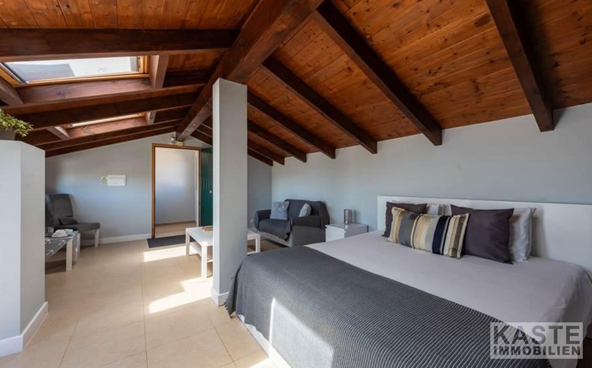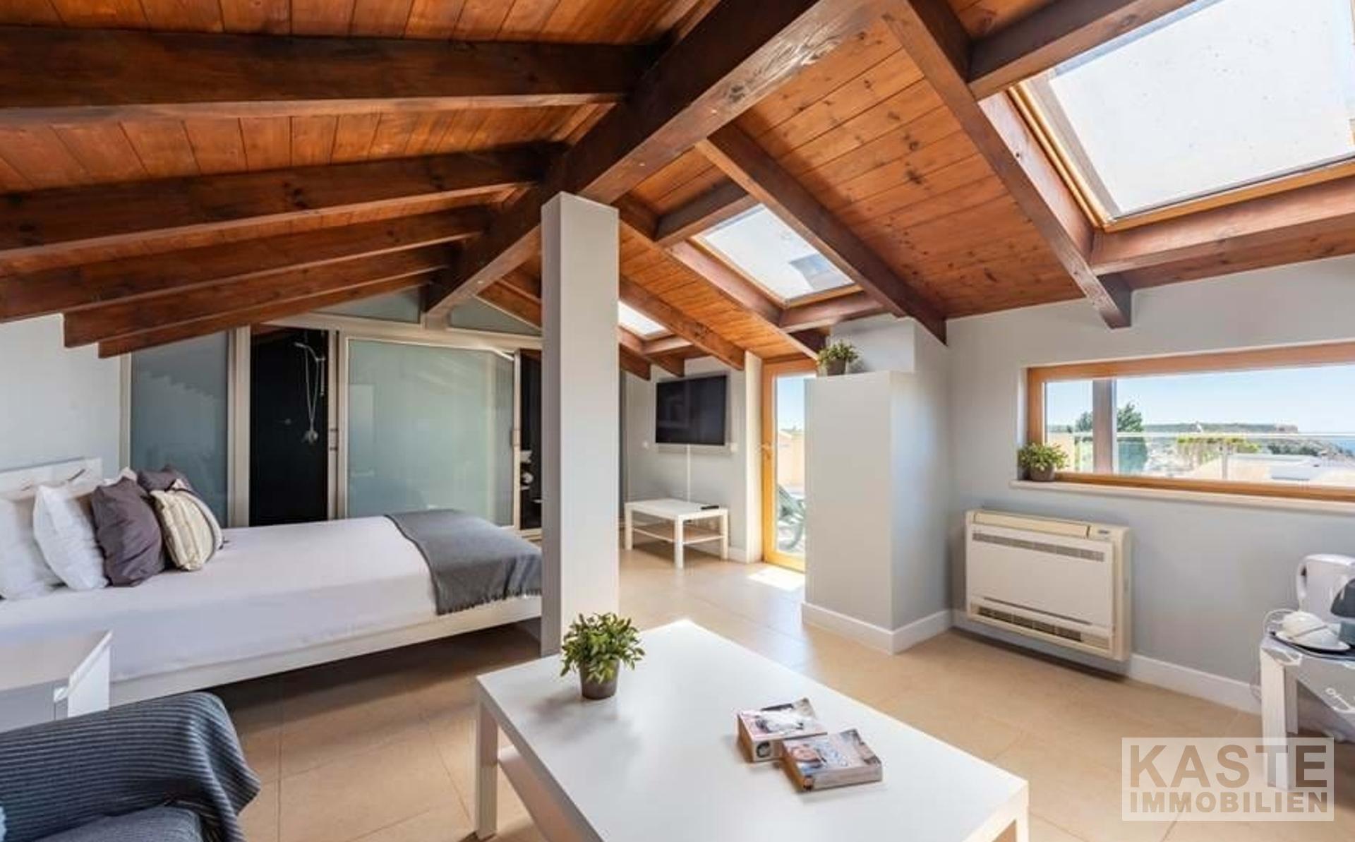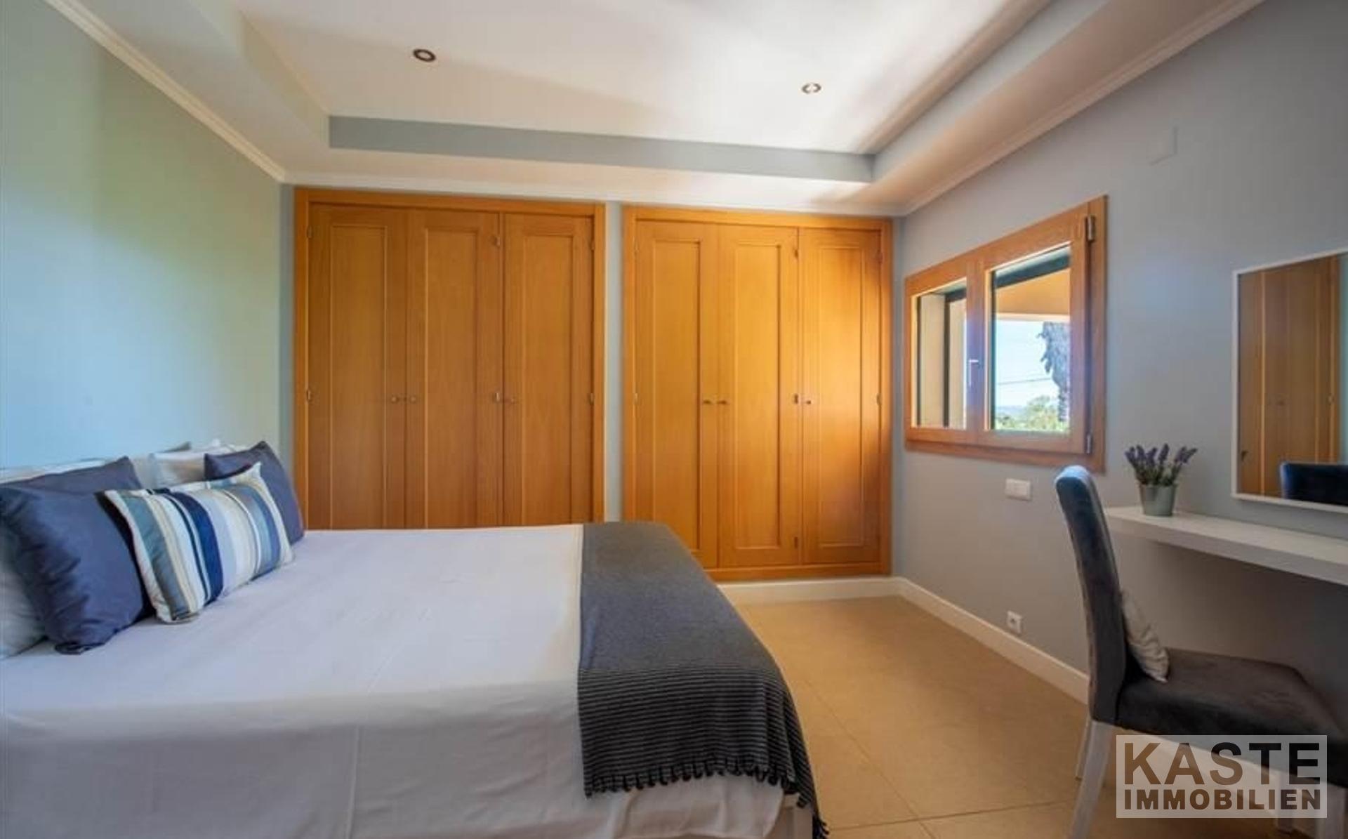 Ein weiterer Vorteil ist die Möglichkeit, den Pool kostengünstig zu beheizen und somit das ganze Jahr über zu nutzen. Das Highlight des Anwesens ist das beeindruckende Hauptschlafzimmer im Obergeschoss, das nicht nur durch seine Großzügigkeit und hochwertige Ausstattung besticht, sondern auch einen unvergleichlichen Blick auf das Meer bietet – ein Anblick, den Sie direkt vom Bett aus genießen können.