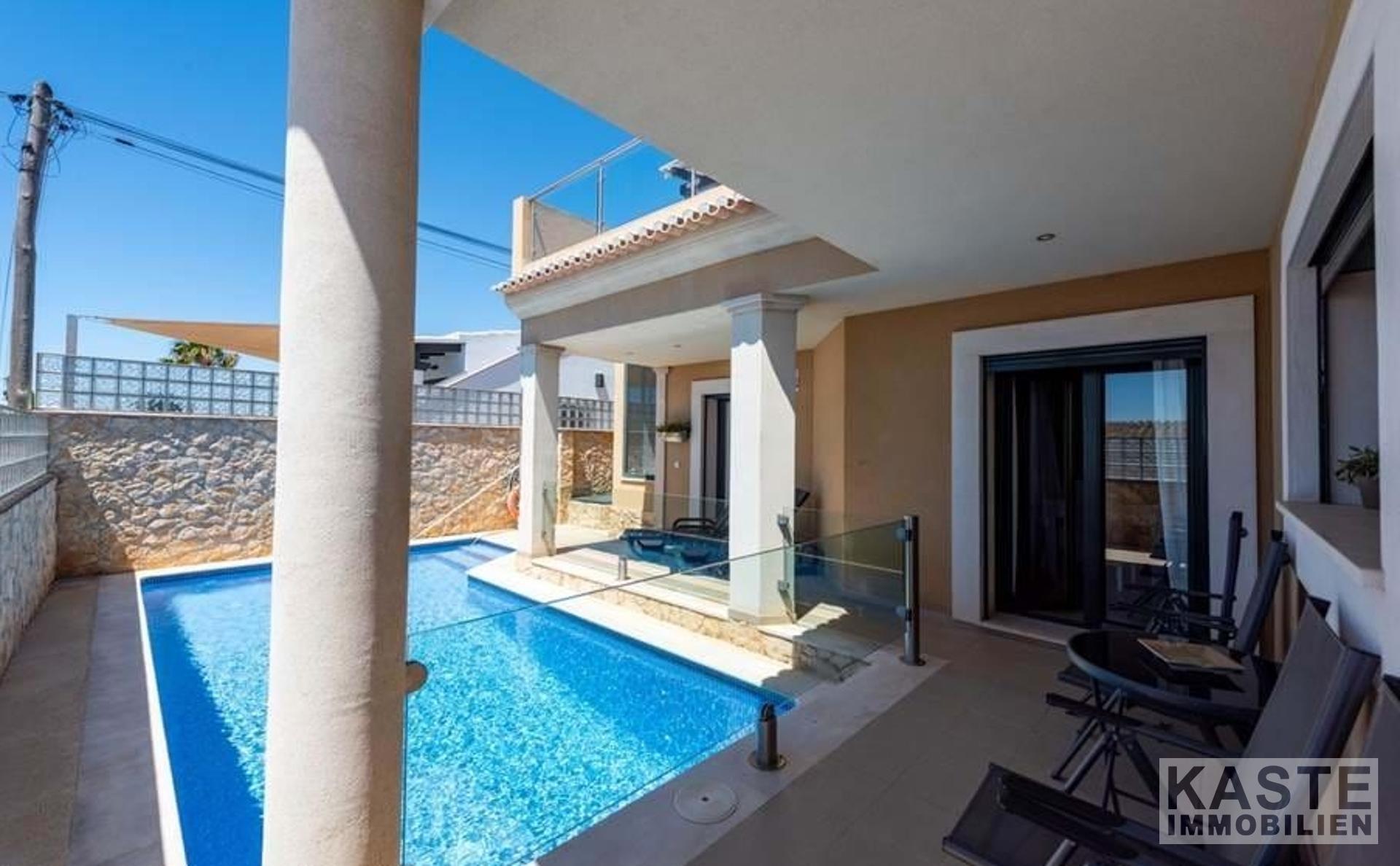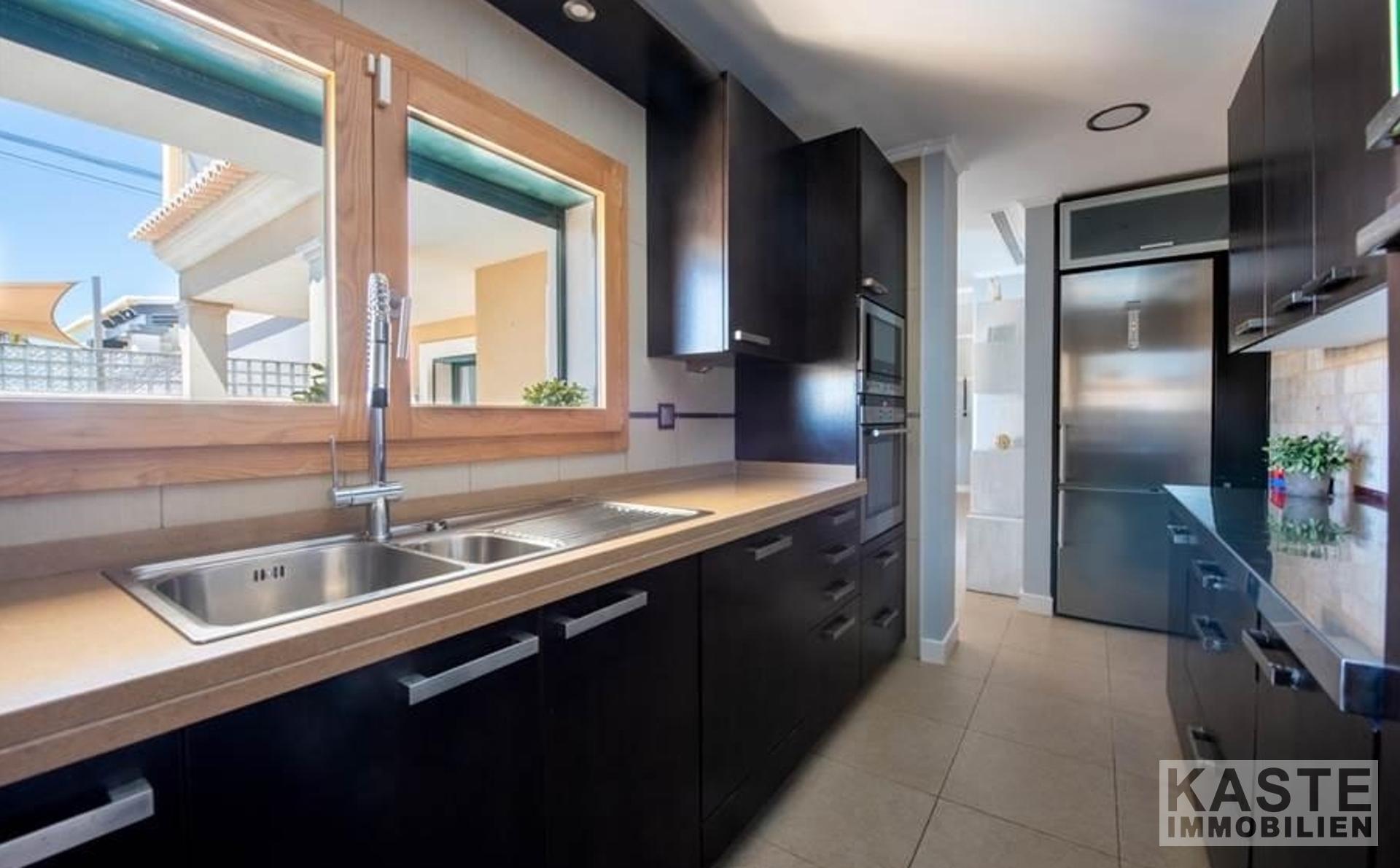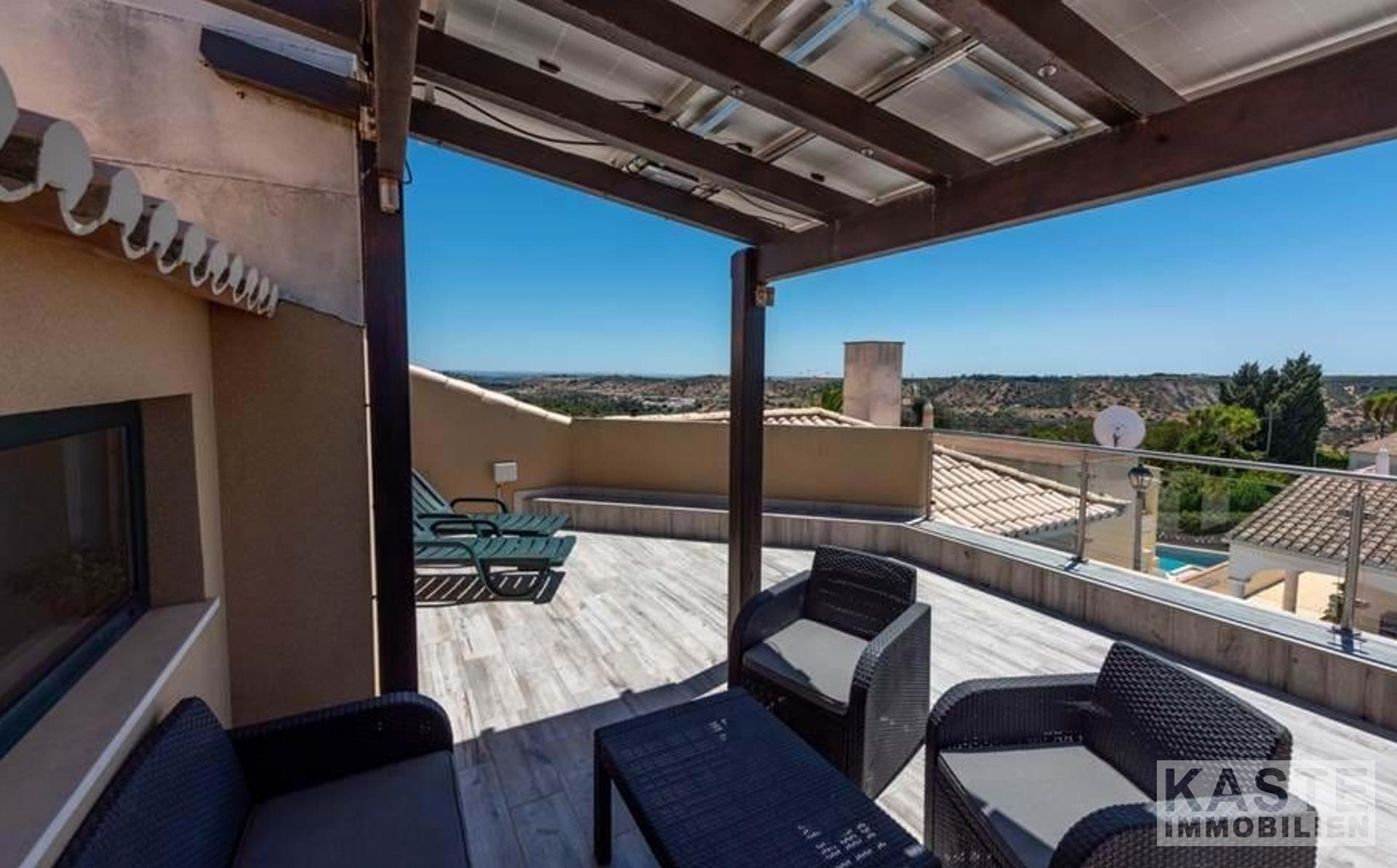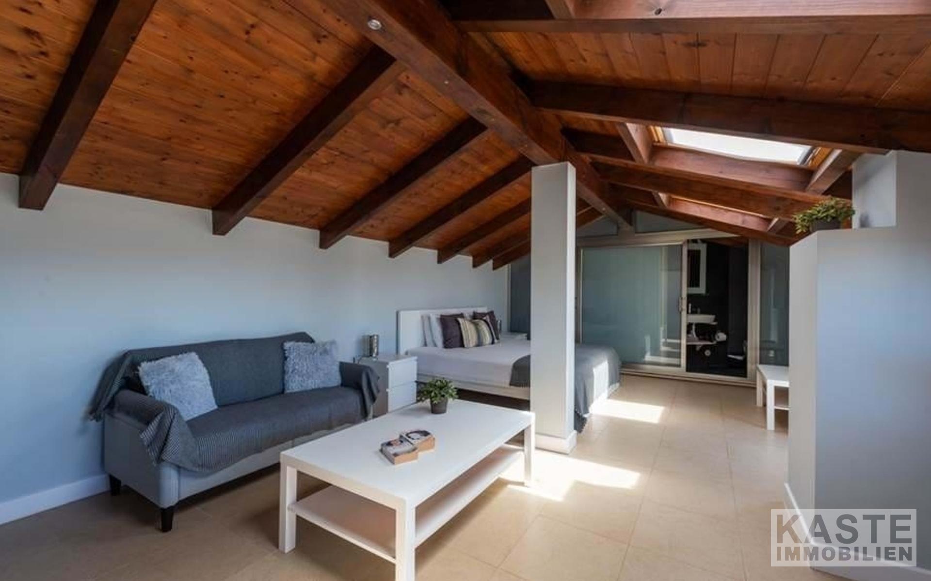Ein weiterer Vorteil ist die Möglichkeit, den Pool kostengünstig zu beheizen und somit das ganze Jahr über zu nutzen. Das Highlight des Anwesens ist das beeindruckende Hauptschlafzimmer im Obergeschoss, das nicht nur durch seine Großzügigkeit und hochwertige Ausstattung besticht, sondern auch einen unvergleichlichen Blick auf das Meer bietet – ein Anblick, den Sie direkt vom Bett aus genießen können.