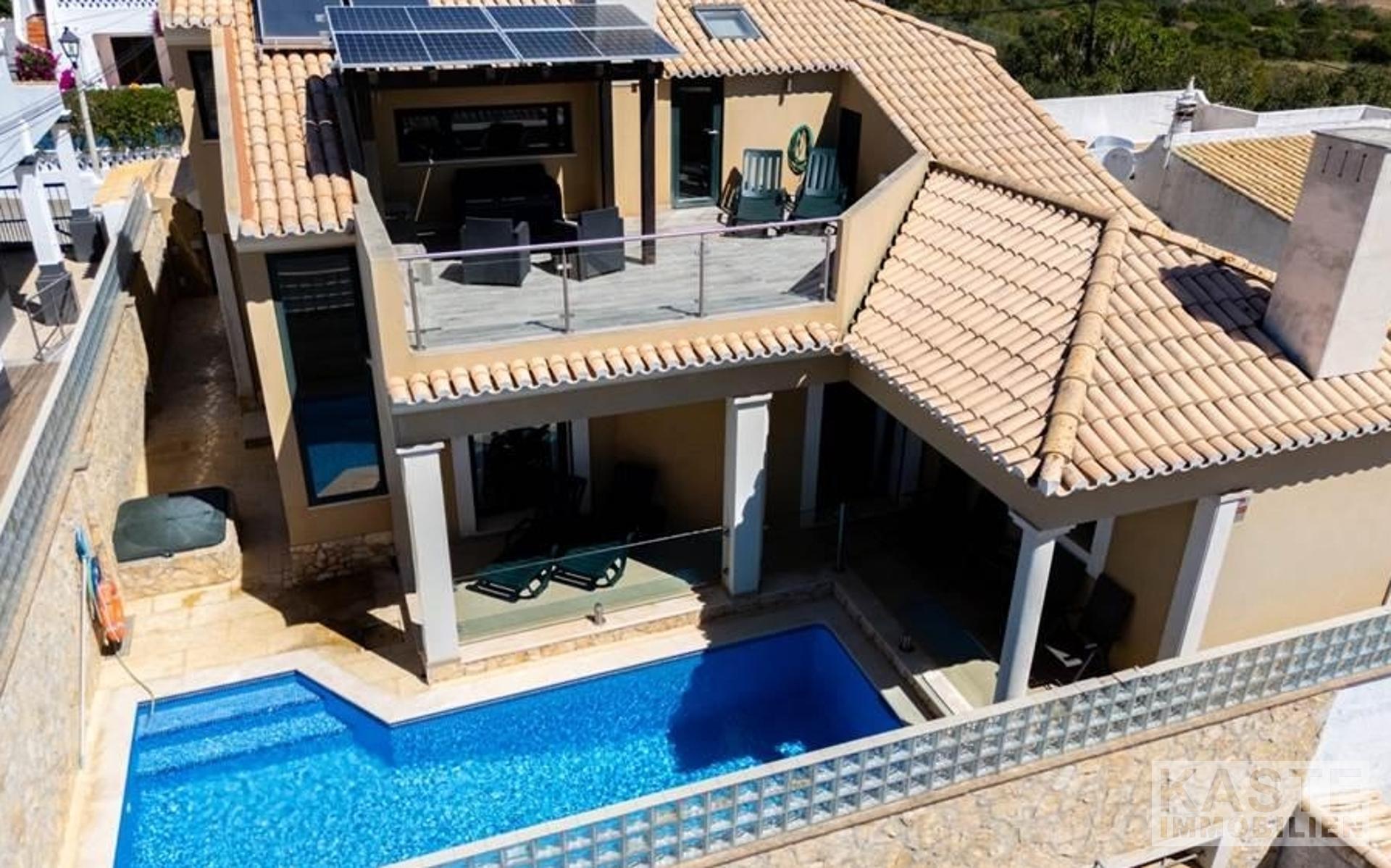 Diese außergewöhnliche Villa mit vier Schlafzimmern und atemberaubendem Meerblick befindet sich im beliebten Stadtteil Belavista in Praia da Luz. Sie wurde auf höchstem Niveau renoviert und bietet großzügigen Stauraum, wobei jedes Schlafzimmer mit mehreren Einbauschränken ausgestattet ist – ideal für eine große Familie.