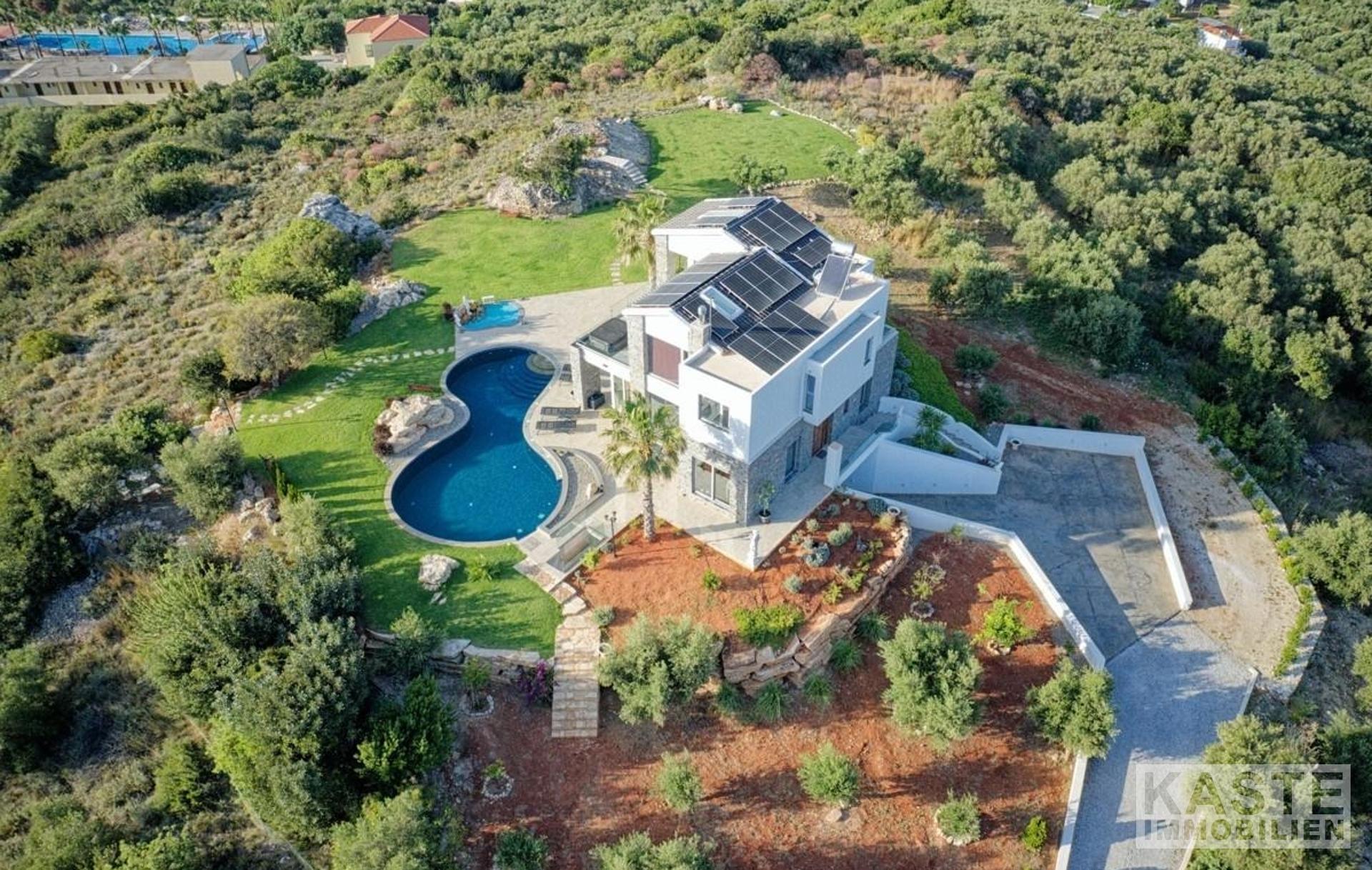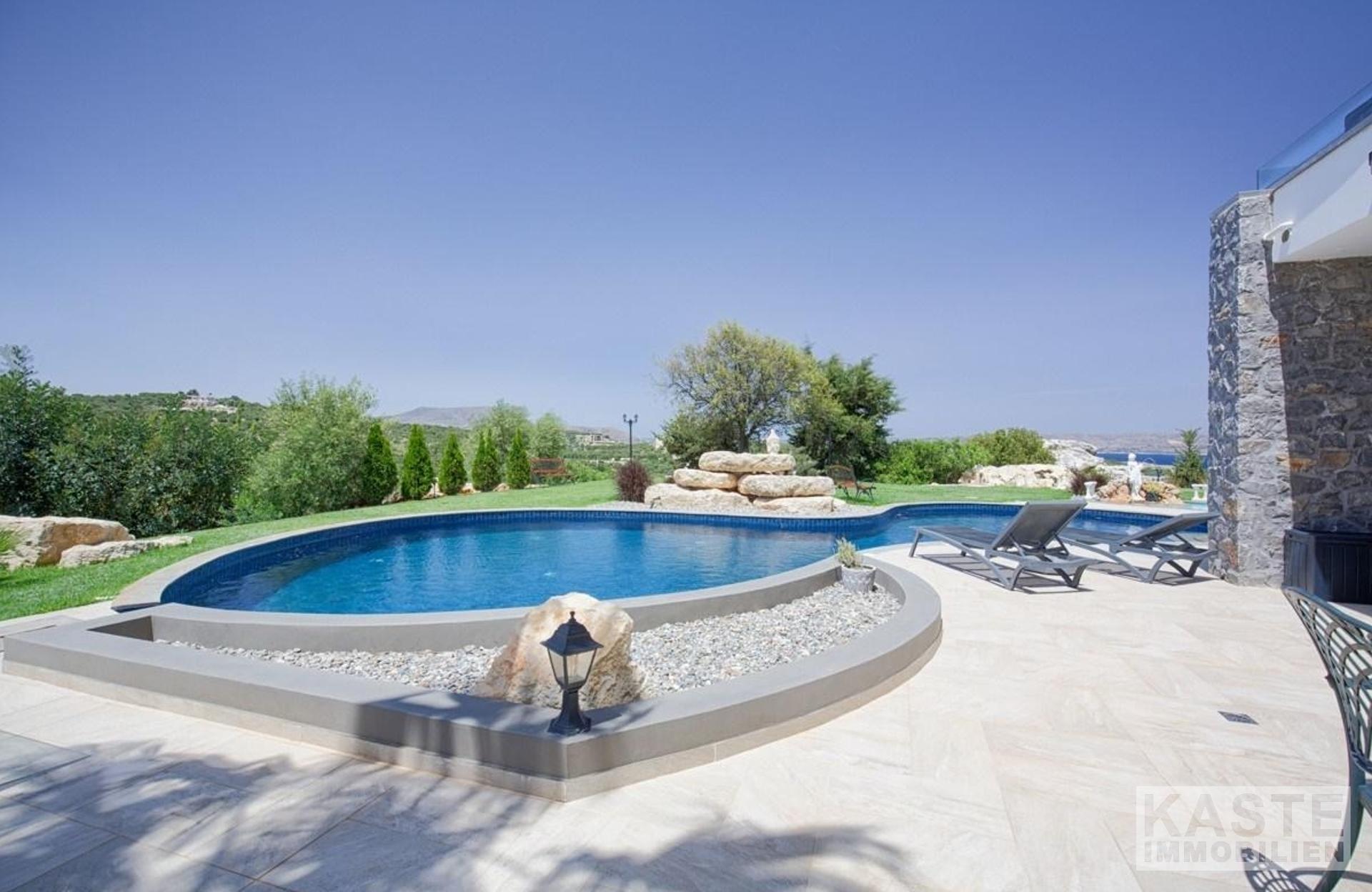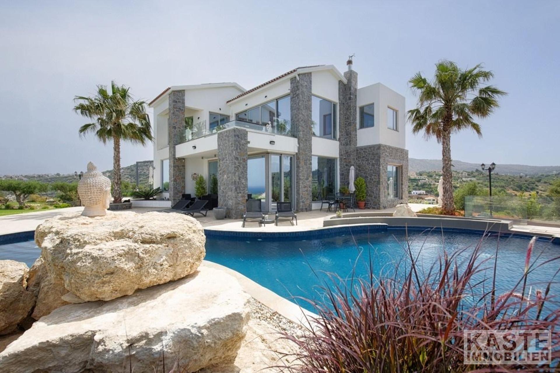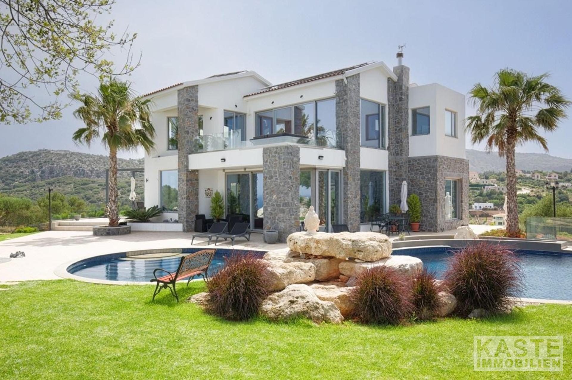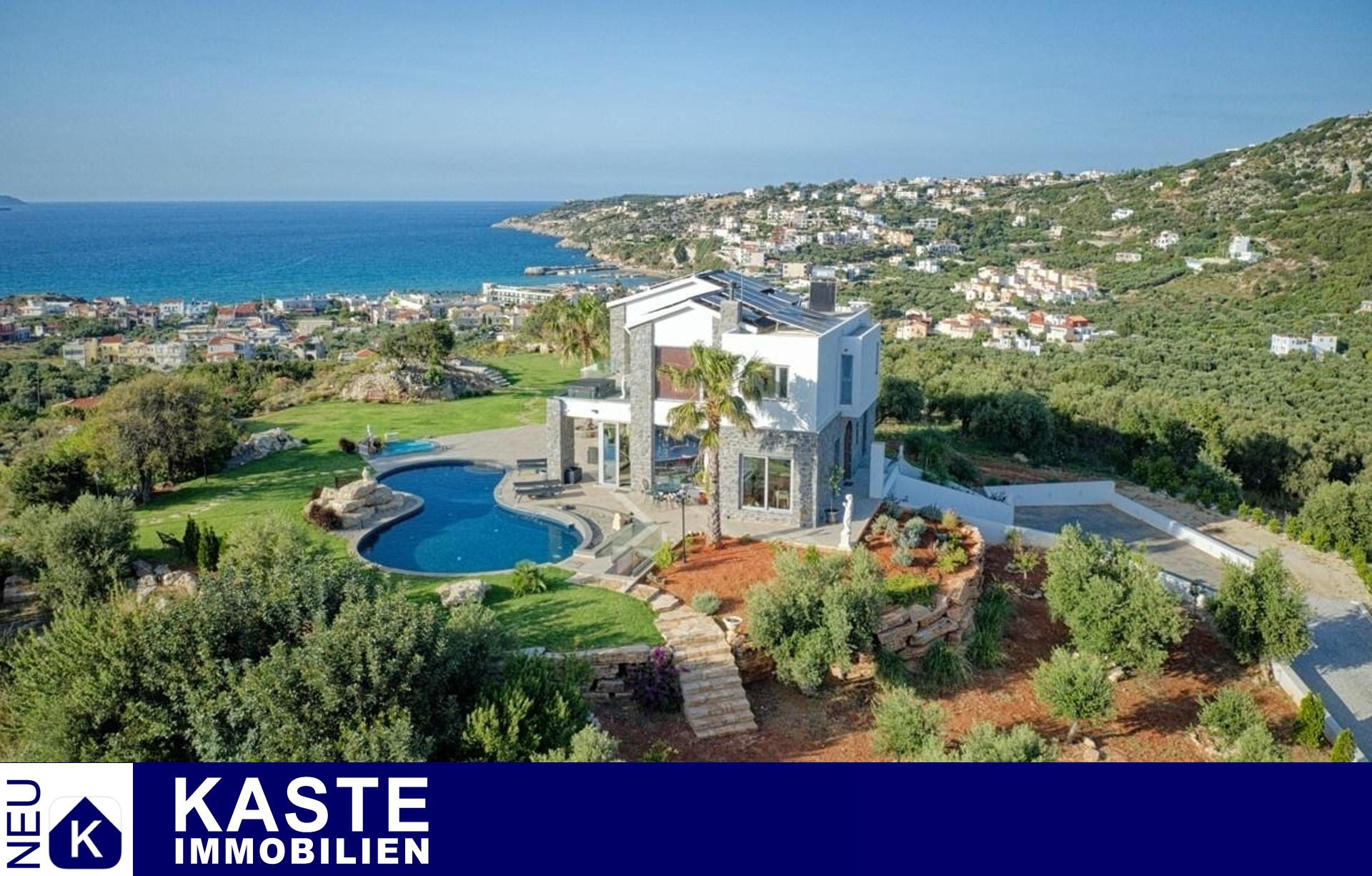 Willkommen in dieser spektakulären Luxusvilla, die 2022 auf einem 5000 m² großen Grundstück in der idyllischen Region von Almyrida, nahe Chania, errichtet wurde. Das Anwesen bietet 214 m² Wohnfläche, ergänzt durch ein 138 m² großes Untergeschoss, und besticht durch zeitgenössisches Design, modernsten Komfort und eine unvergleichliche Aussicht. Der atemberaubende 360-Grad-Panoramablick auf das Meer, die Berge und den Pool ist uneingeschränkt und dauerhaft.