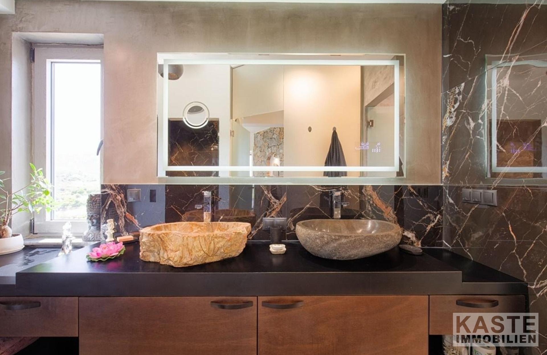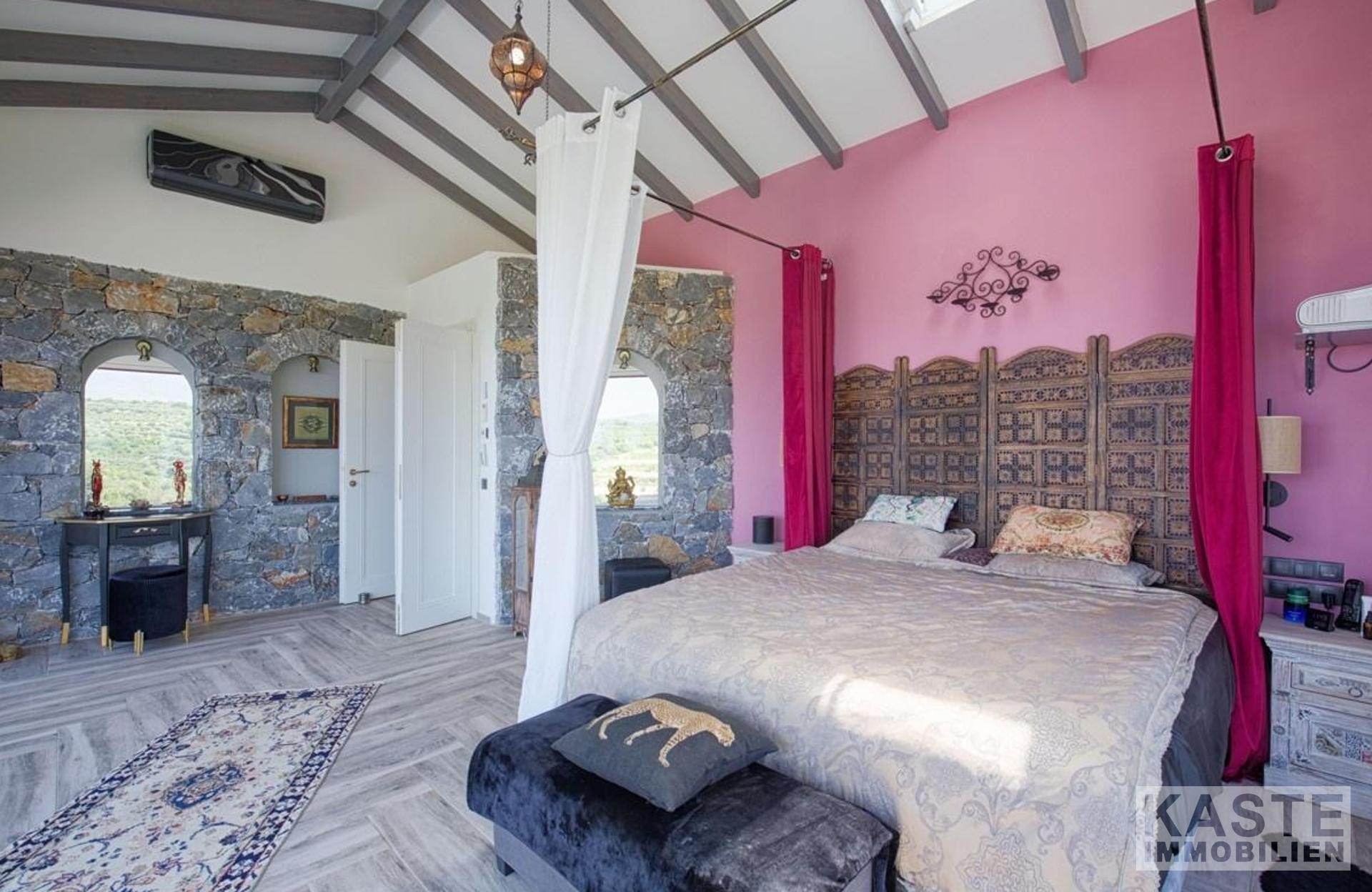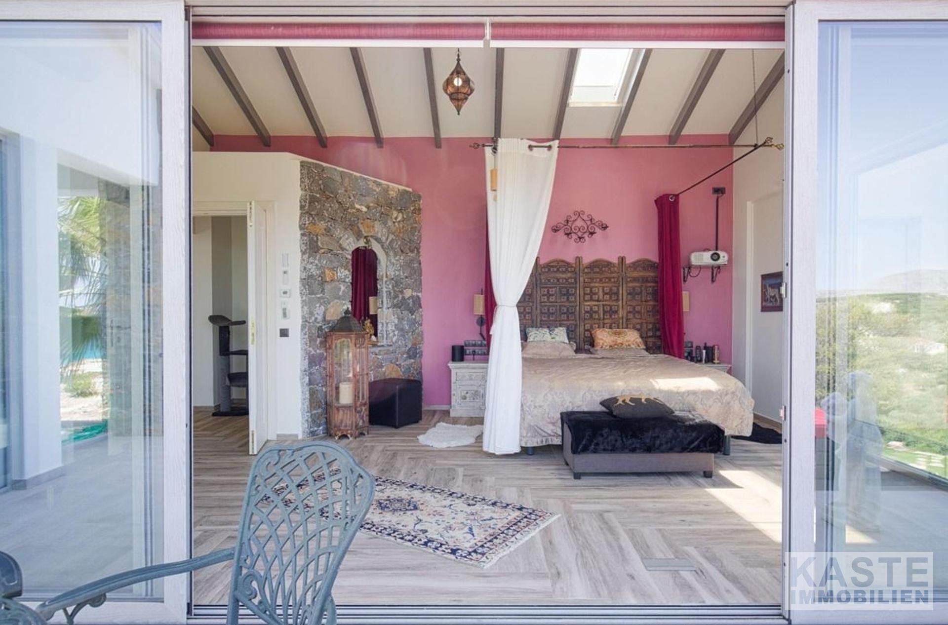 Die Villa verfügt über fünf großzügige Schlafzimmer, die alle mit viel Liebe zum Detail und hohem Komfort ausgestattet sind. Das Hauptschlafzimmer dient als privater Rückzugsort und bietet auf dem eigenen Balkon einen Whirlpool, von dem aus Sie den beeindruckenden Ausblick auf die umliegende Landschaft genießen können. Die drei stilvoll gestalteten Badezimmer bieten reichlich Platz und höchsten Komfort, um den Ansprüchen jedes Gastes gerecht zu werden.