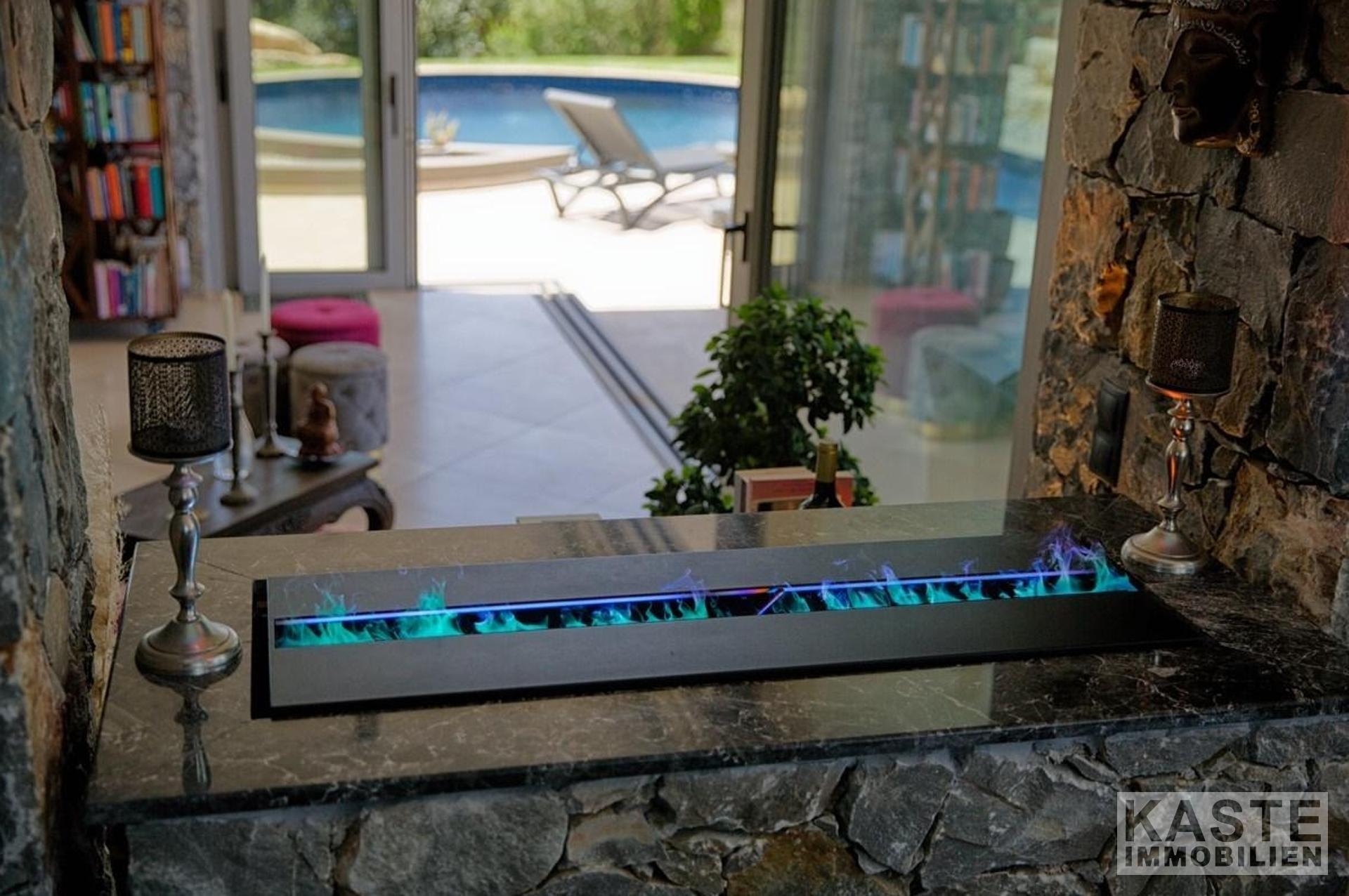 Für ganzjährigen Wohnkomfort sorgen Fußbodenheizung, ein gemütlicher Kamin für kühle Abende sowie eine Klimaanlage, die an heißen Tagen für angenehme Temperaturen sorgt. Die Villa ist mit einer vollständigen Photovoltaikanlage mit Batteriespeicher ausgestattet, um maximale Energieeffizienz und Nachhaltigkeit zu gewährleisten. Zudem garantiert das Wasserfiltersystem jederzeit sauberes Trinkwasser.
