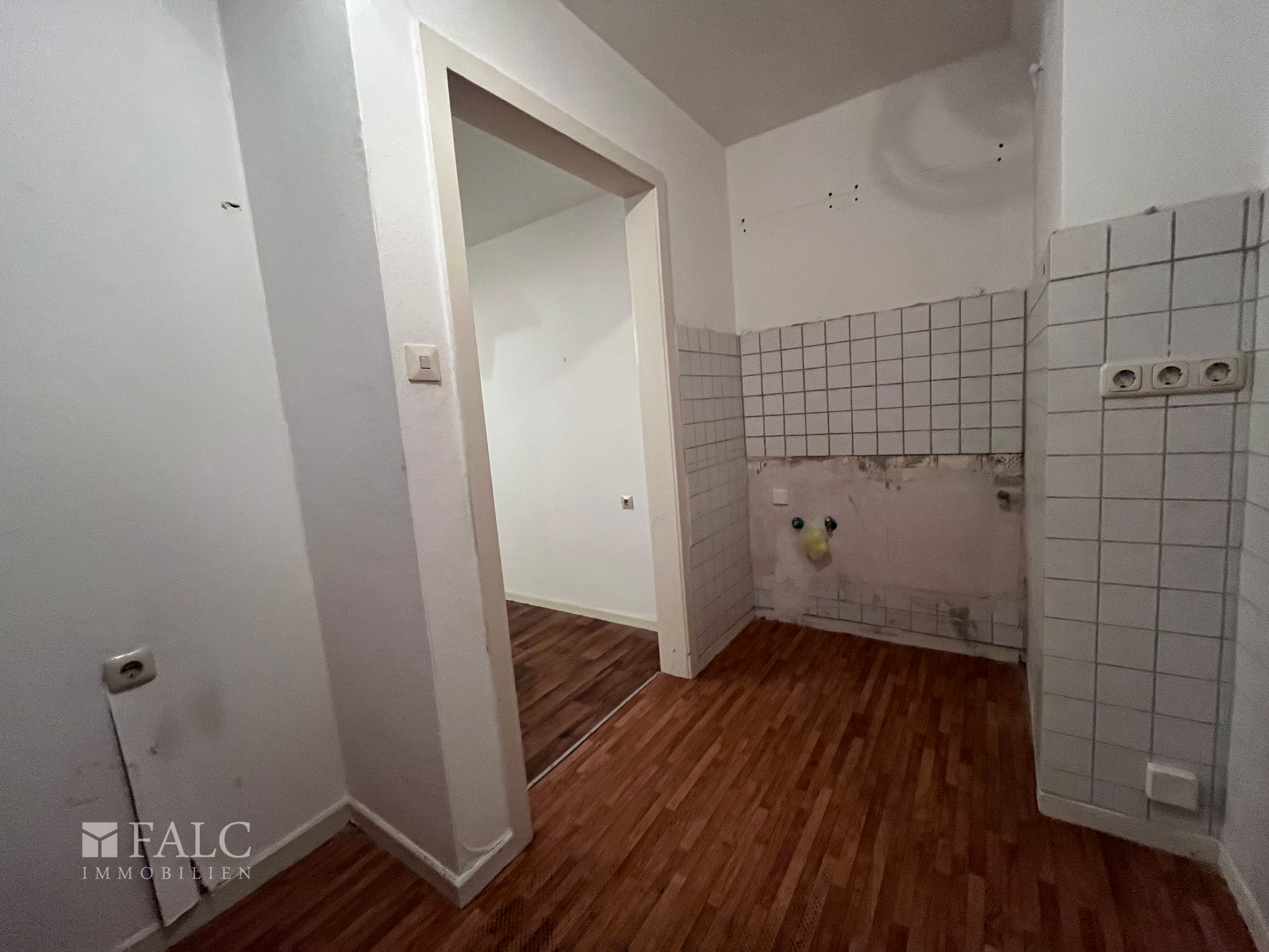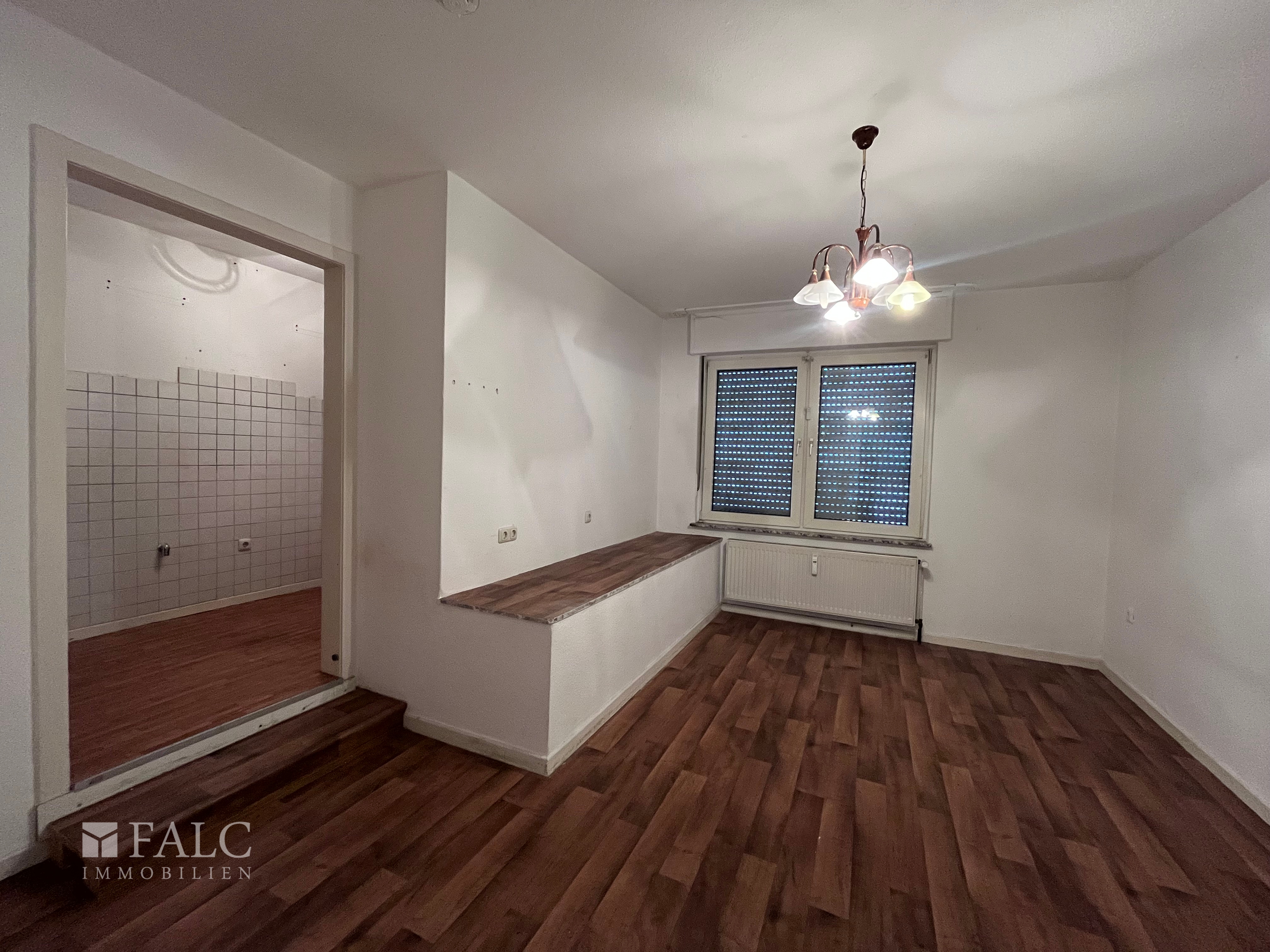 Das Wohnzimmer bildet den zentralen Lebensmittelpunkt der Wohnung und bietet ausreichend Platz für eine gemütliche Wohnlandschaft. Die Küche ist als separater Raum gestaltet und verfügt über einen gefliesten Arbeitsbereich sowie die notwendigen Anschlüsse für eine individuelle Küchengestaltung. Ein Essplatz lässt sich hier ebenfalls gut integrieren.