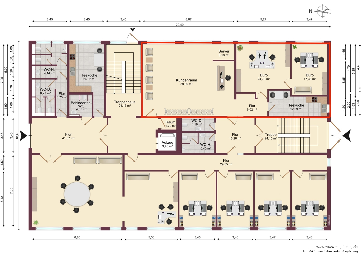Die angebotene Gewerbefläche erstreckt sich über großzügige 122 Quadratmeter und befindet sich im Lorenzweg 56, in einem renommierten Bürokomplex in der Nähe der Magdeburger Innenstadt.