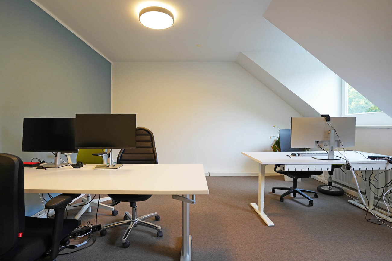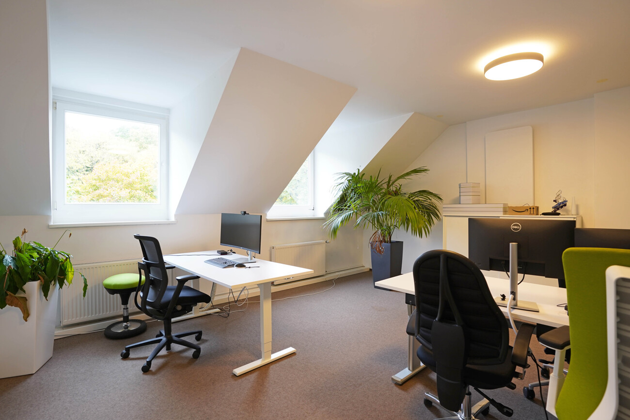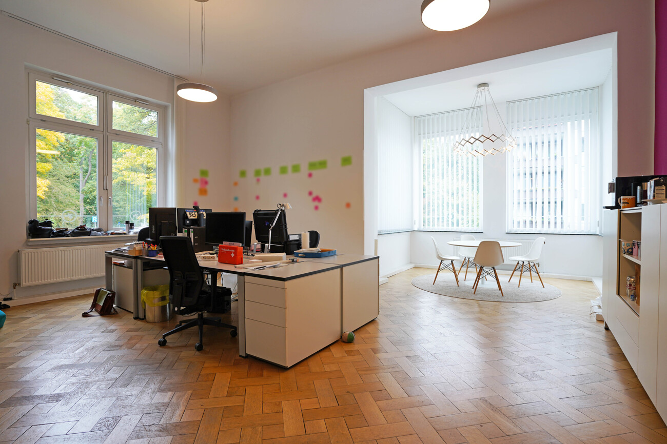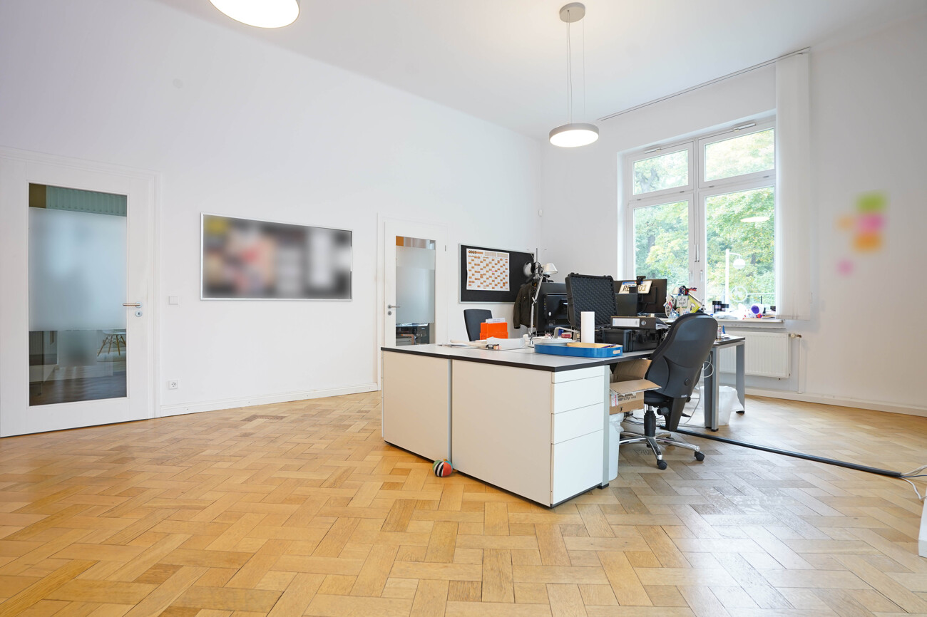 Alle Büroräume verfügen über eine angenehme Größe und lassen sich flexibel möblieren. Die Villa bietet zudem eine Garage, die dieses Mietangebot abrundet.