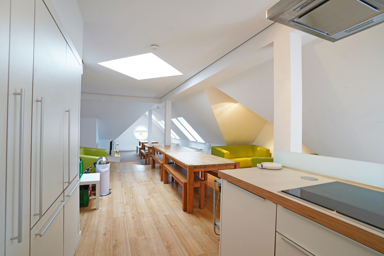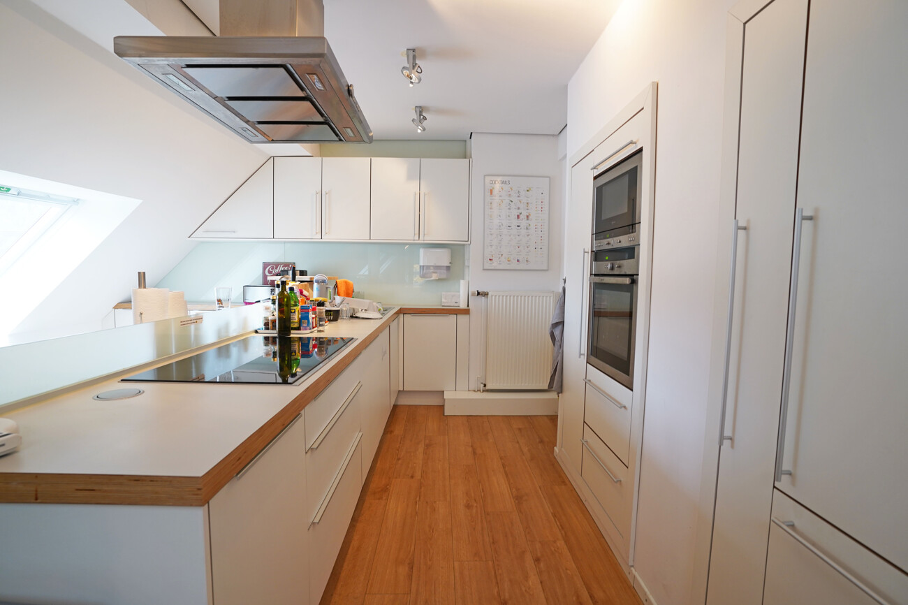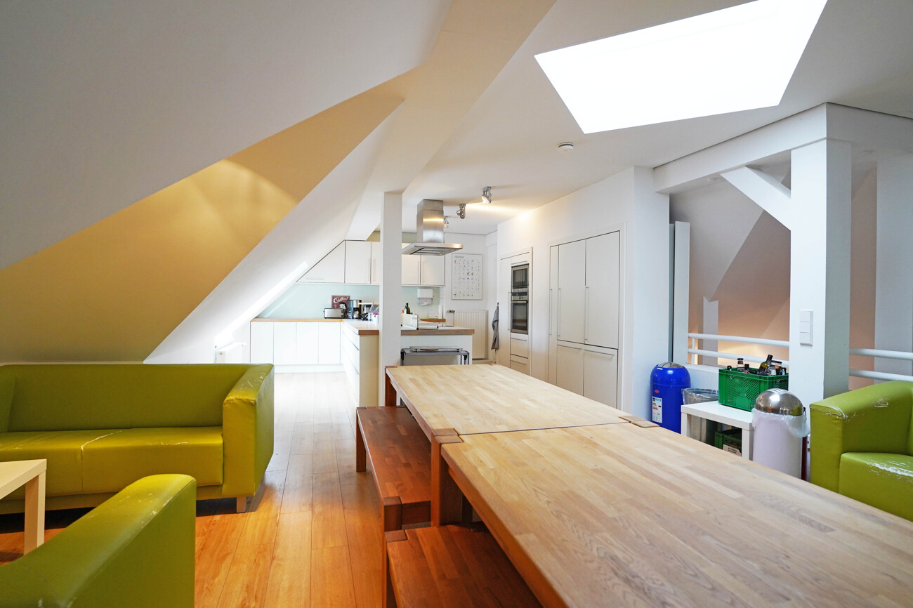 • Dachgeschoss (ca. 69 m²): als Pausenbereich ausgebaut, ausgestattet mit einer hochwertigen Einbauküche, ein Ort zum Durchatmen und für entspannte Pausen.