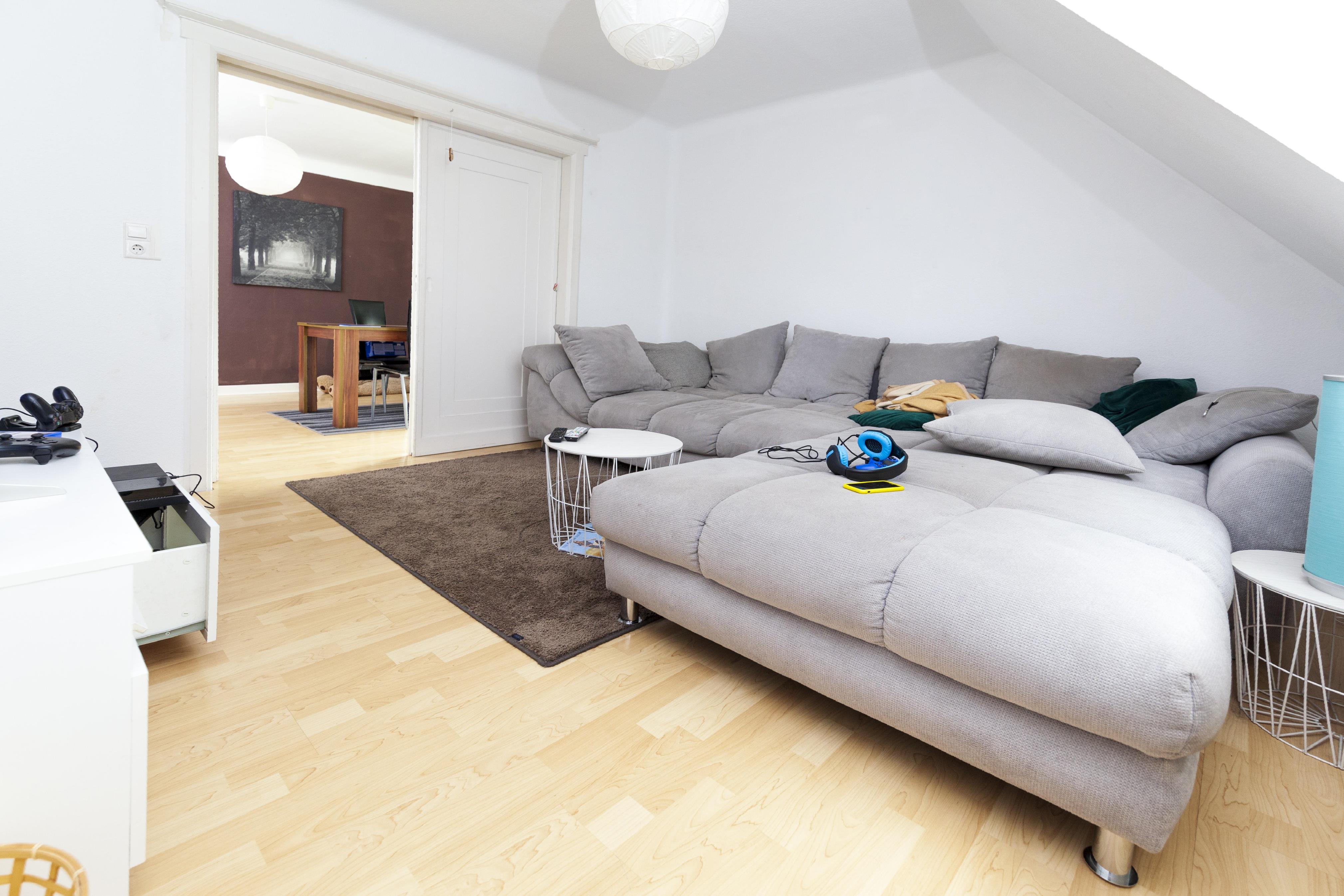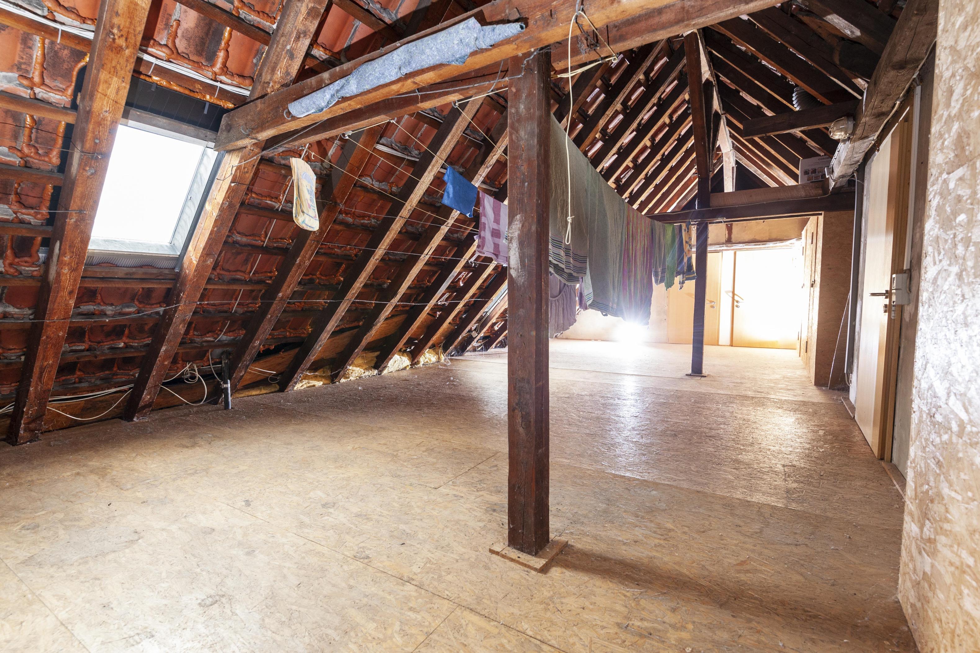 Der Dachboden beherbergt Abstellräume für die Mieter und kann zum Wäschetrocknen genutzt werden.
