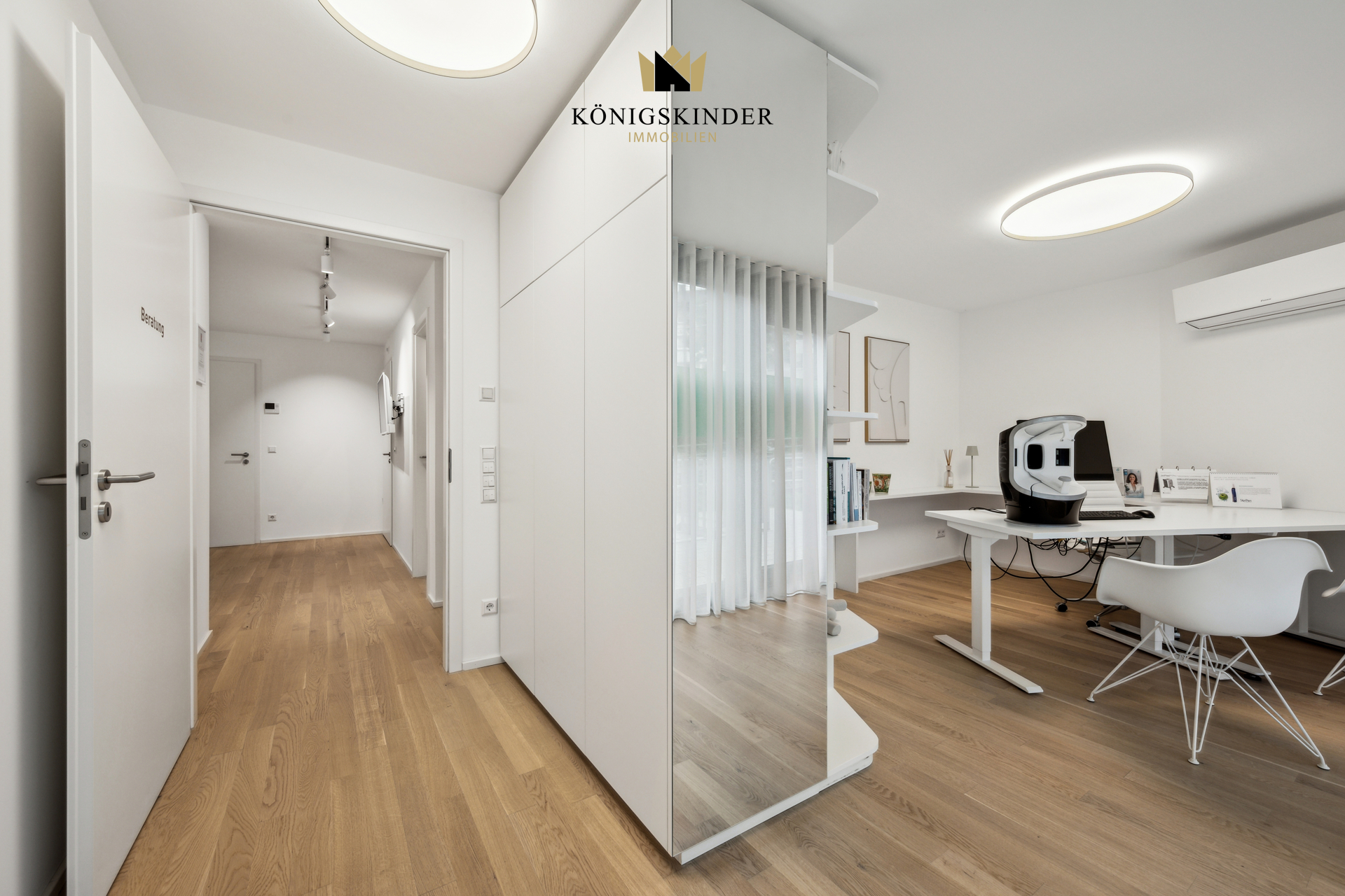 In einem modernen, 2023 errichteten Gebäude wird eine exklusive Gewerbeeinheit im Erdgeschoss zur Untermiete angeboten. Die Einheit ist derzeit als Kosmetikstudio eingerichtet. Im Rahmen der Untervermietung steht der helle Behandlungsraum zur eigenständigen Nutzung für kosmetische Behandlungen zur Verfügung.