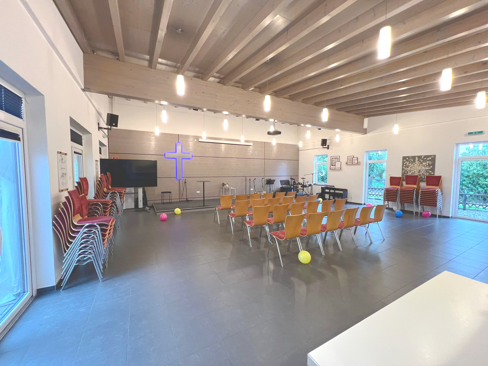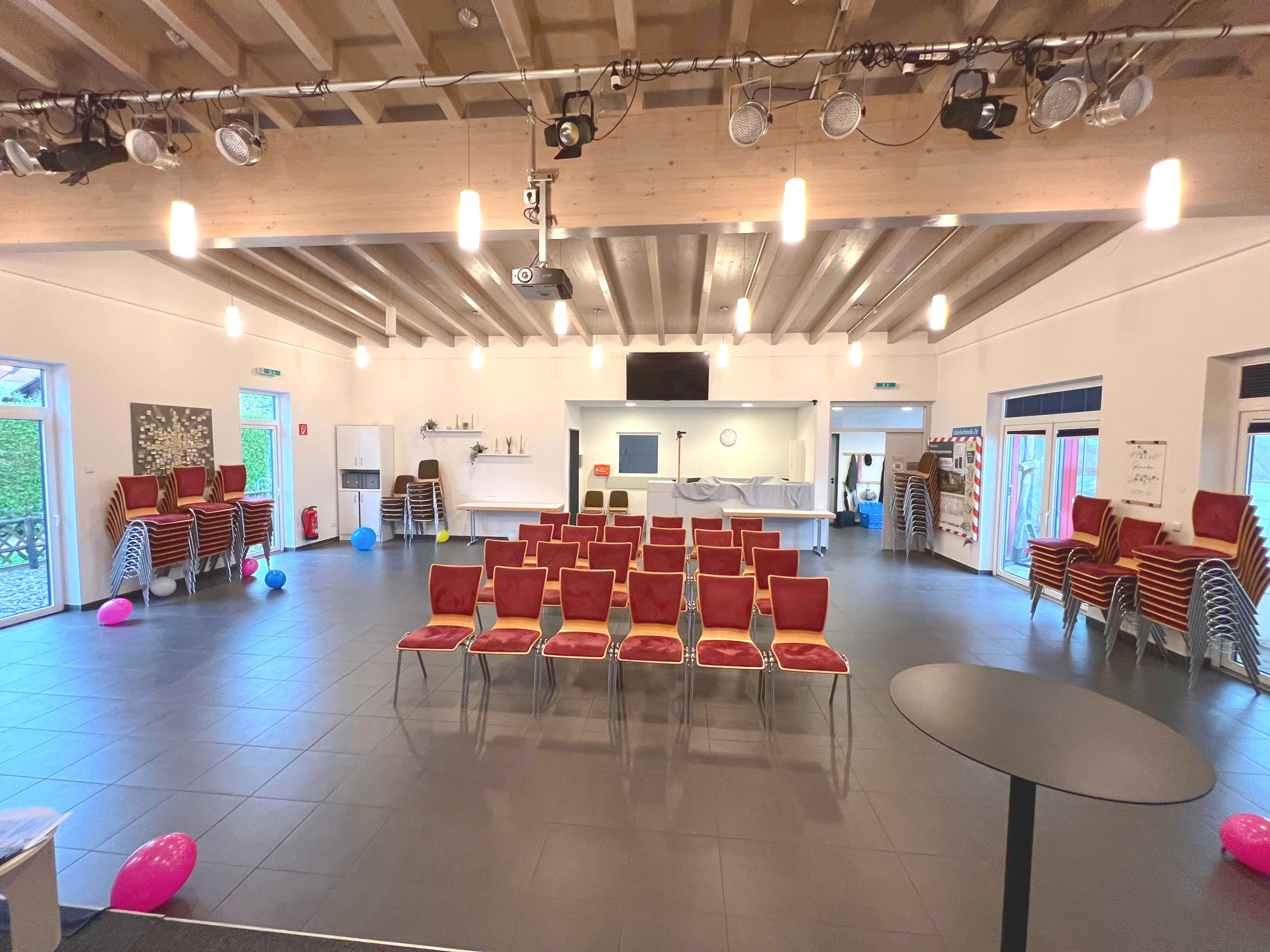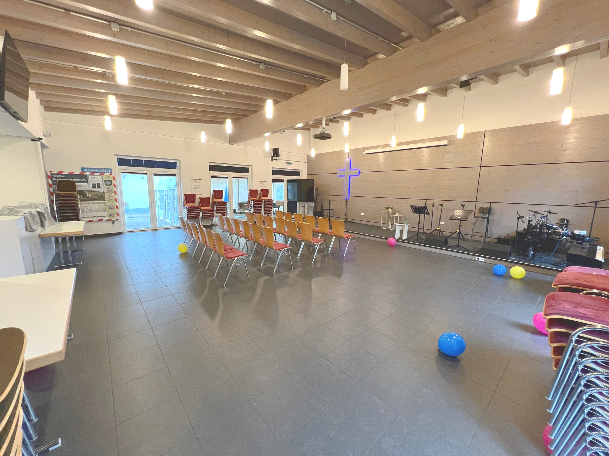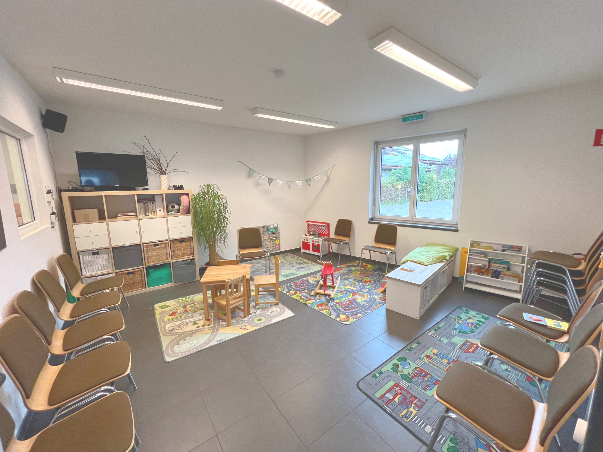 Raumaufteilung: Die Gewerbefläche verfügt über einen großen Hauptraum, der sich ideal für offene Bürostrukturen, Seminarräume oder auch flexible Praxisräume eignet. Durch die Möglichkeit, den Raum mit bewegbare Trennwänden nach Bedarf abzugrenzen, lässt sich der Raum individuell an Ihre Anforderungen anpassen.