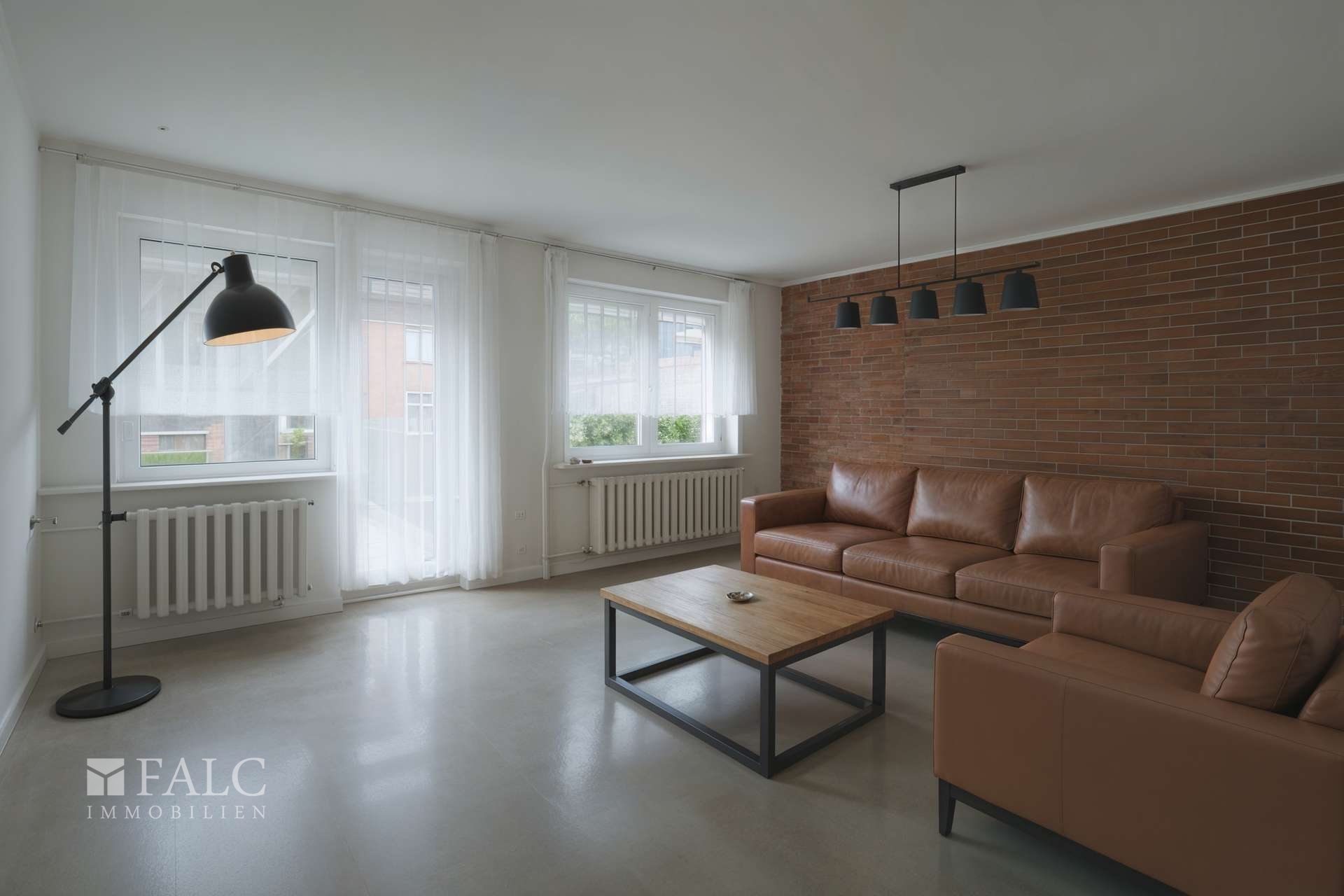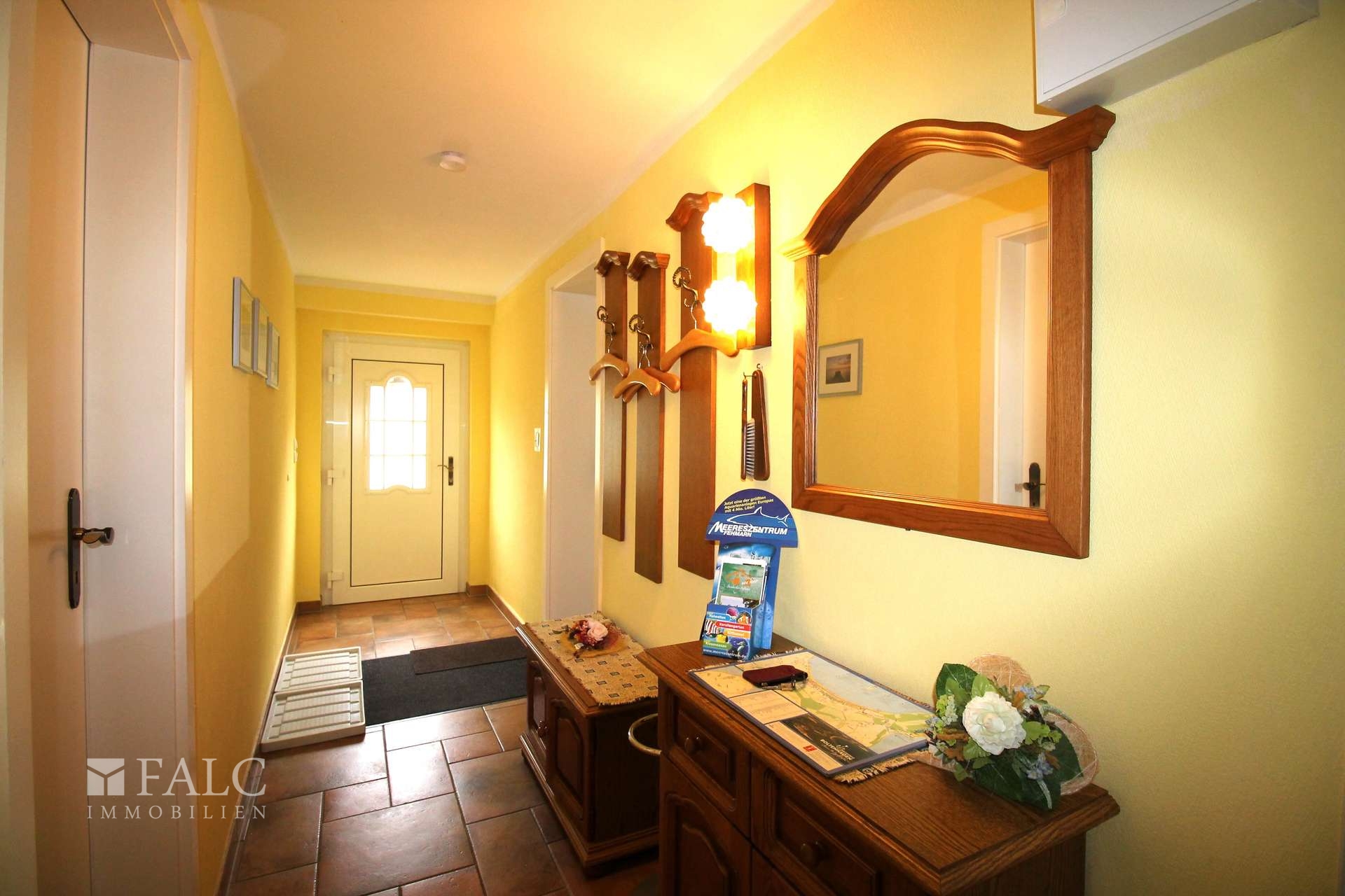 Vom Eingangsbereich aus gelangen Sie in die großzügigen Räume, welche durch große Fenster viel Tageslicht erhalten. Die Terrasse lädt dazu ein, die frische Luft zu genießen und bietet einen schönen Blick auf den gepflegten Garten, der ideal für Kinder zum Spielen oder für entspannte Stunden im Freien ist.