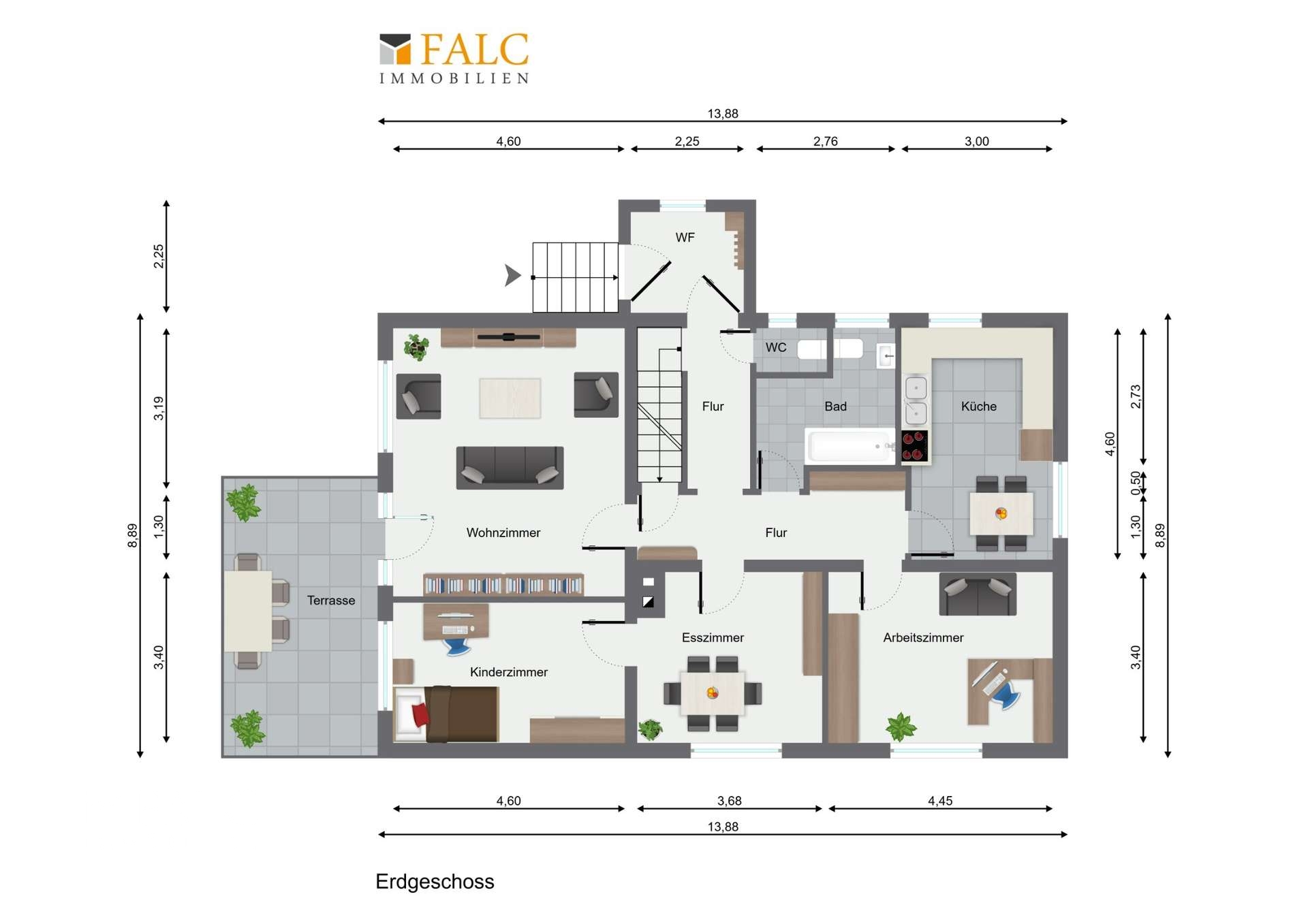 Eine Besichtigung sagt mehr als jede Beschreibung, bei Interesse zögern Sie nicht und vereinbaren Sie einen unverbindlichen Termin. Wir bieten nicht nur eine kostenlose Hotline, sondern auch einen Service am Wochenende an. Bei Interesse geben Sie bitte immer Ihre vollständigen Kontaktdaten an. Die Objektbeschreibung beruht ganz oder zum Teil auf Angaben des Eigentümers. Für die Richtigkeit oder Vollständigkeit übernehmen wir keine Gewähr. Sie haben auf Anhieb nichts gefunden oder suchen Sie etwas ganz bestimmtes? Teilen Sie uns einfach mit was Sie suchen und wonach wir für Sie die Augen offenhalten dürfen. Profitieren Sie von den Vorteilen einer professionellen Maklersuche. Der Suchauftrag ist unverbindlich. Auf unserer Homepage www.falcimmo.de unter der Rubrik Immobiliensuche halten wir für Sie zum einen den Onlinesuchauftrag bereit, haben aber auch viele andere nützliche Informationen für Kaufinteressenten und Eigentümer.