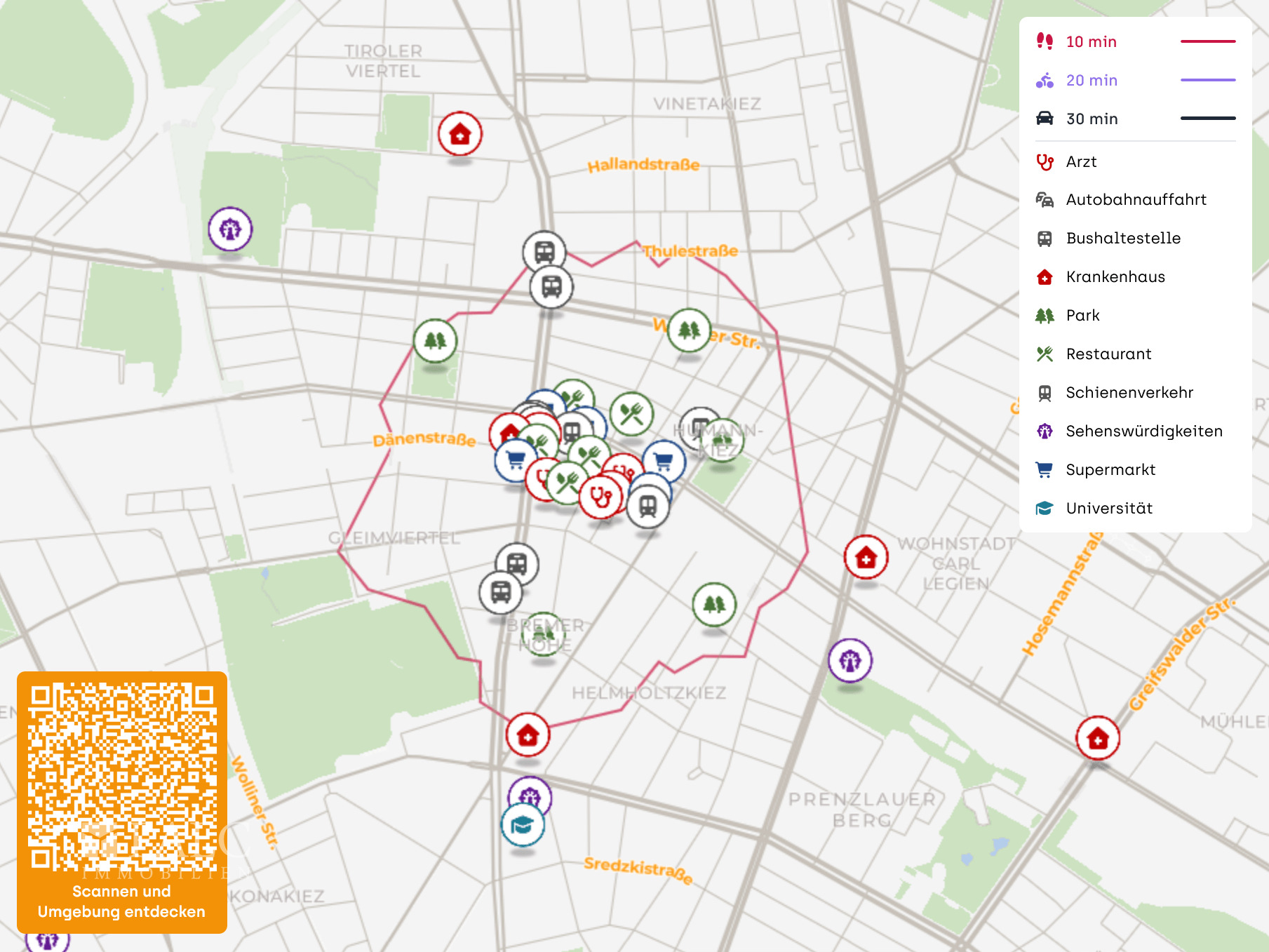 Die Immobilie befindet sich in der Greifenhagener Straße im beliebten Berliner Stadtteil Prenzlauer Berg – einer der gefragtesten Wohnlagen der Hauptstadt. Die Straße selbst ist als ruhige Anliegerstraße mit Tempo-30-Zone geprägt und bietet ein angenehmes, überwiegend wohnliches Umfeld mit gewachsener Kiezstruktur.