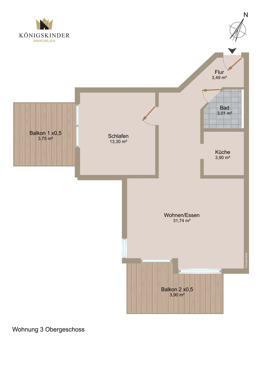 Nr. 3 2 Zimmer - 61,98 m² - 880,- € Kaltmiete