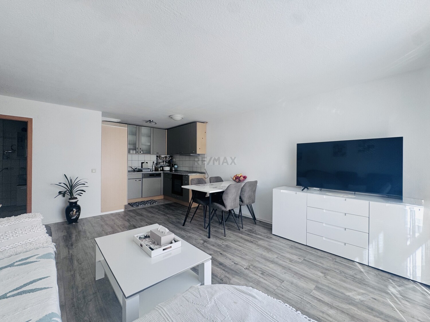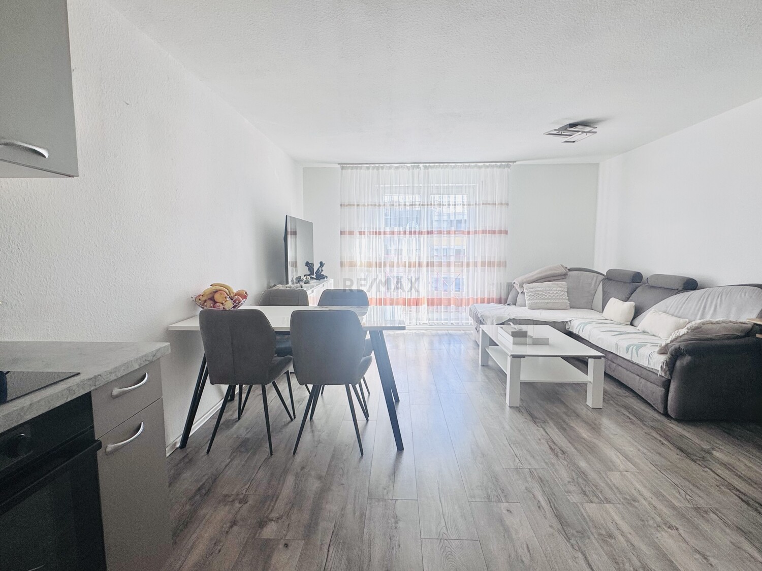 Das Herzstück der Wohnung bildet der offen gestaltete Wohn- und Essbereich mit integrierter Küche. Die vorhandene Einbauküche fügt sich harmonisch in den Raum ein und ermöglicht ein modernes, kommunikatives Wohnen. Durch die offene Gestaltung besteht zudem die Möglichkeit, mit geschickter Möblierung etwa durch Schränke oder Raumteiler, zusätzlichen Stauraum zu schaffen.