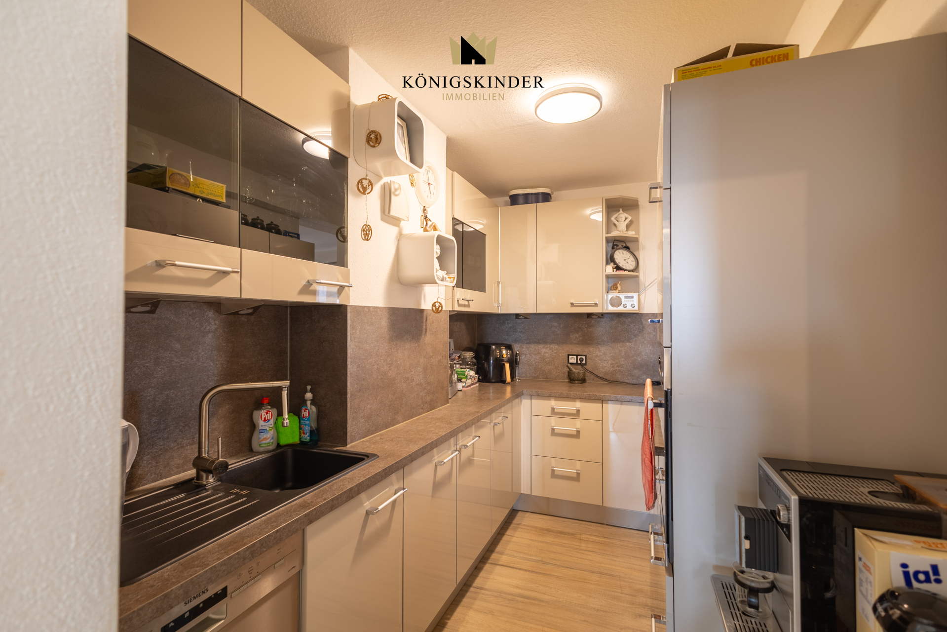 Das große Wohnzimmer bietet direkten Zugang zu einem von zwei Balkonen. Die Küche besitzt eine gepflegte Einbauküche die 2019 eingebaut wurde. Neben dem Wohnzimmer stehen Ihnen drei weitere Zimmer zur Verfügung, die sich flexibel als Schlafzimmer, Arbeitszimmer oder Gästezimmer nutzen lassen.