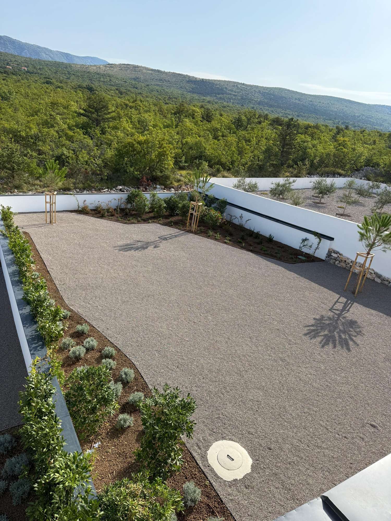 Die Villen befinden sich am Rand einer Grünzone, wodurch in der unmittelbaren Umgebung keine dichte Bebauung vorgesehen ist. Dies gewährleistet dauerhafte Privatsphäre, Offenheit des Umfelds und einen langfristig geschützten Ausblick.