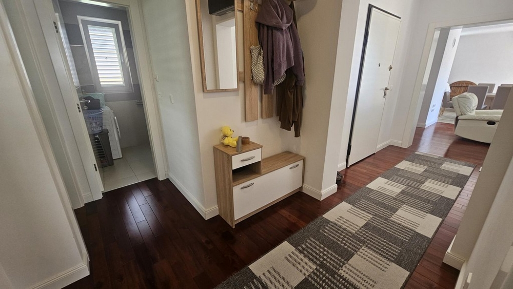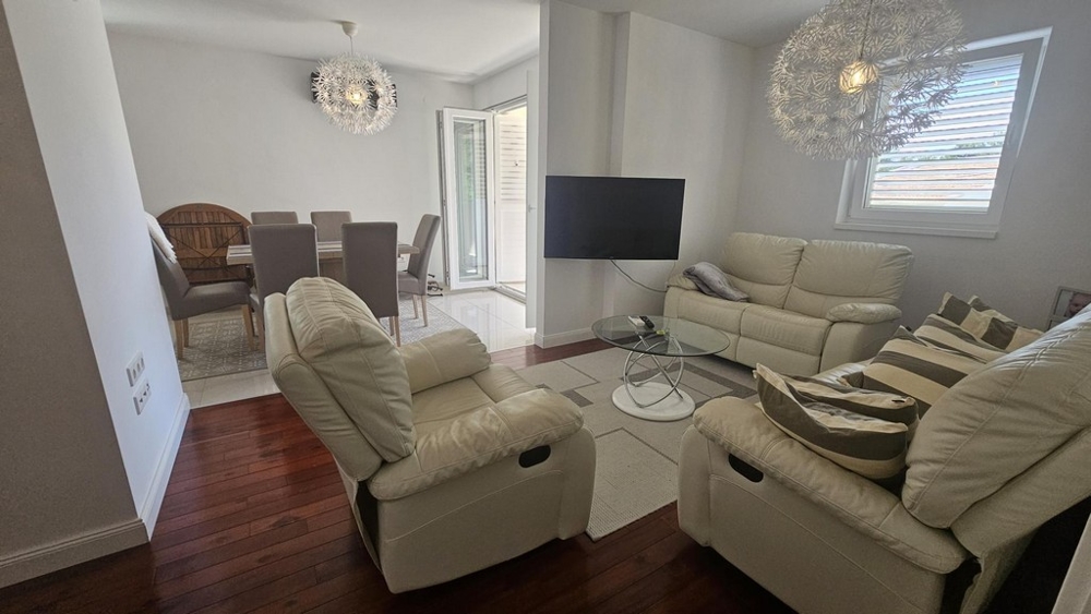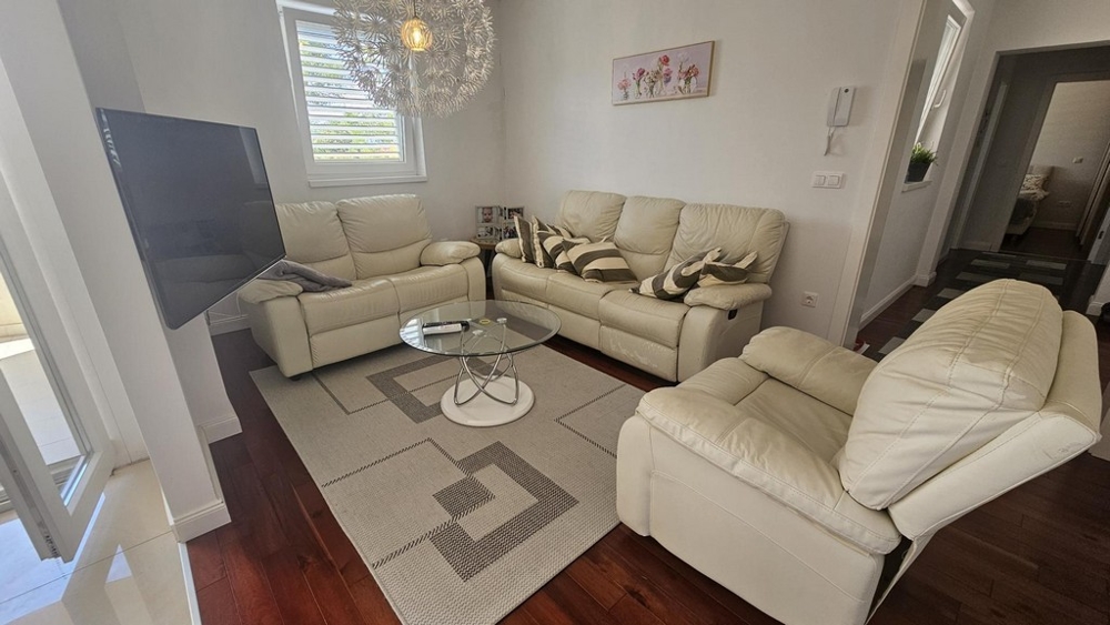 In Malinska auf der beliebten Insel Krk steht eine voll möblierte und sofort bezugsfertige Ferienwohnung mit einer Wohnfläche von 91 m² zum Verkauf. Die Wohnung befindet sich im ersten Stock eines gepflegten Mehrfamilienhauses in ruhiger Lage – nur ca. 200 m vom Meer und fußläufig zum Ortszentrum (ca. 700 Meter).