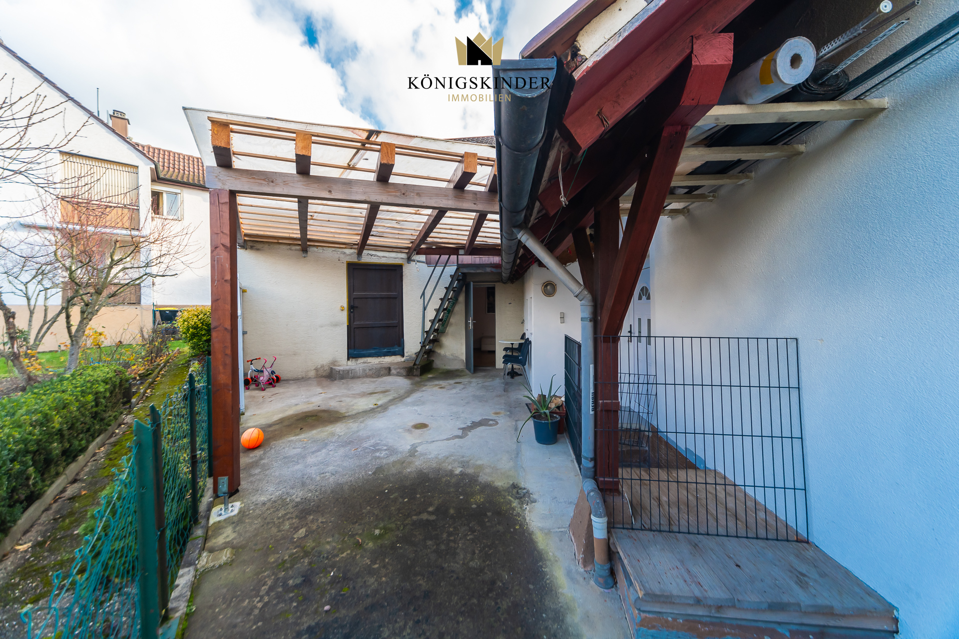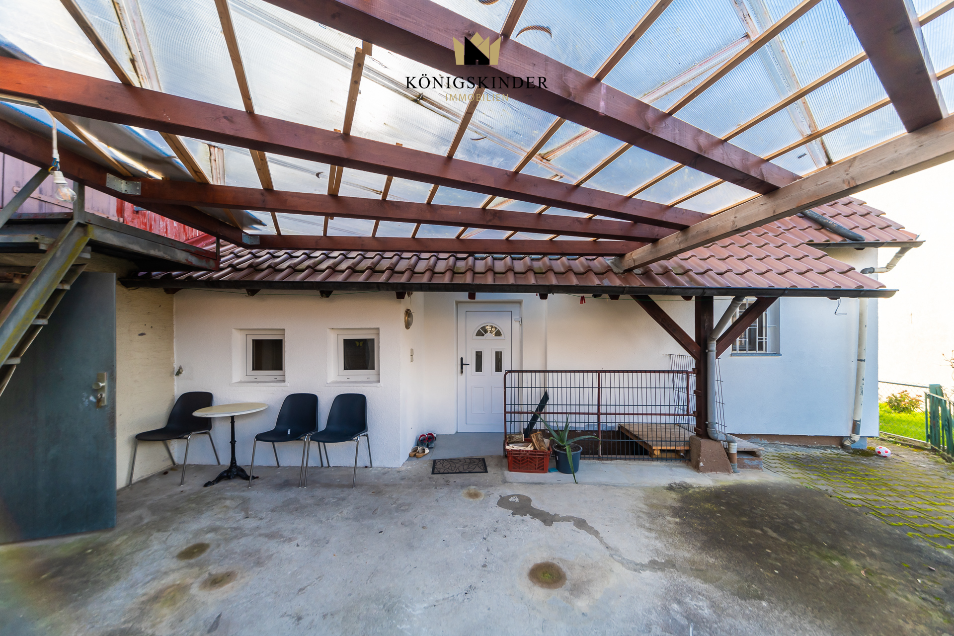 Der Hofbereich schafft Platz für entspannte Momente im Freien und rundet das Gesamtbild harmonisch ab. Für Fahrzeuge stehen eine Garage sowie ein Stellplatz direkt vor der Tür bereit – ideal für Familien oder Pendler.