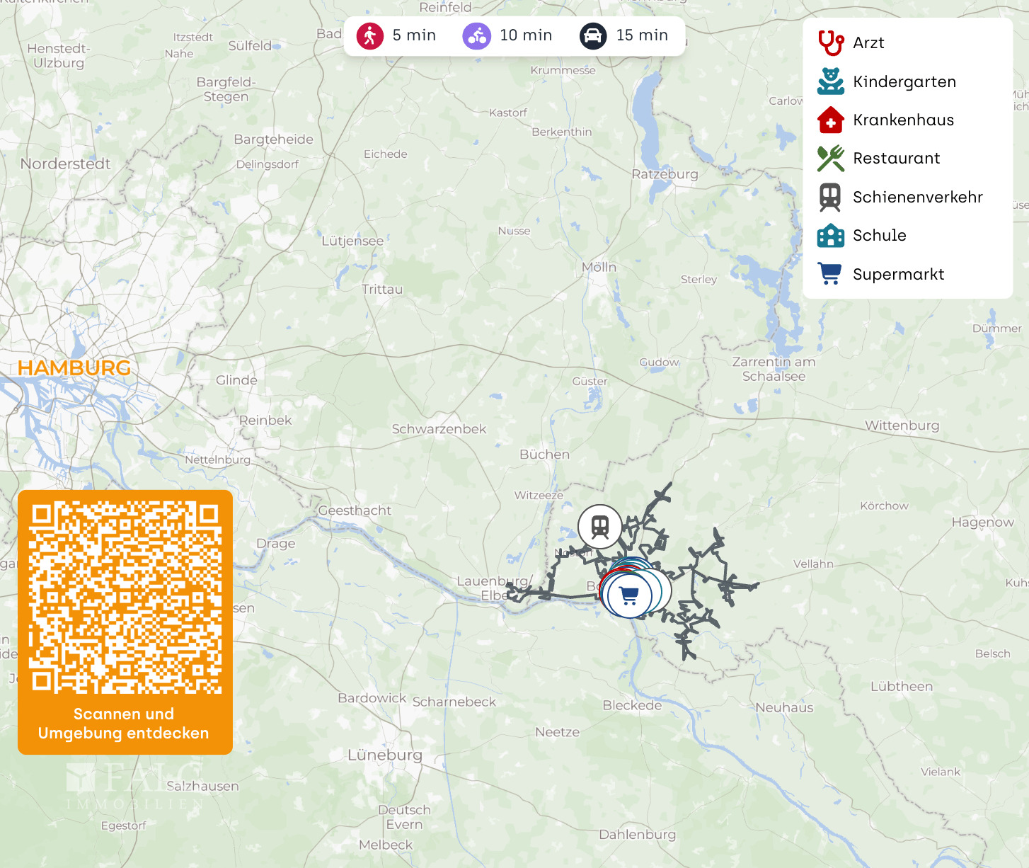 Pendler profitieren von der guten Anbindung: Der Boizenburger Bahnhof ist in nur 15-20 Minuten mit dem Bus erreichbar, und die Autobahn A24 sorgt für eine schnelle Verbindung in benachbarte Städte. Der nächstgelegene internationale Flughafen in Hamburg ist ebenfalls gut erreichbar und bietet zahlreiche nationale und internationale Flugverbindungen.