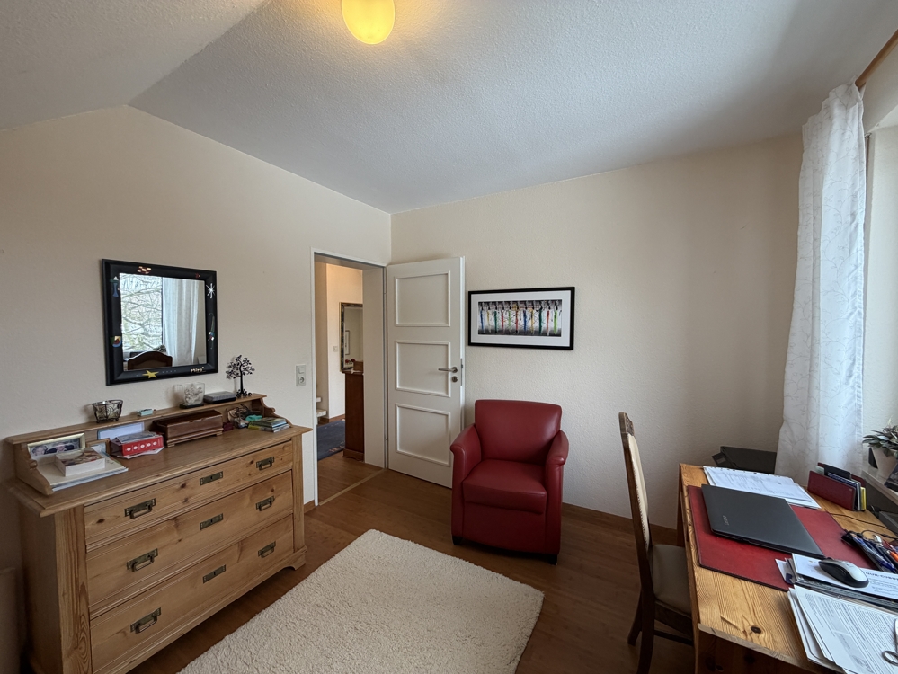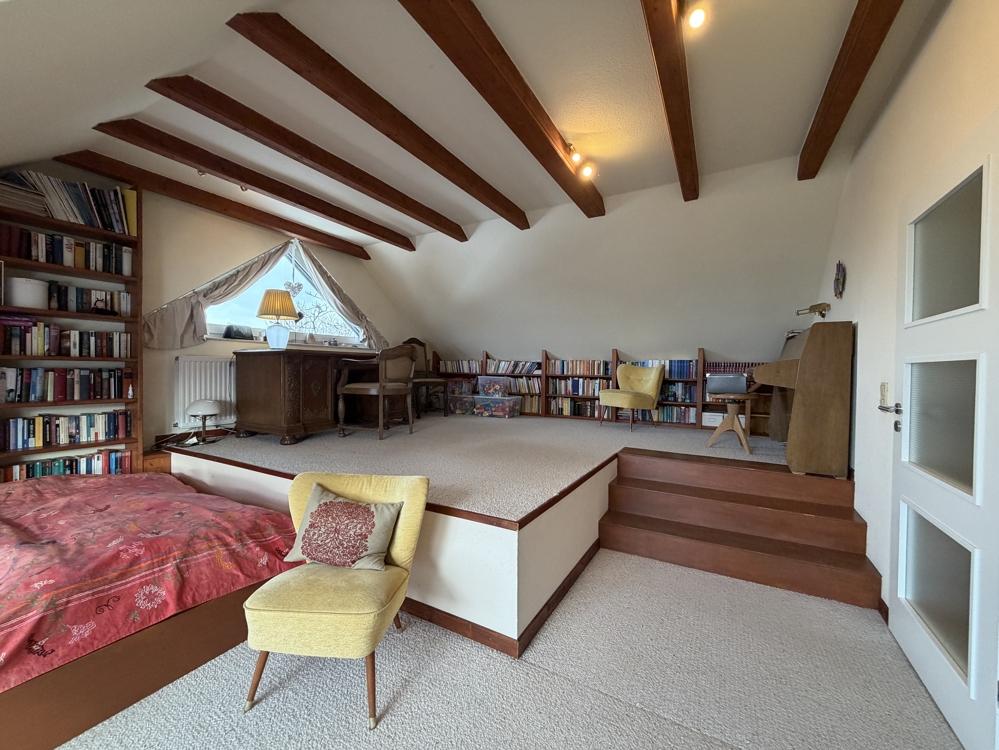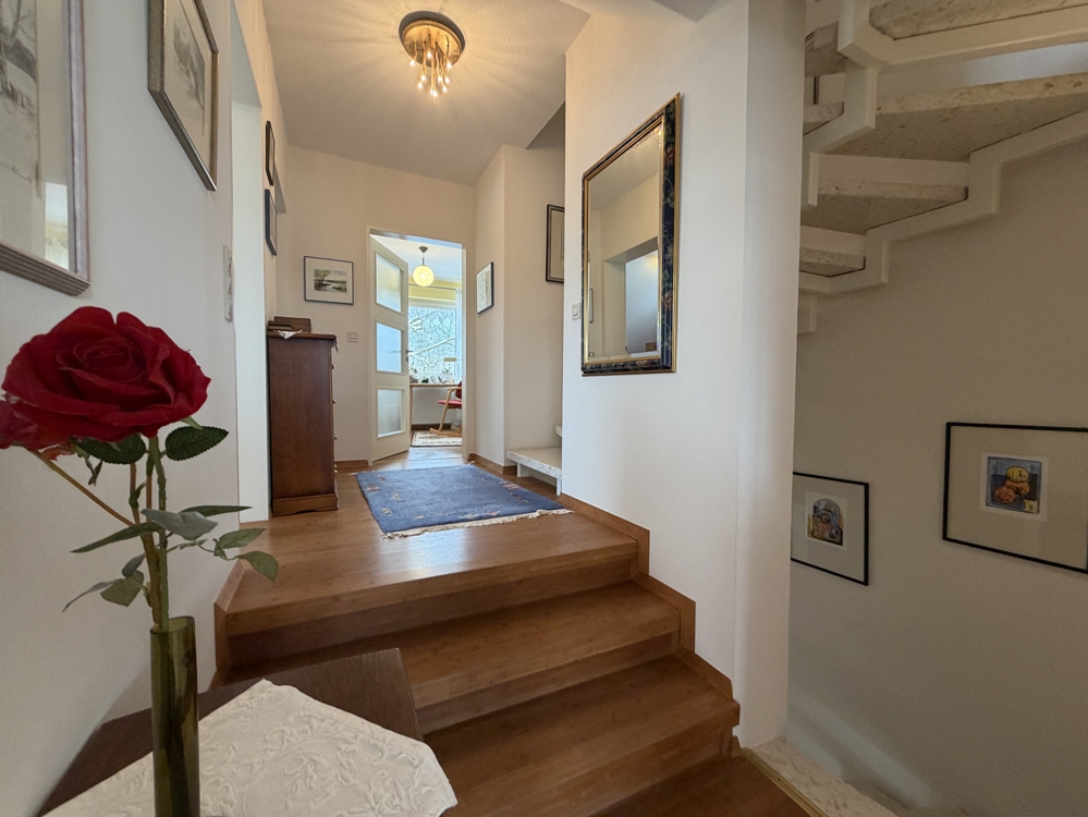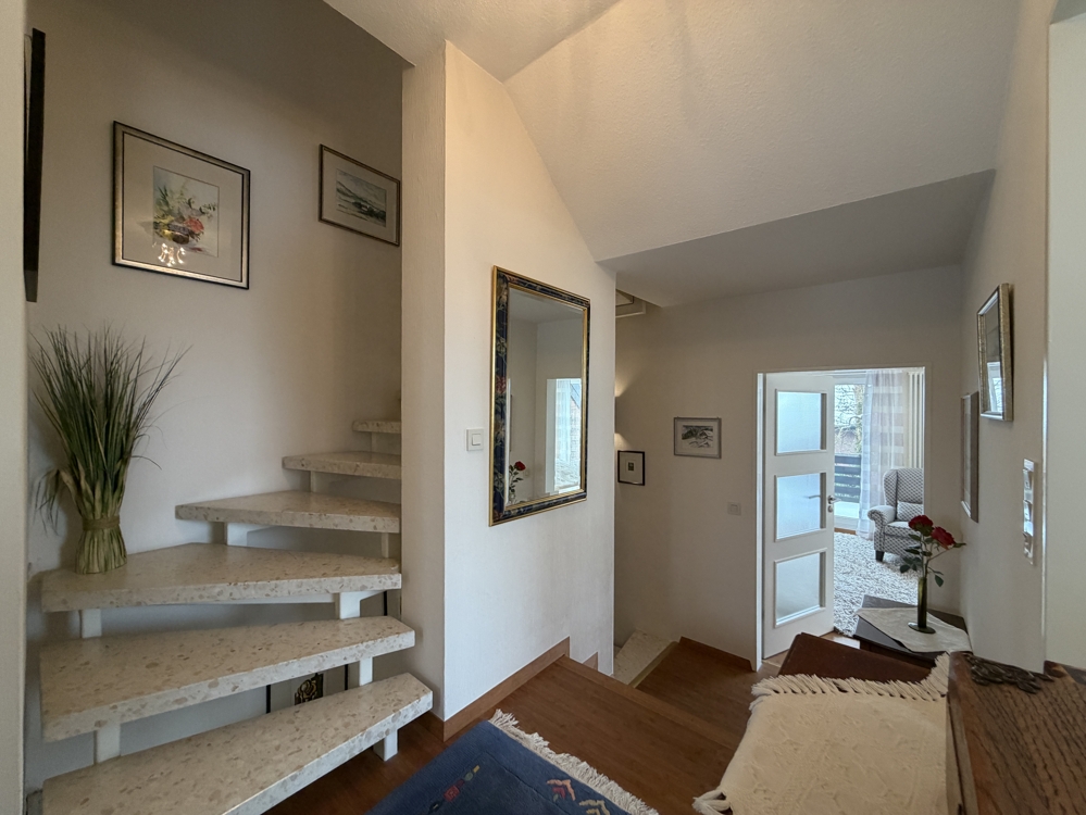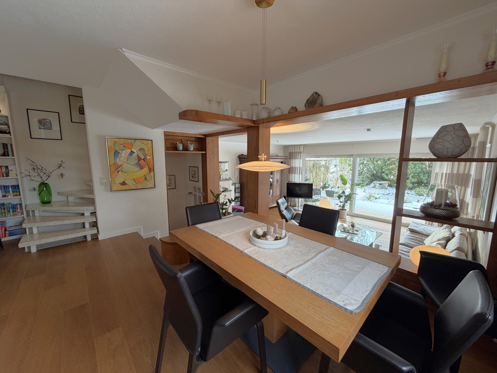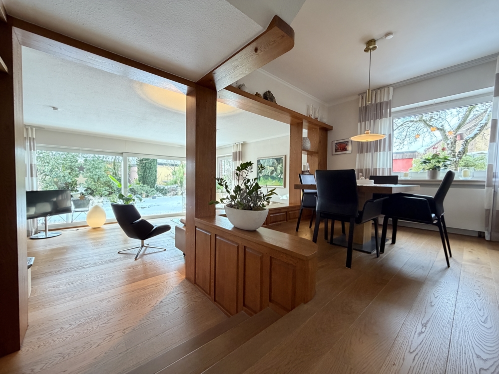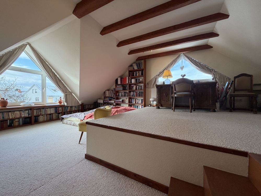 Eingangsbereich mit Carport & GarageGartenansichtToll angelegter Garten mit kleinem TeichEinladendes EntreeFlurbereichOffenes WohnkonzeptBlick Richtung EsszimmerOffener Wohn-/EssbereichOffener Wohn/EssbereichHeller Wohnbereich mit TerrassenzugangKücheModernes Gäste-WCFlurbereich im ObergeschossBlick Richtung Schlafzimmer & TageslichtbadGroßes Schlafzimmer mit SonnenbalkonModernisiertes Tageslichtbad mit ebenerdiger DuscheKinderzimmer/BüroWeiteres ZimmerTreppenaufgang zum DachgeschossToller Studioraum...... im DachgeschossGartenansicht
