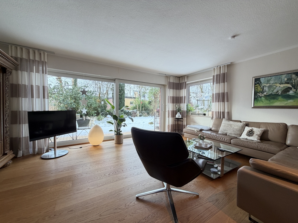 Wir freuen uns, Ihnen diese architektonisch gelungene Doppelhaushälfte am Ende einer ruhigen Sackgasse zum Kauf anbieten zu können. Das 1981 erbaute Wohnhaus besticht nicht nur durch seine gelungene Aufteilung mit versetzten Wohnebenen sondern ebenfalls durch seinen äußerts gepflegten Zustand und die bereits getätigten Modernisierungen (neuwertige Gasbrennwertheizung, neuwertige Fensterscheiben, etc.) der Eigentümer. Freuen Sie sich auf viele Highlights wie Fußbodenheizung im Wohnbereich, Parkett, modernes Badezimmer mit Tageslicht und ebenerdiger Dusche, modernes Gäste-WC, Studioraum, Teilkeller mit Außentreppe, Sonnenbalkon sowie Sonnenterrasse und vieles mehr. Die Eigentümer haben großen Wert auf eine gehobene Ausstattung und Qualität gelegt. Überzeugen Sie sich gern bei einer Innenbesichtigung! Das liebevoll angelegte Gartengrundstück (günstiges Erbpachtgrundstück zu mtl. ca. € 100,--) wird Sie ebenso begeistern wie die dazugehörige Garage und der Carport direkt am Haus. Ihr neues Zuhause kann nach Absprache frei werden.
