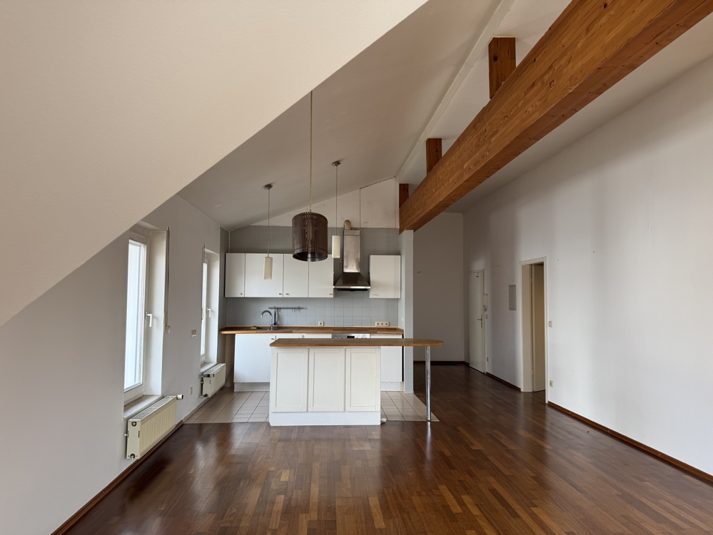 Die Wohnung liegt im zweiten Obergeschoss und verfügt über einen großzügigen, offenen Raum, der gut als Wohn-/Esszimmer zu nutzen ist und besitzt eine ansprechende Einbauküche. Vom Essbereich aus gelangen Sie auf den Balkon. Weiter bietet diese Wohneinheit ein Schlafzimmer sowie ein Tageslichtbad, das mit einer Badewanne mit Duschabtrennung, WC und einem Waschbecken ausgestattet ist. Wohn-/Esszimmer und Schlafzimmer sind mit einheitlichem Laminat ausgelegt. Zusätzlich gibt es noch eine Abstellbox neben dem Haus.