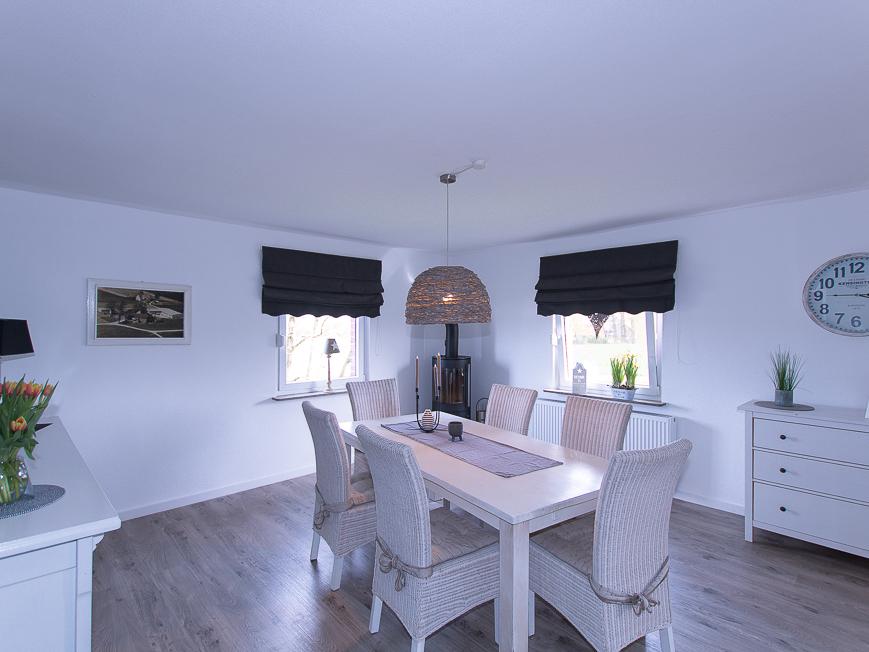 Betreten Sie das Wohngebäude durch die große und eindrucksvolle Deele, die mit ihrem wunderschönen Fachwerkstil sofort ins Auge fällt. Die Räumlichkeiten im Erdgeschoss – Küche, Wohn-/Esszimmer, Schlafzimmer und Badezimmer – sind erwartungsgemäß geräumig und durchflutet von natürlichem Licht. Die moderne Ausstattung harmoniert perfekt mit erhaltenen Original-Elementen, die ein gemütliches und charmantes Ambiente kreieren. Ein großzügiger Wirtschaftstrakt bietet alles Notwendige, um das Haus und das Grundstück effizient zu verwalten und den täglichen Anforderungen gerecht zu werden.