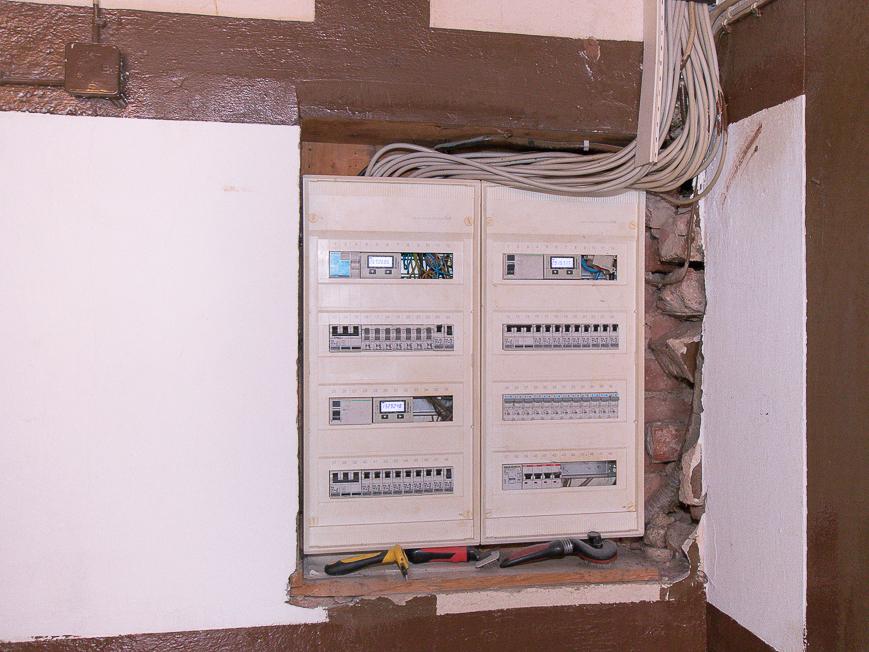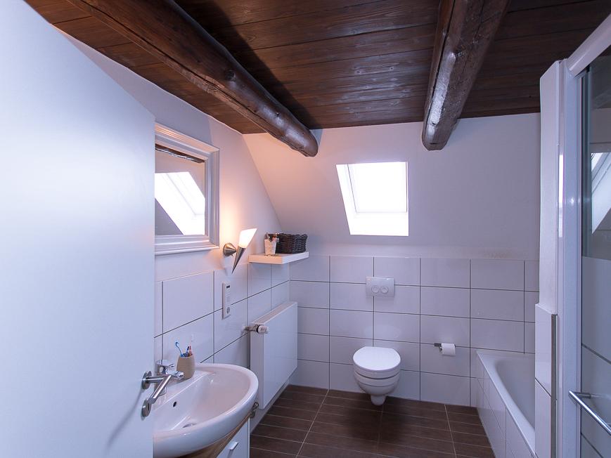 Das Obergeschoss bietet dank einer eigenen Küche und einem Badezimmer mit Dusche und Badewanne eine vollwertige Wohnmöglichkeit. Mehrere Schlafzimmer machen diesen Bereich ideal für eine weitere Familie oder für Gäste nutzbar.