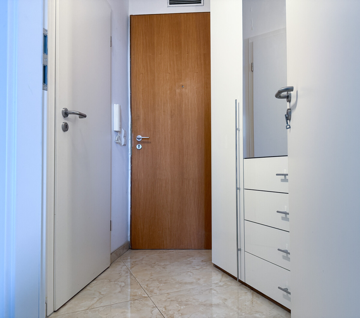 Sie betreten die Wohnung über einen gepflegten Flur mit Platz für Garderobe und Stauraum. Von hier aus gelangen Sie in den hellen Wohn und Schlafbereich, der sich flexibel möblieren lässt. Große Fensterflächen sorgen für angenehmes Tageslicht.